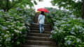すると歩き始めて暫くすると予想通り?にポツポツと降ってきました