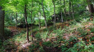 近くまで行こうと下ってみたけど落ち葉が滑るので