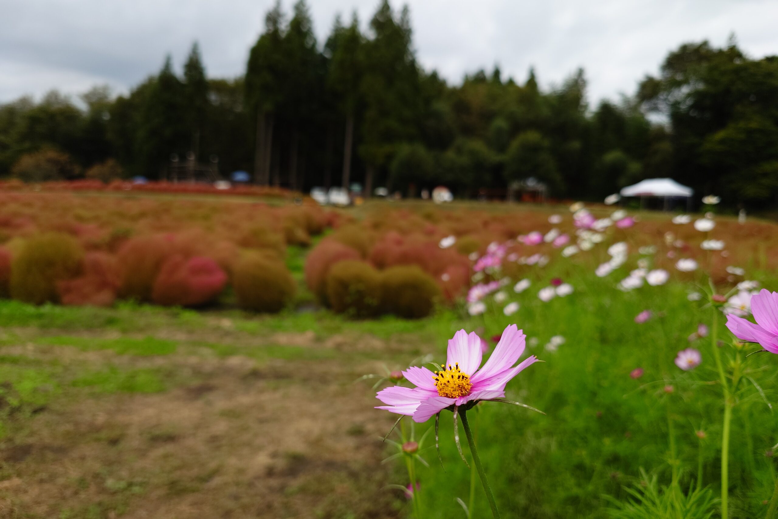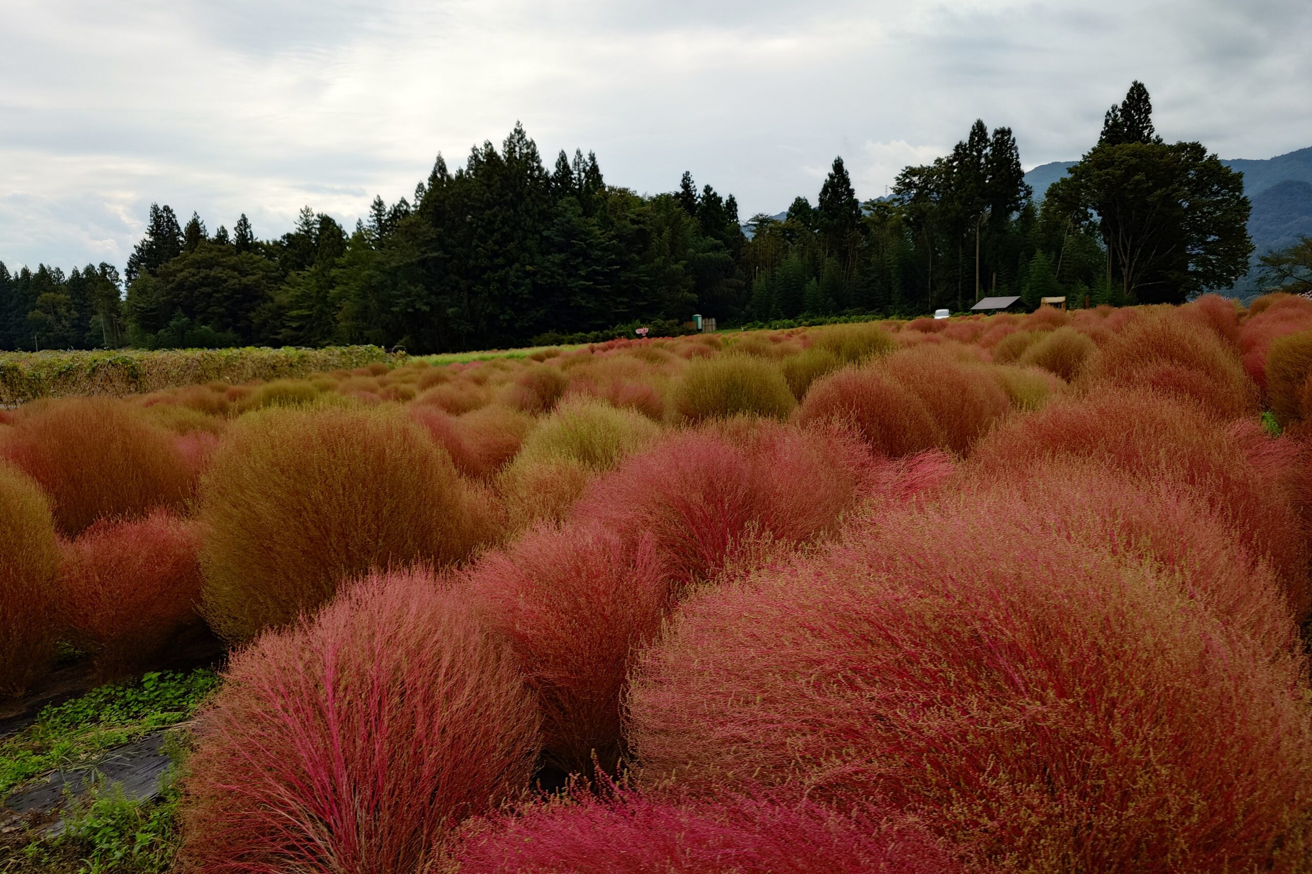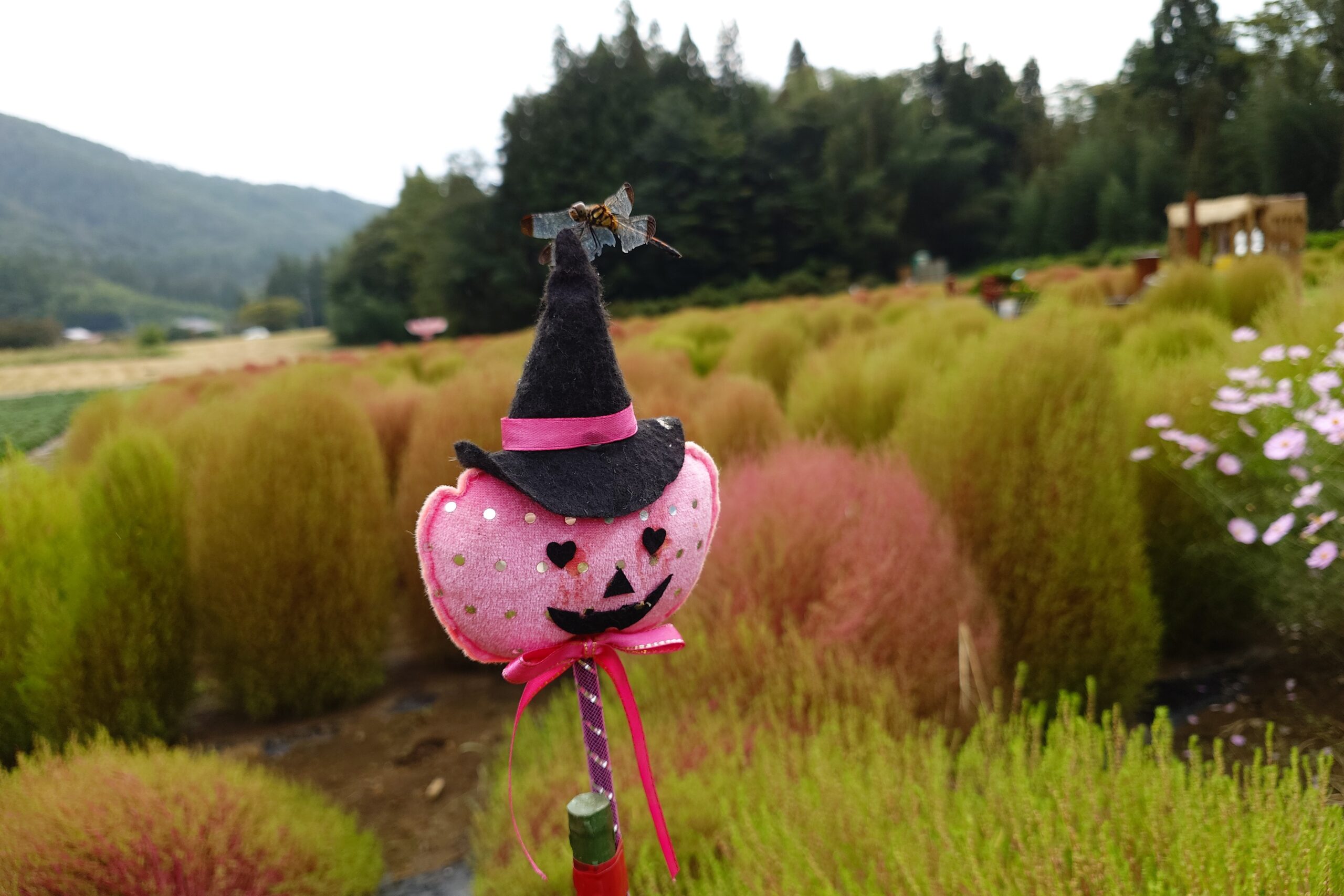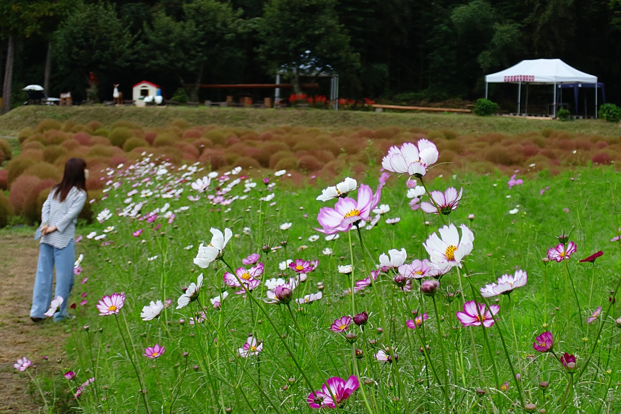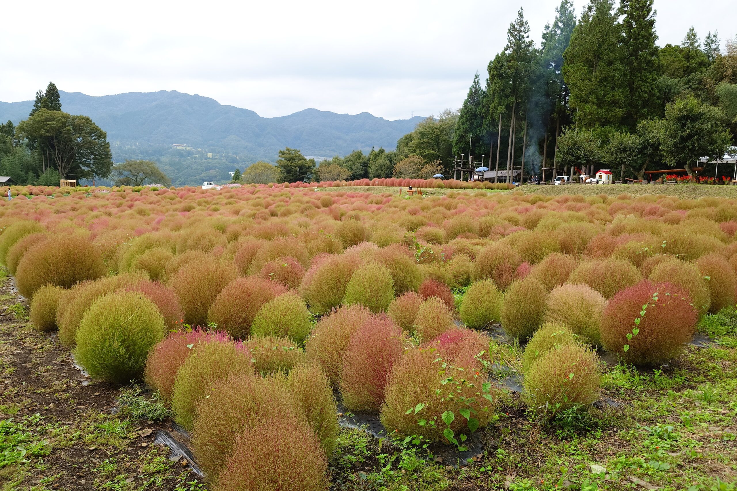 ほうき草(コキア)、コスモス、小菊、ヒマワリ、蕎麦などを