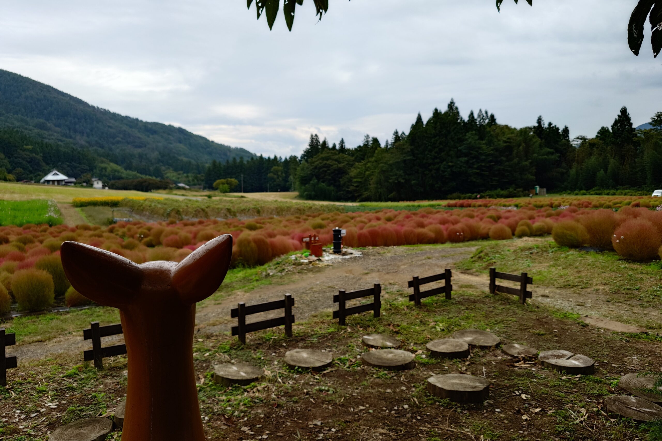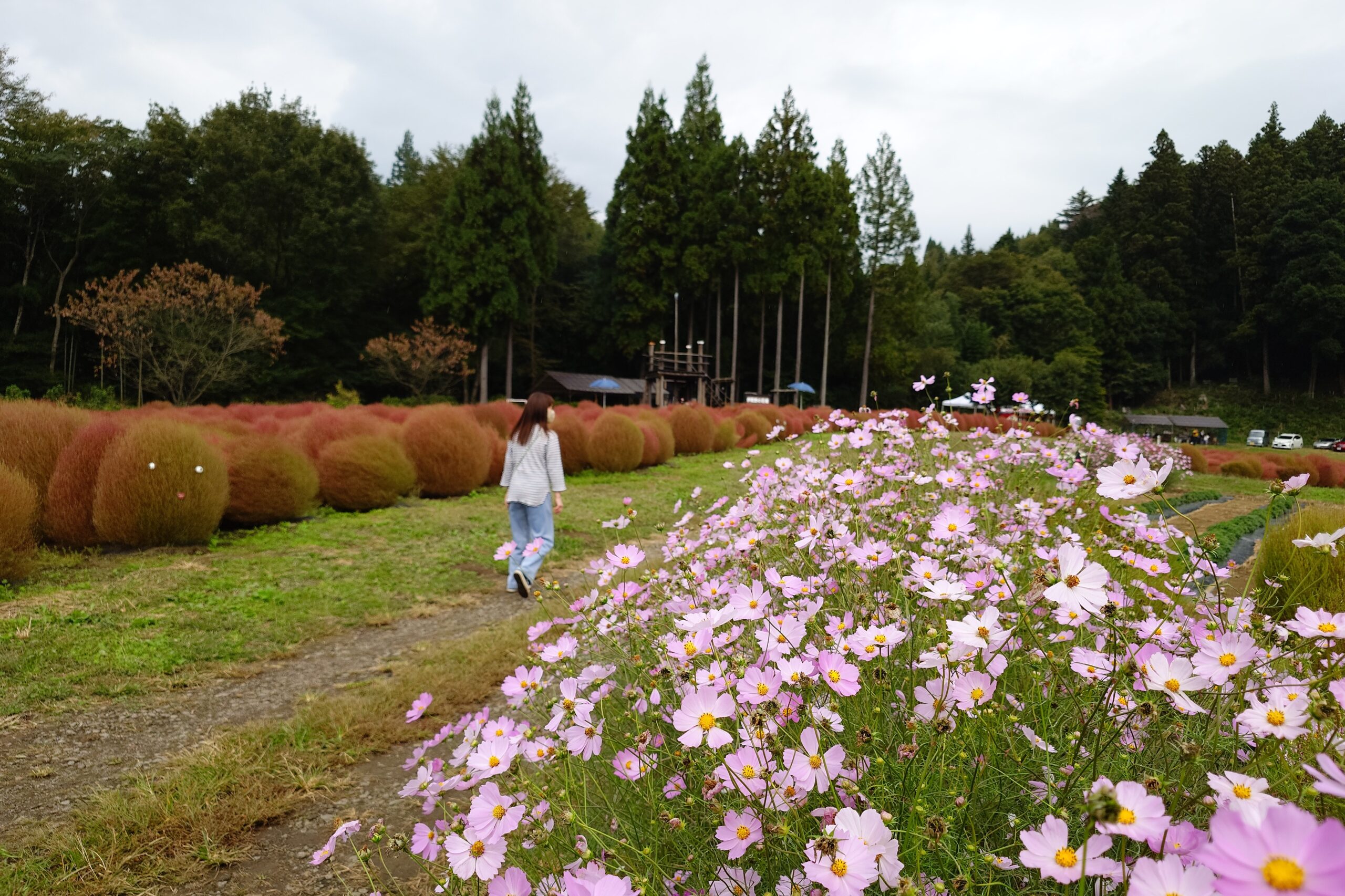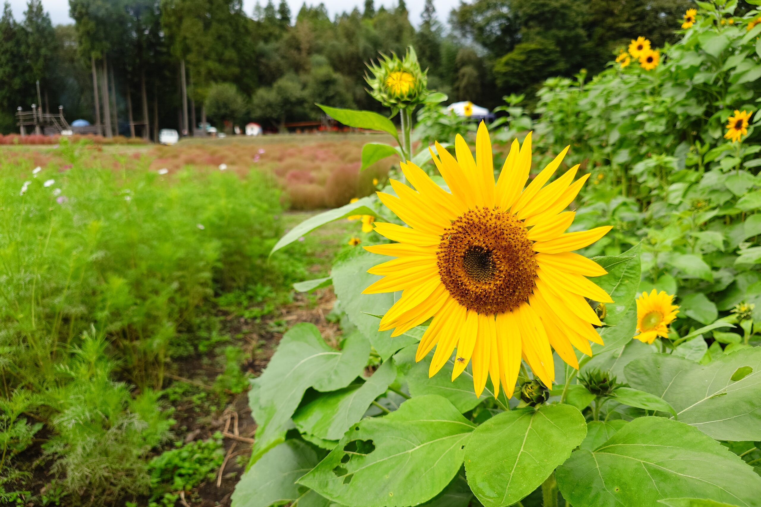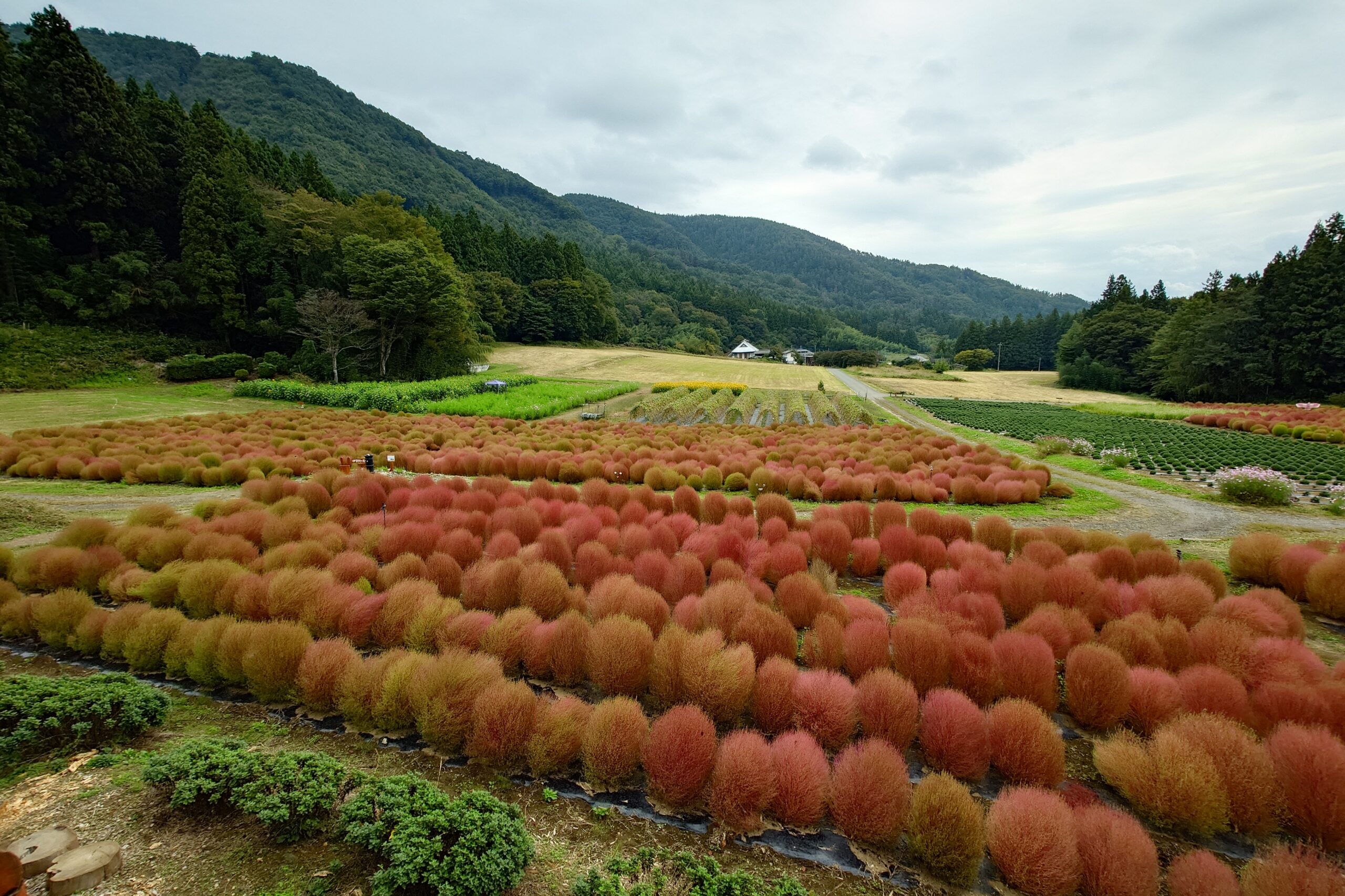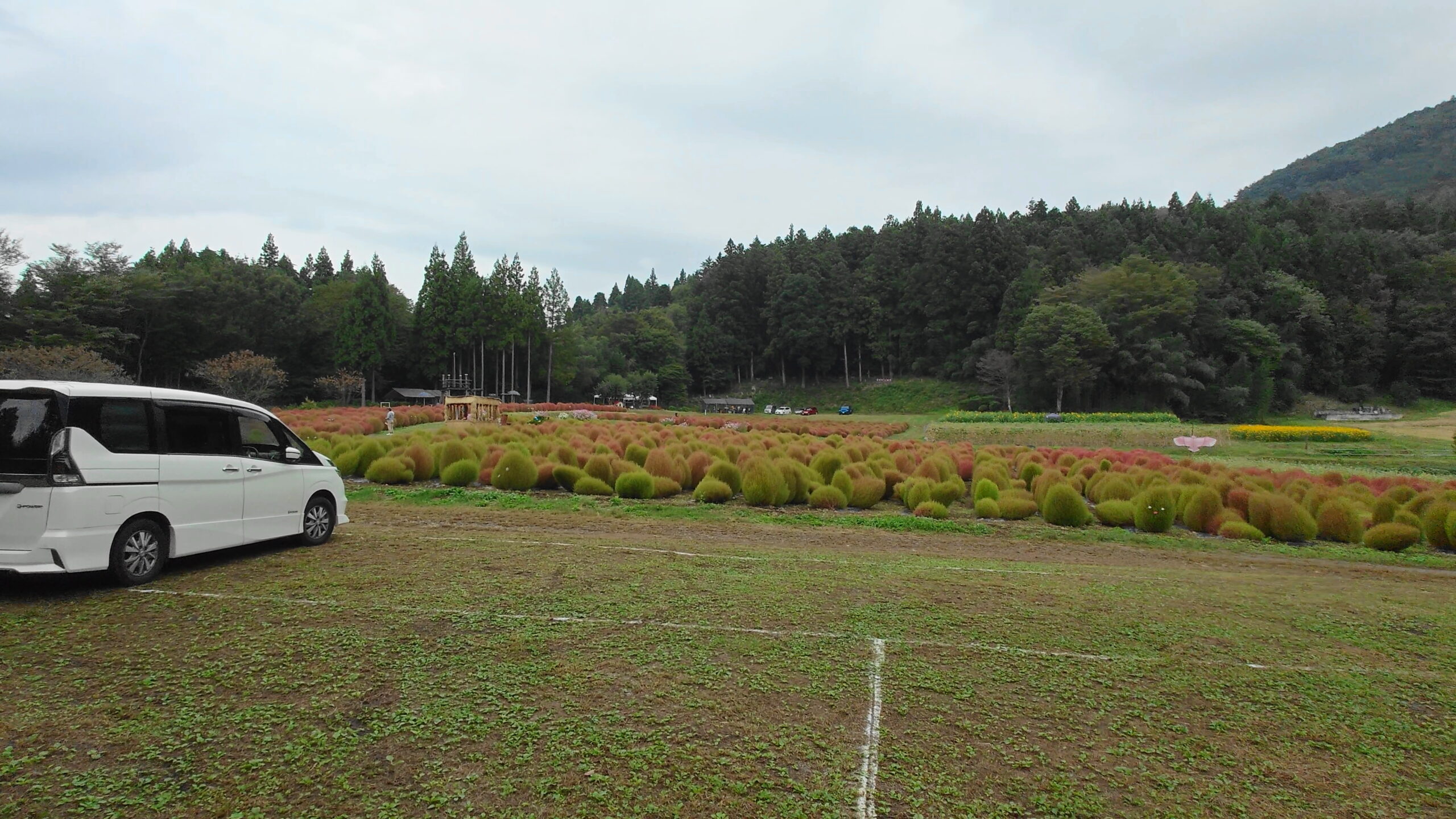 ほうき草(コキア)、コスモス、小菊、ヒマワリ、蕎麦などを