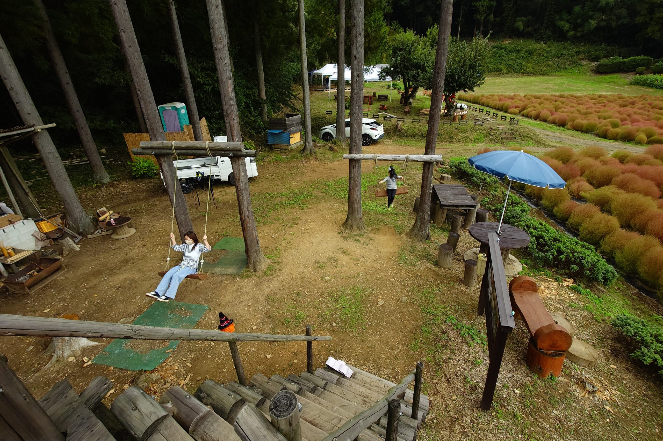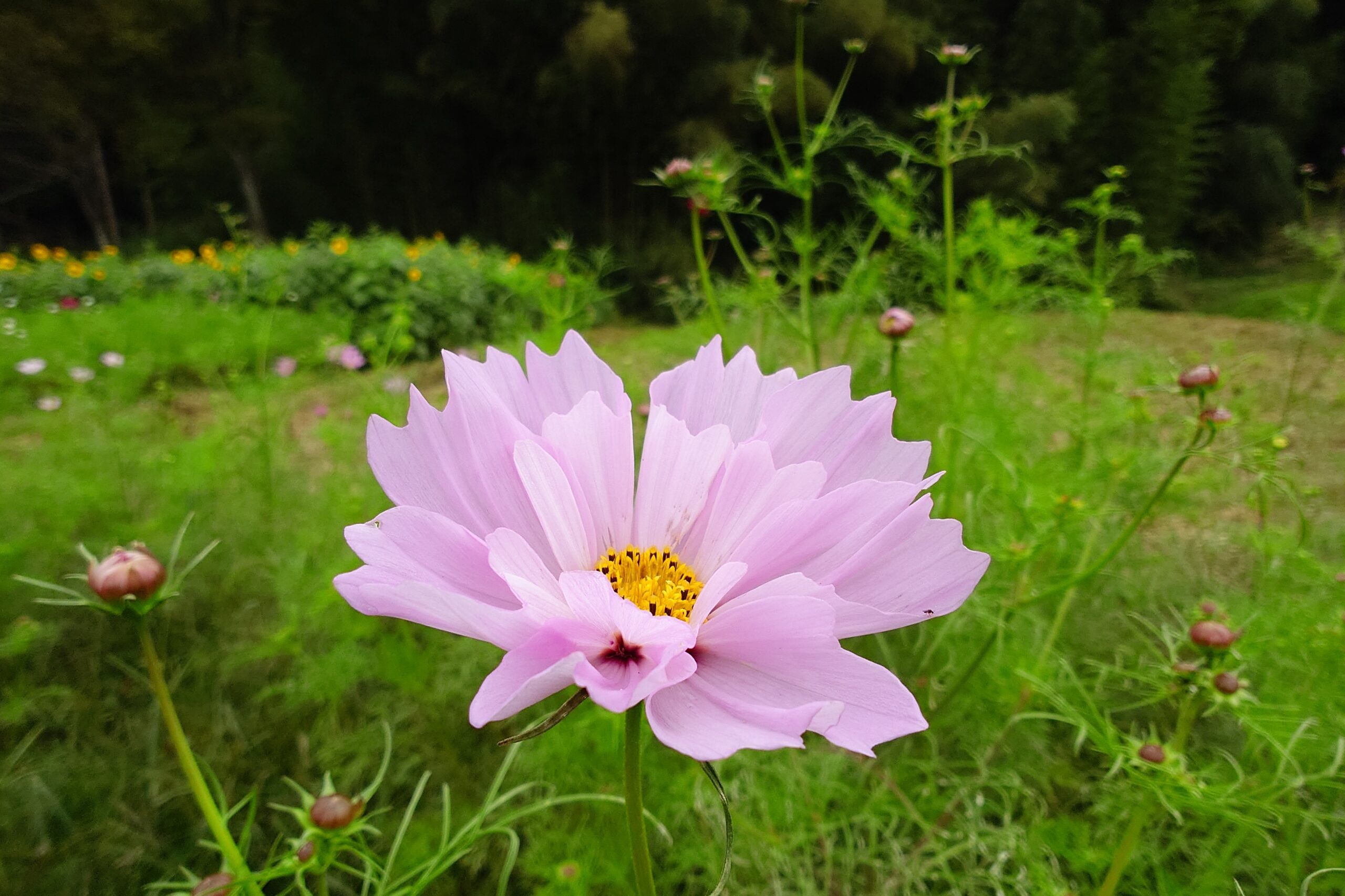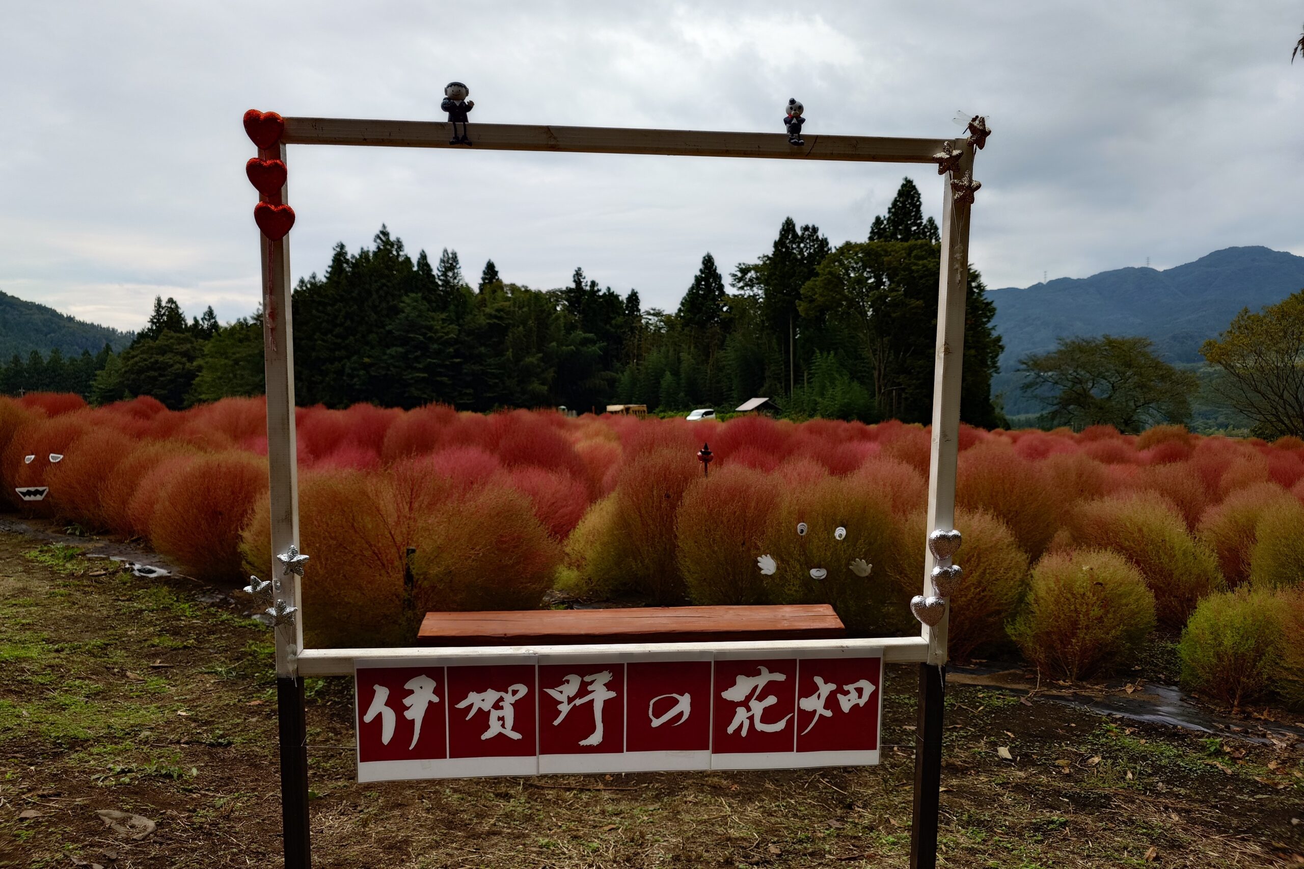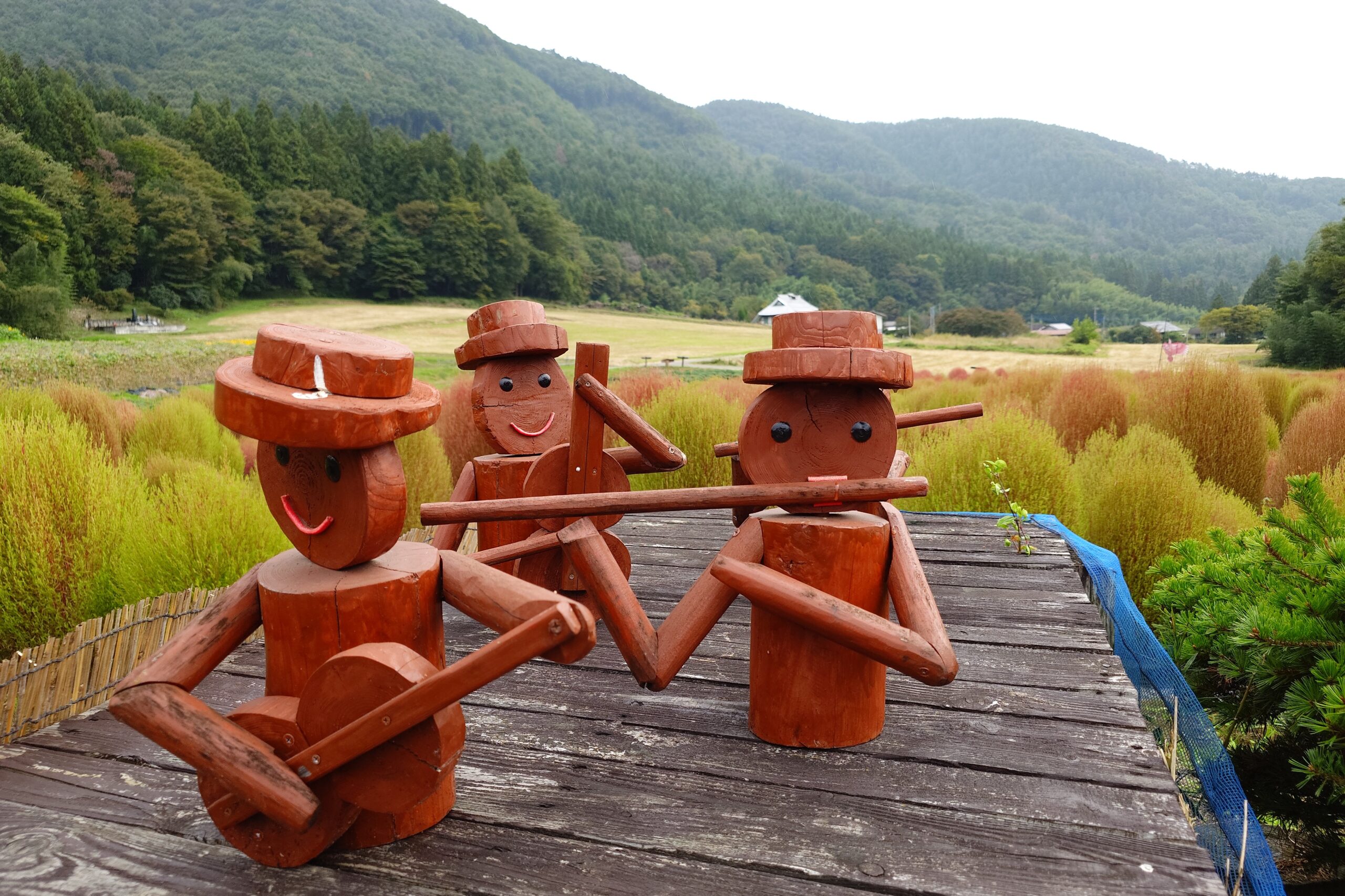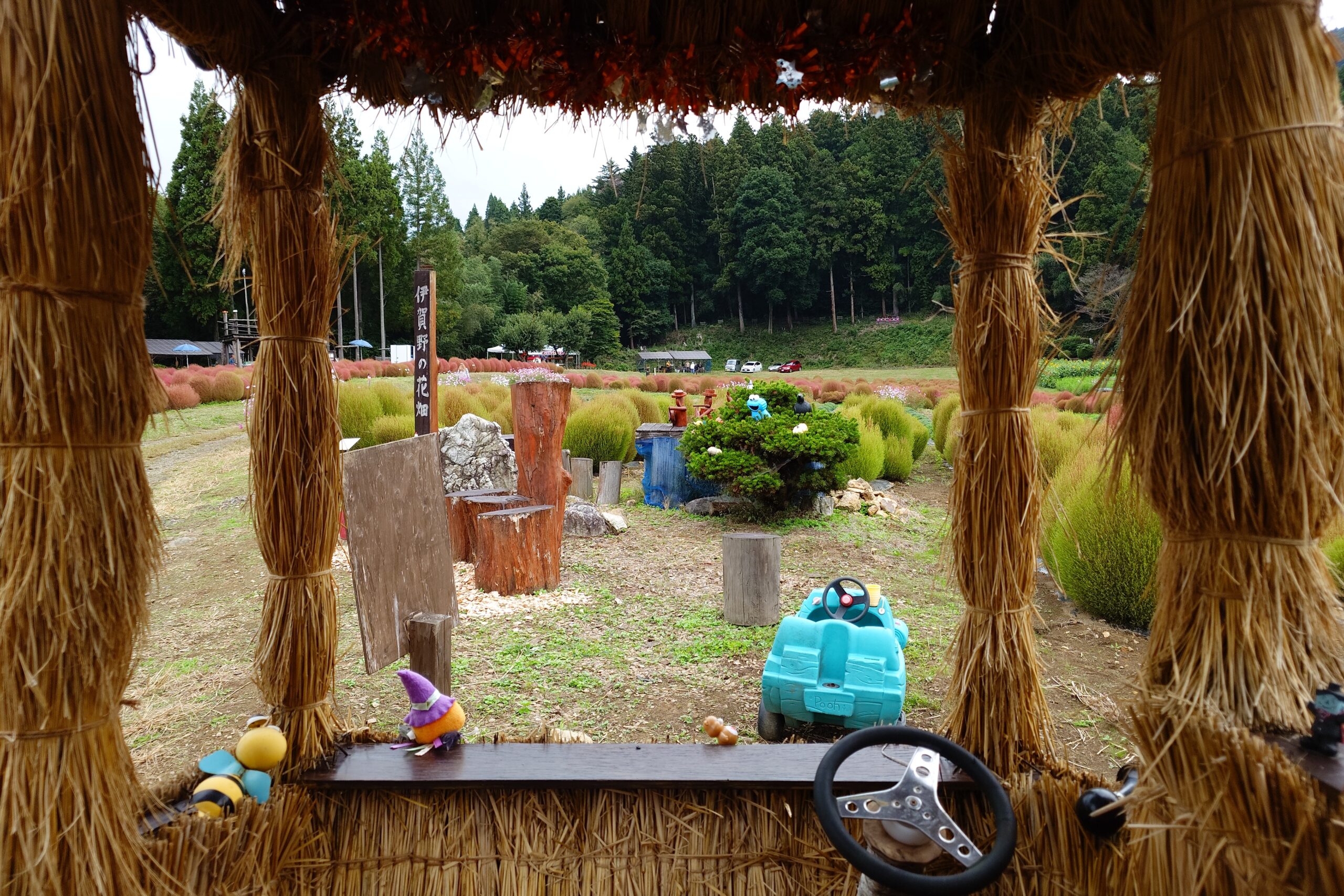 ほうき草(コキア)、コスモス、小菊、ヒマワリ、蕎麦などを