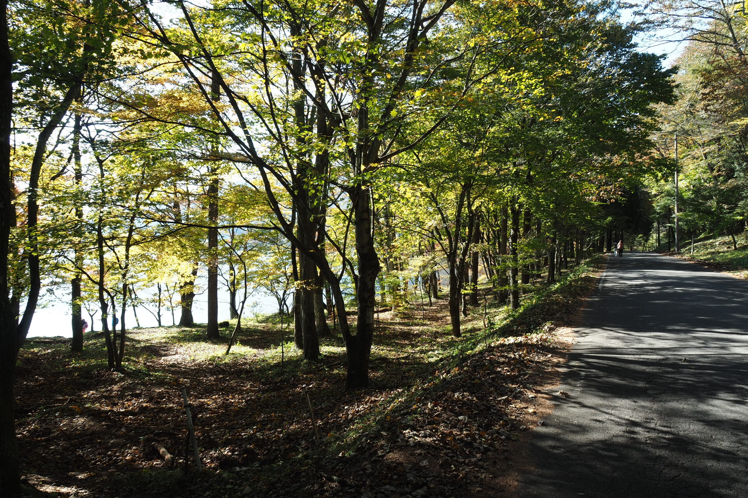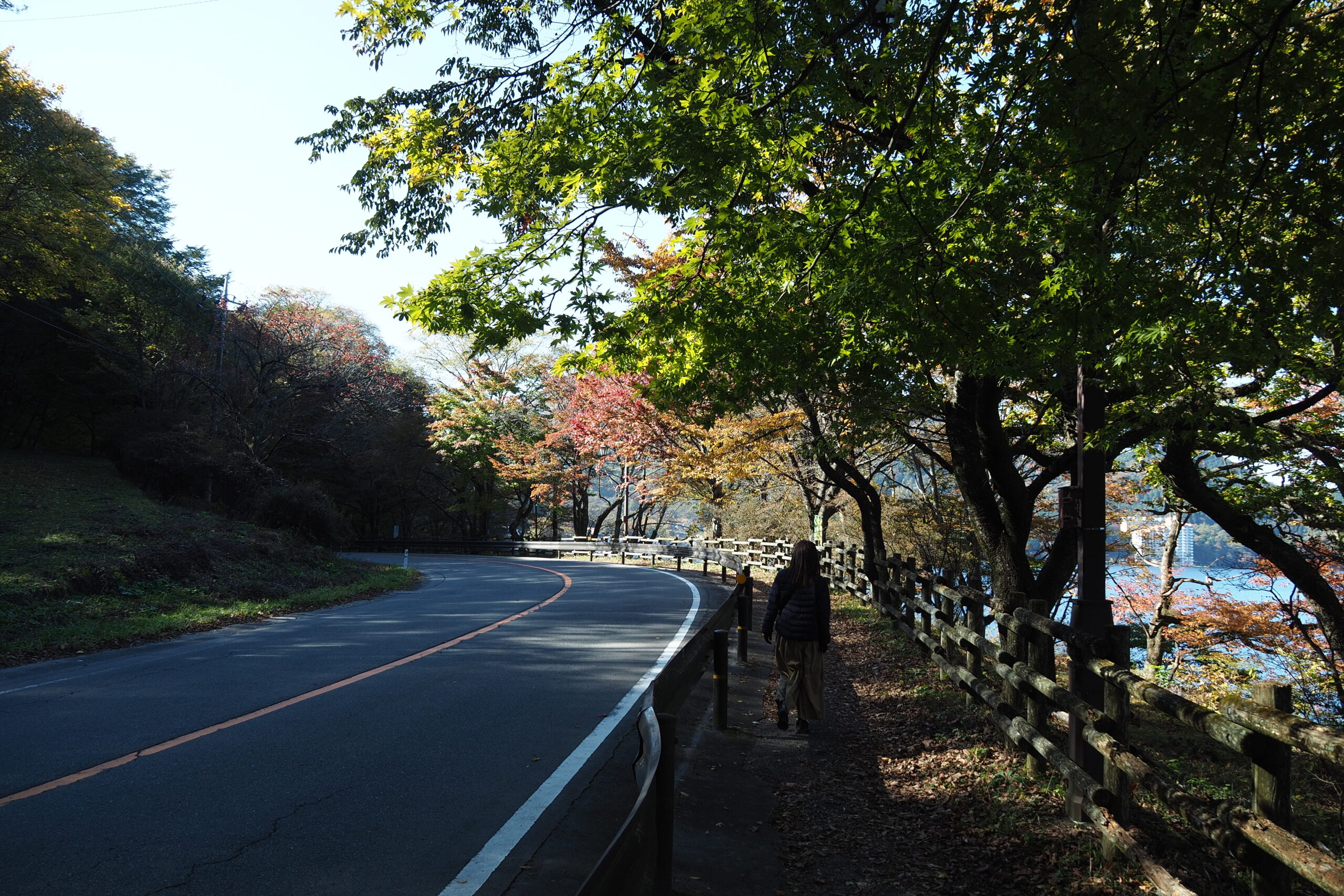 やっぱり水辺の方が冷えるのか周遊道路より紅葉は進んでいる感じ