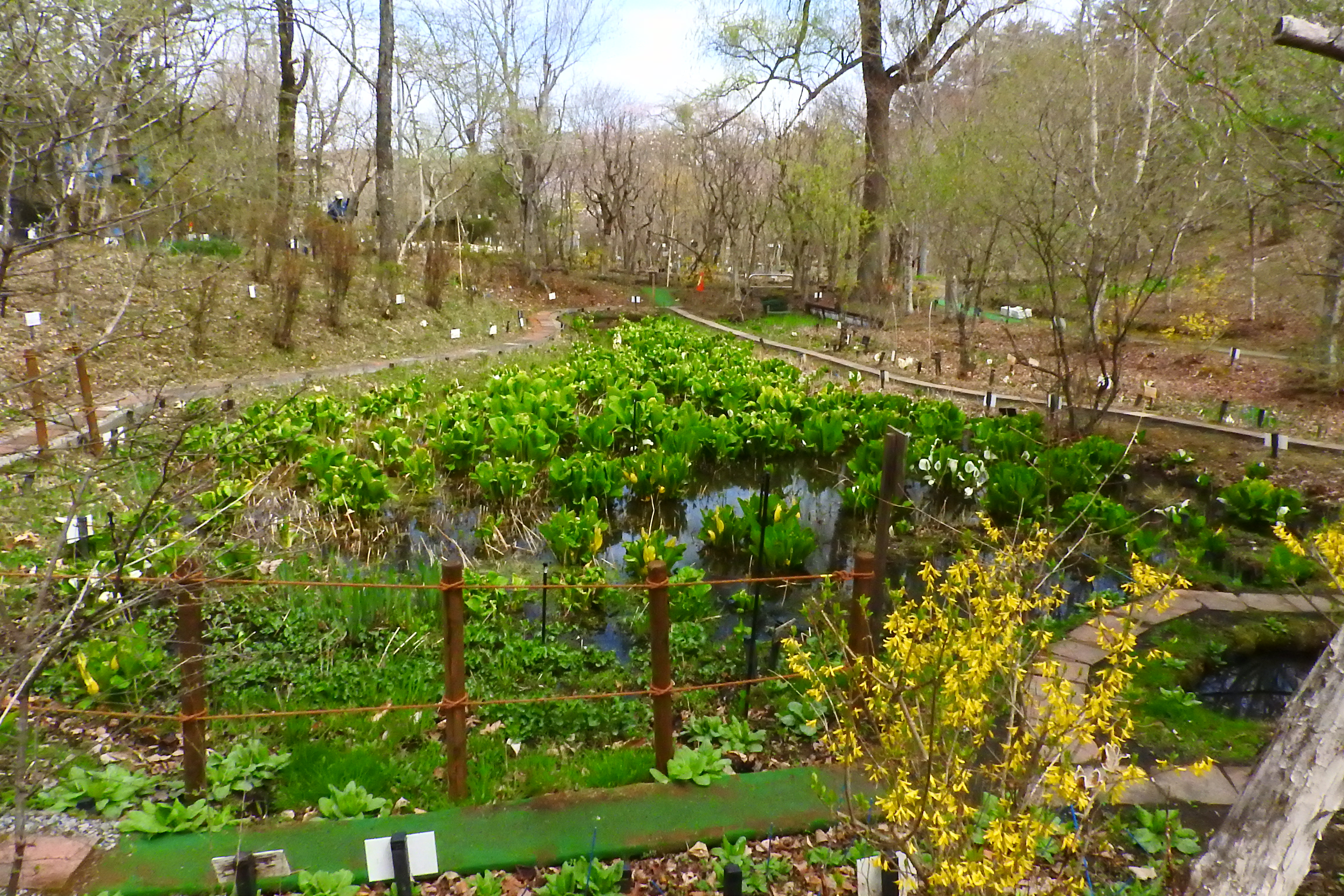 池にはミズバショウが沢山咲き