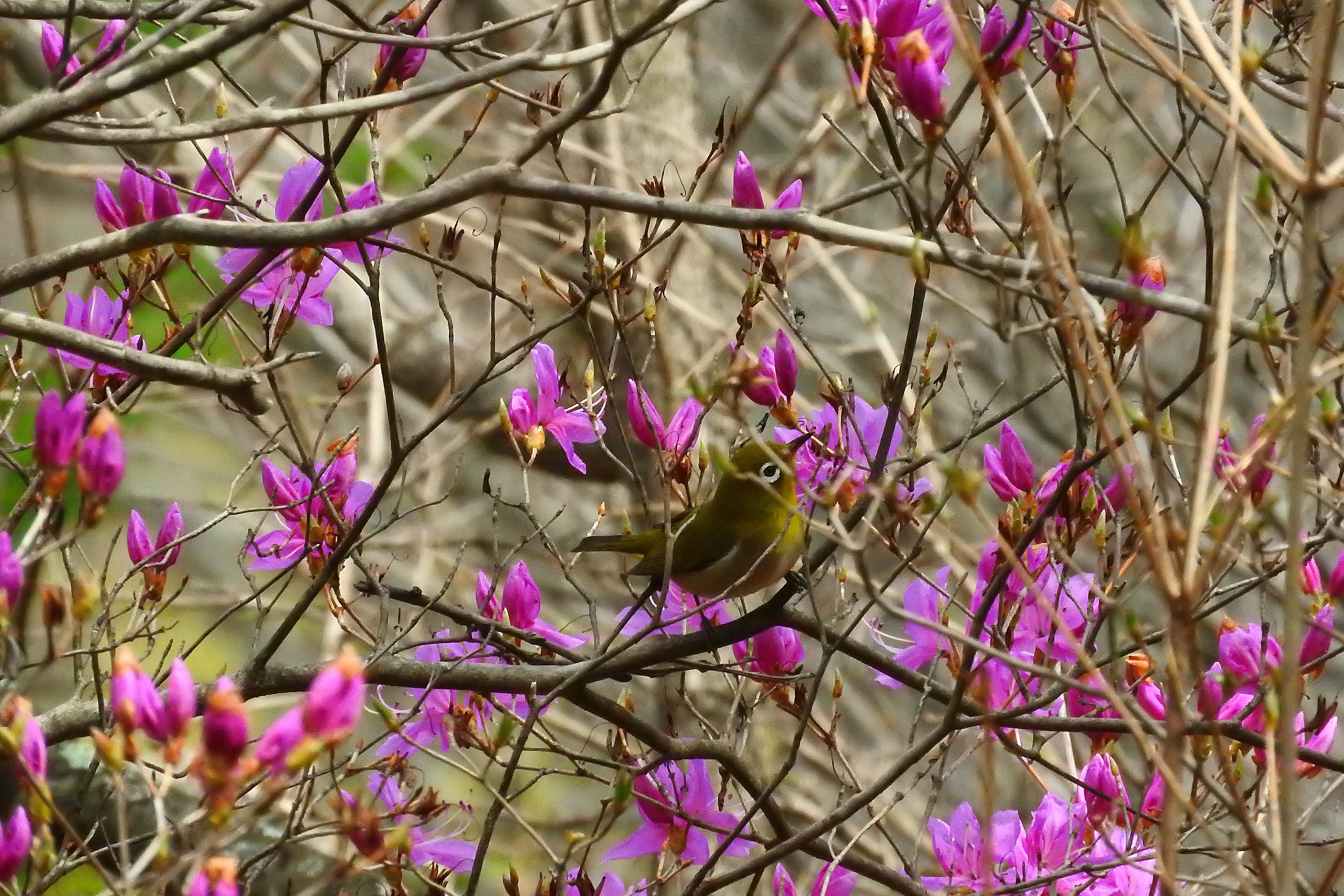 ミツバツツジとメジロちゃん