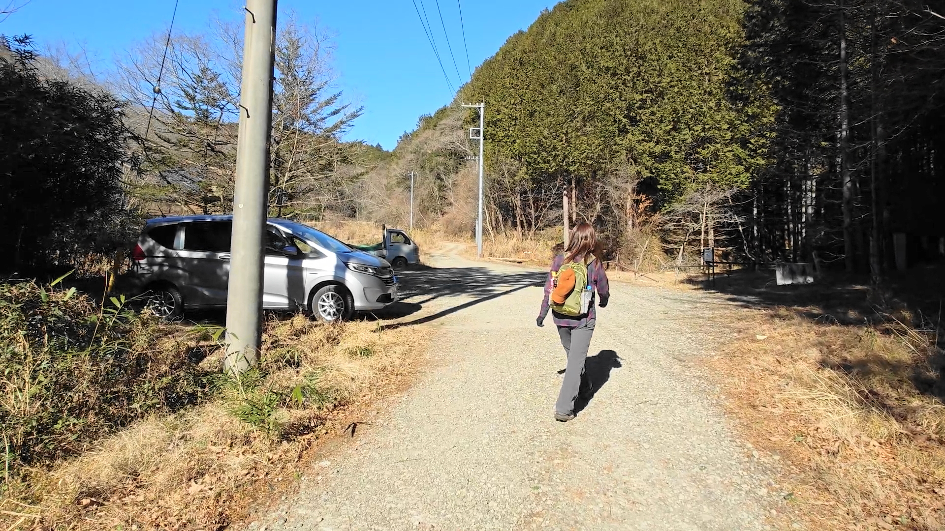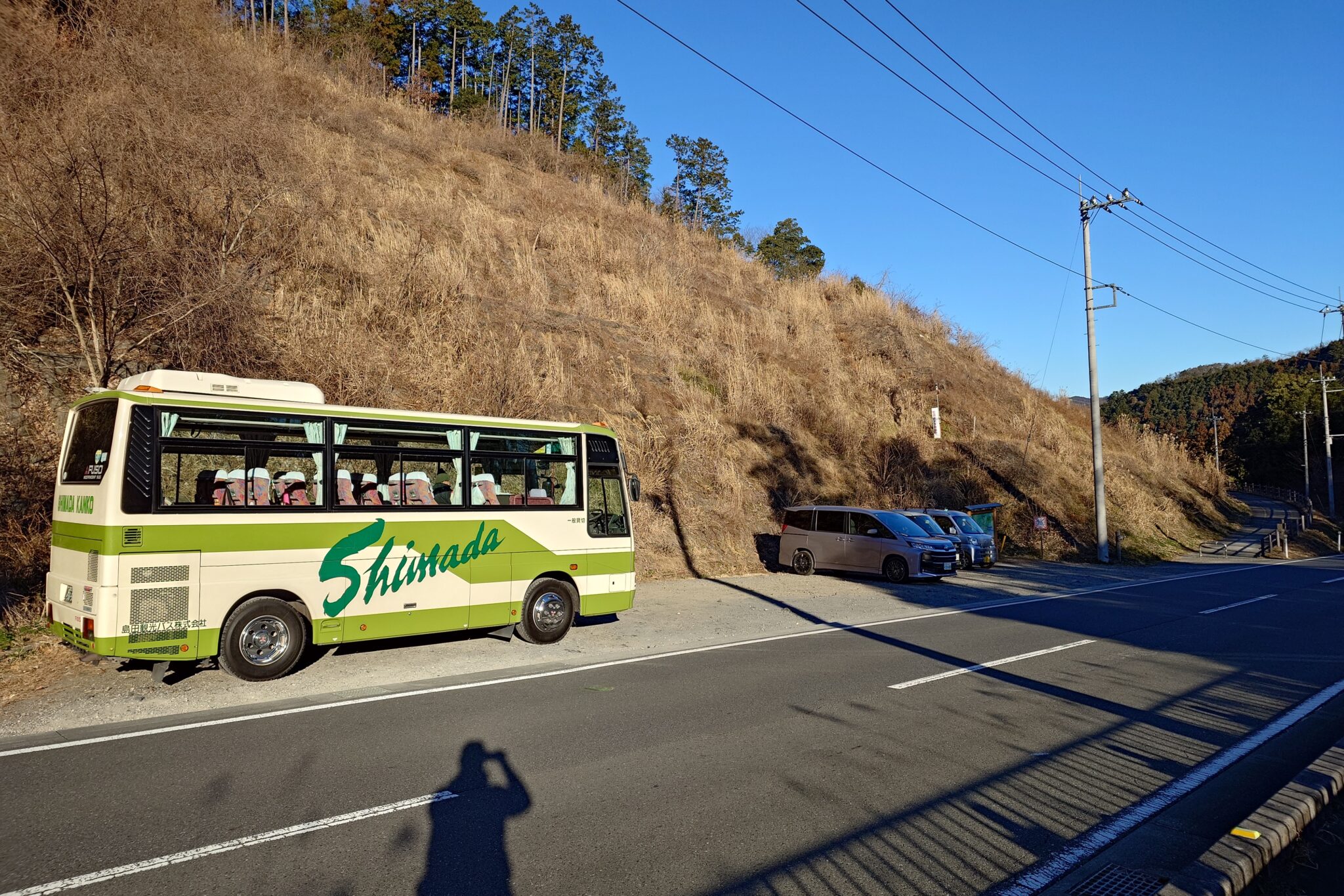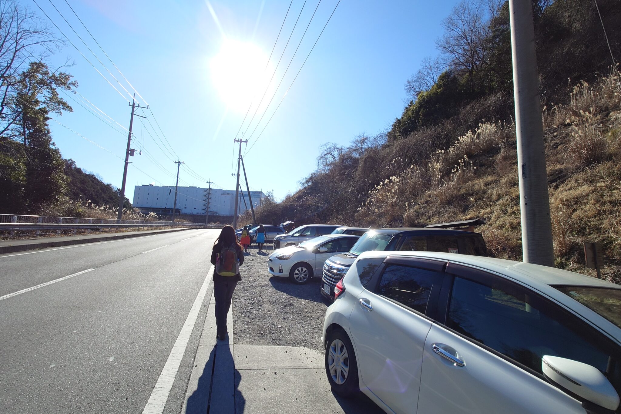 朝歩いた車道が見えたので駐車場も近いようです