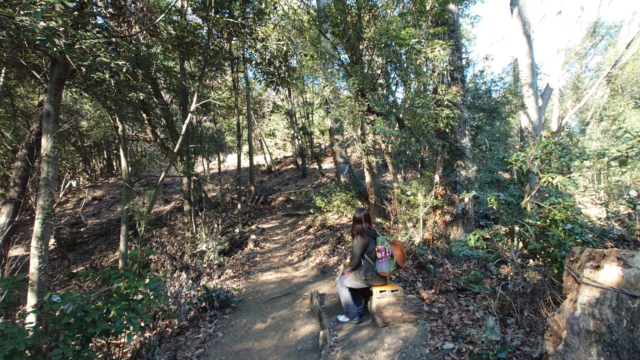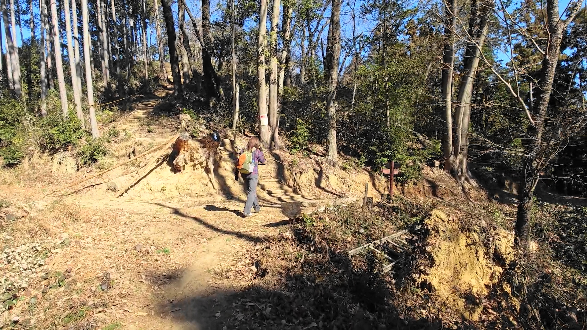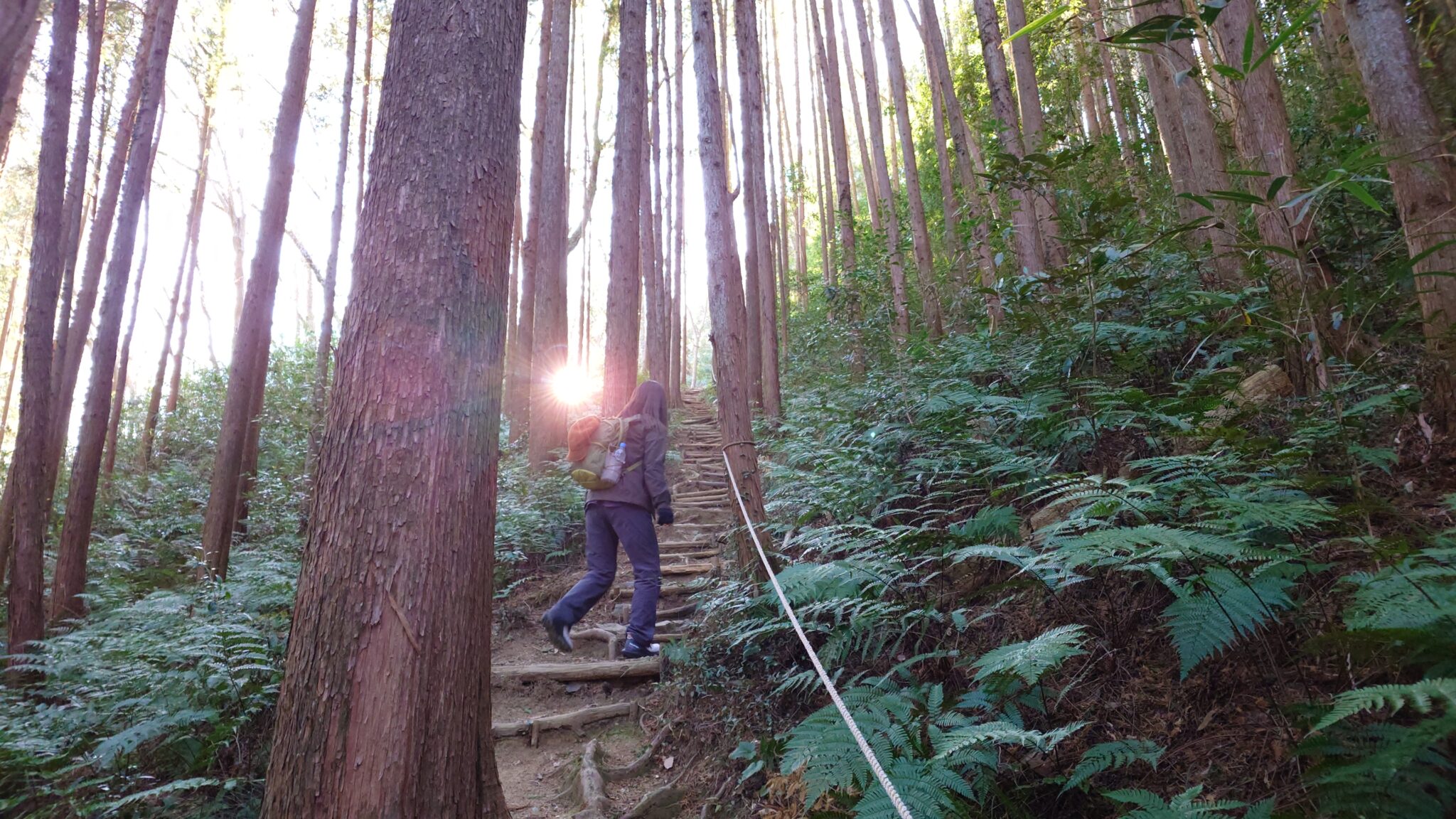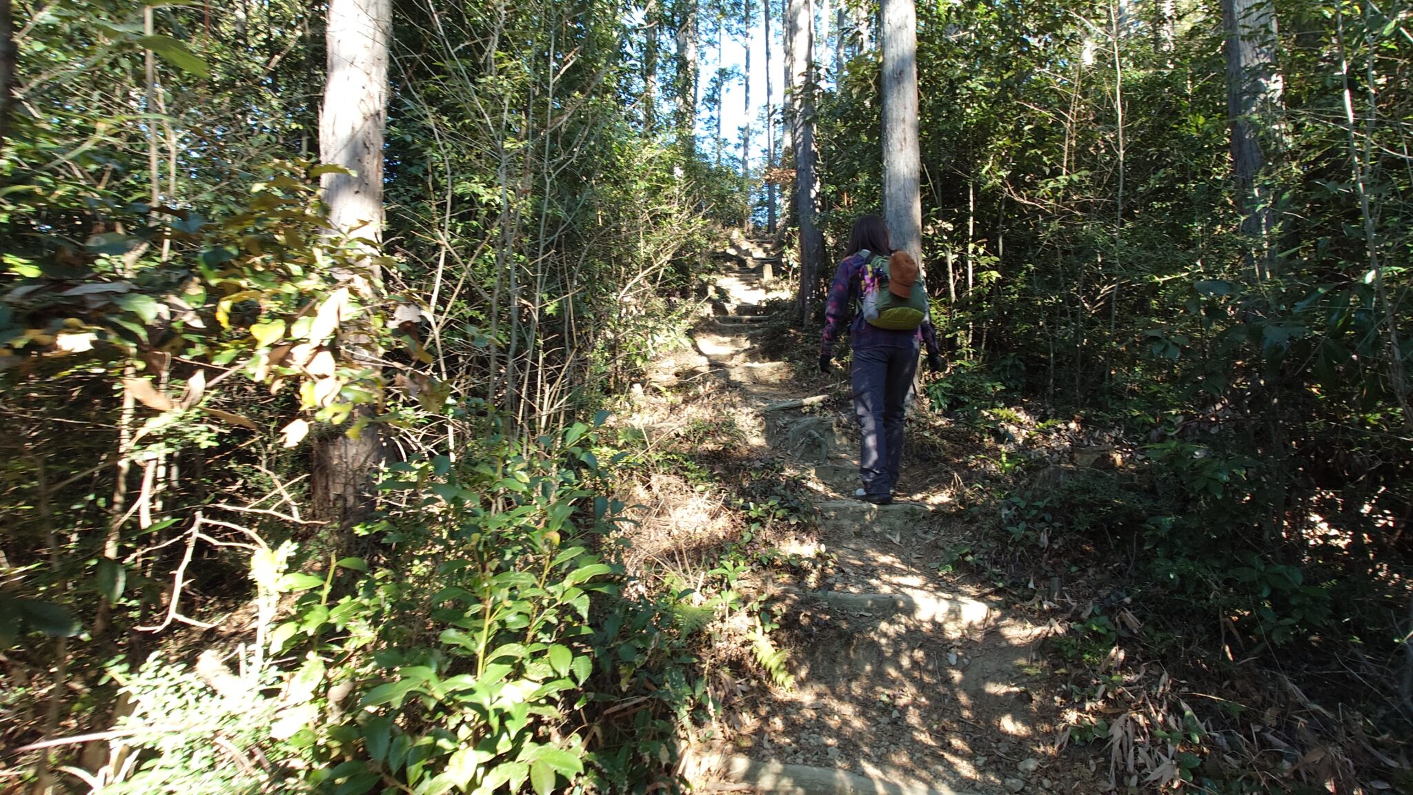 少し進んだ先は急斜面になって丸太の階段で綺麗に整備され