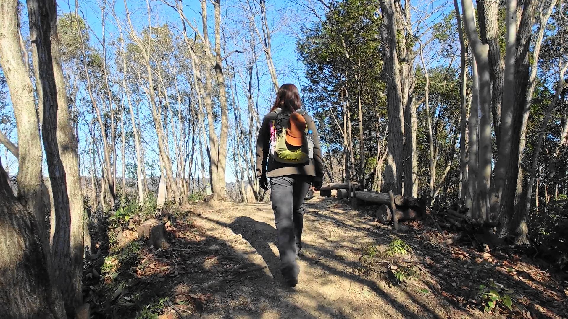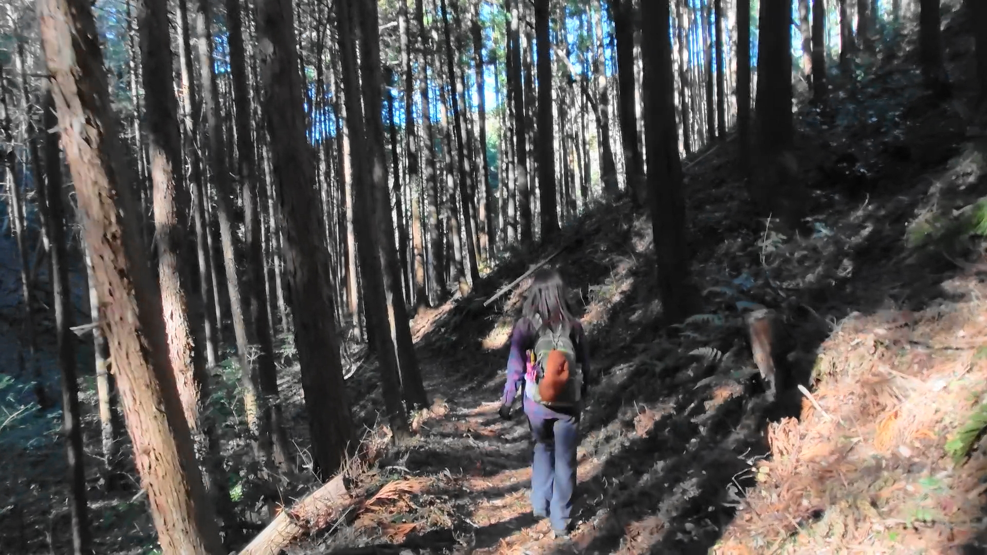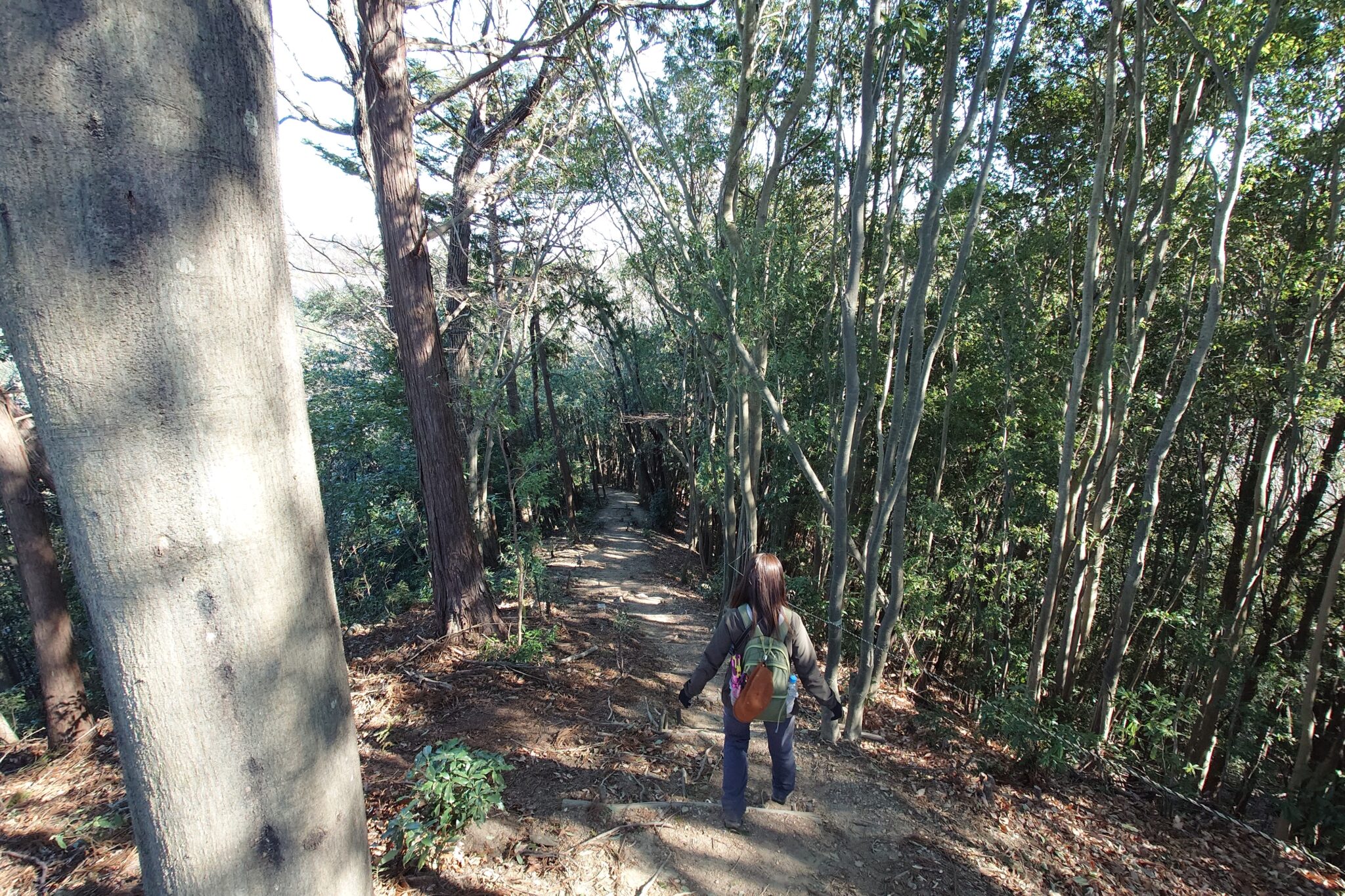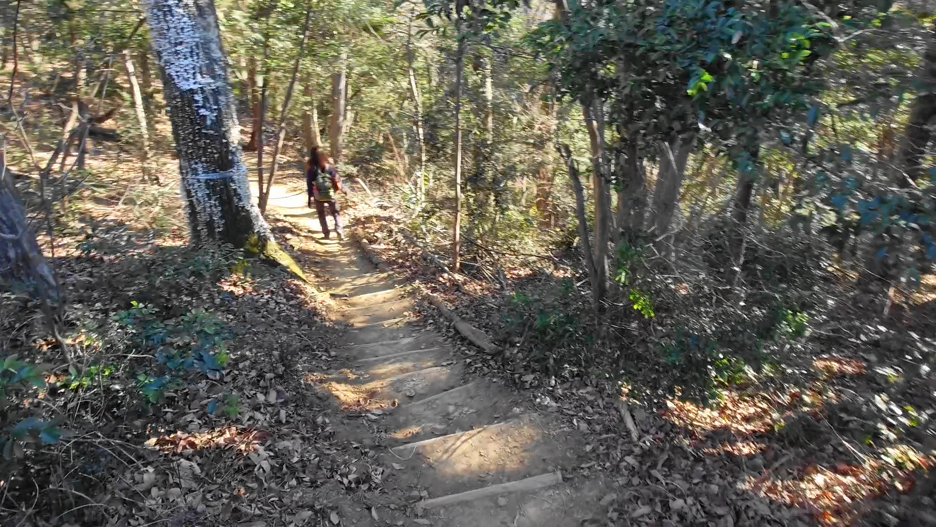 少し進んだ先は急斜面になって丸太の階段で綺麗に整備され