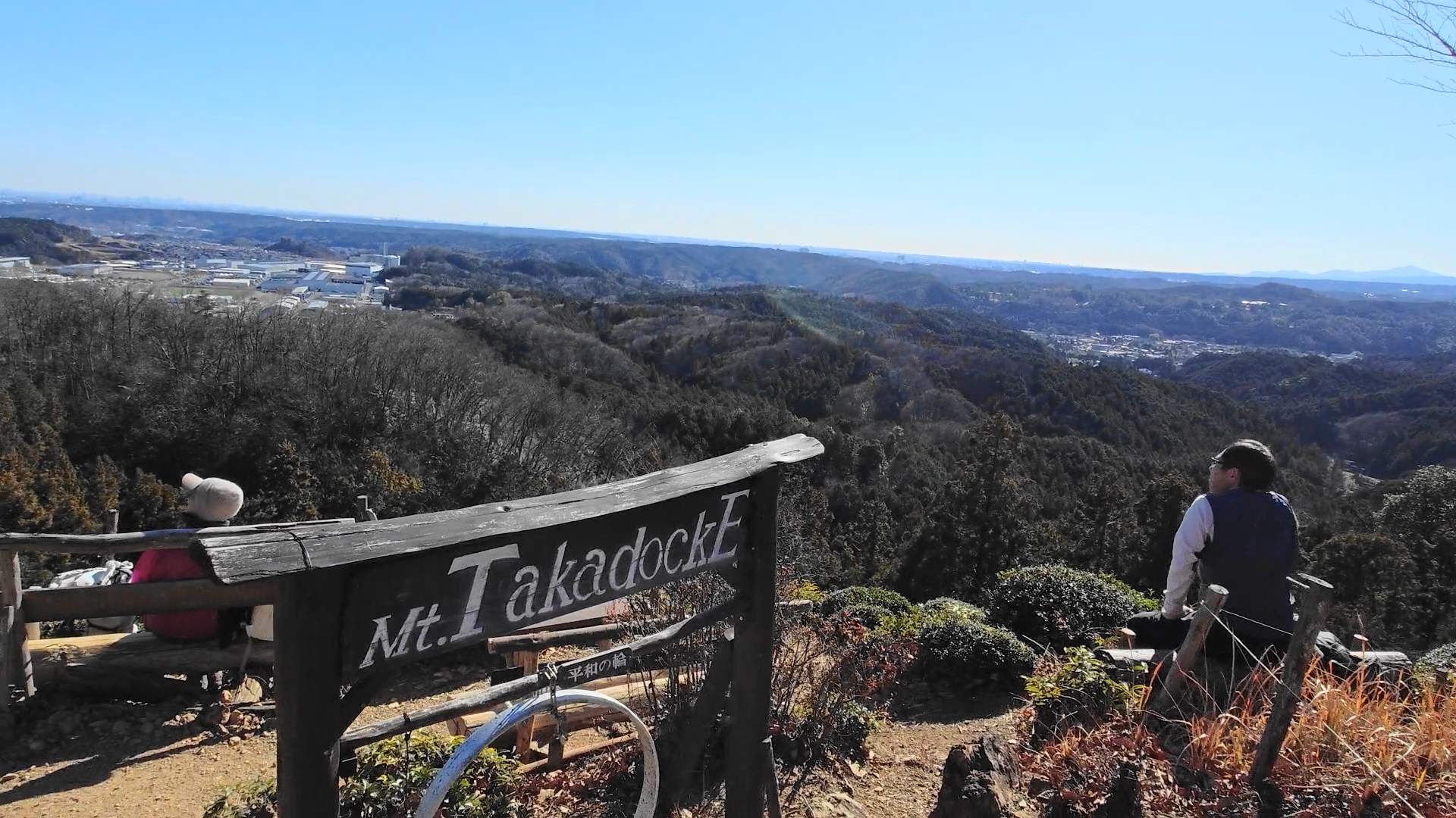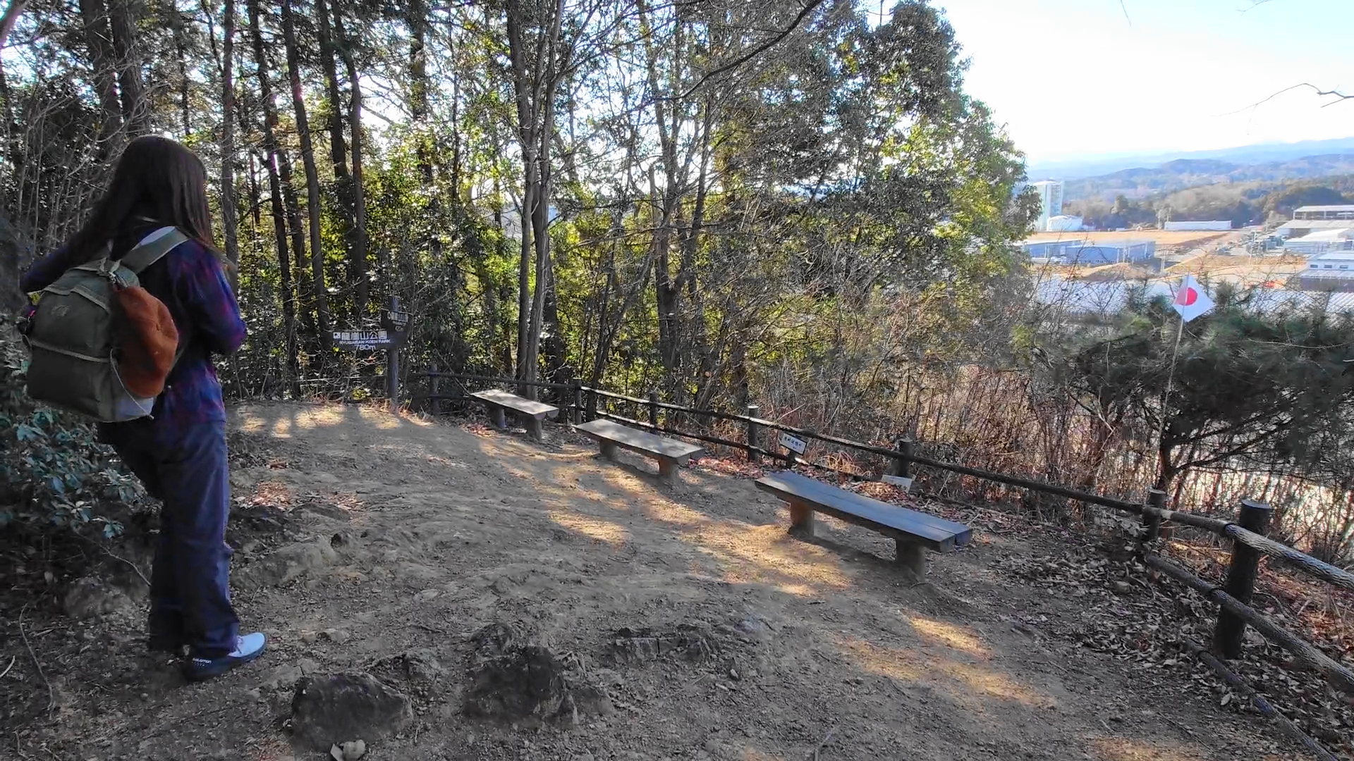 目の前には歩いて来た龍崖山や工業団地など歩いて来たルートが一望出来ます