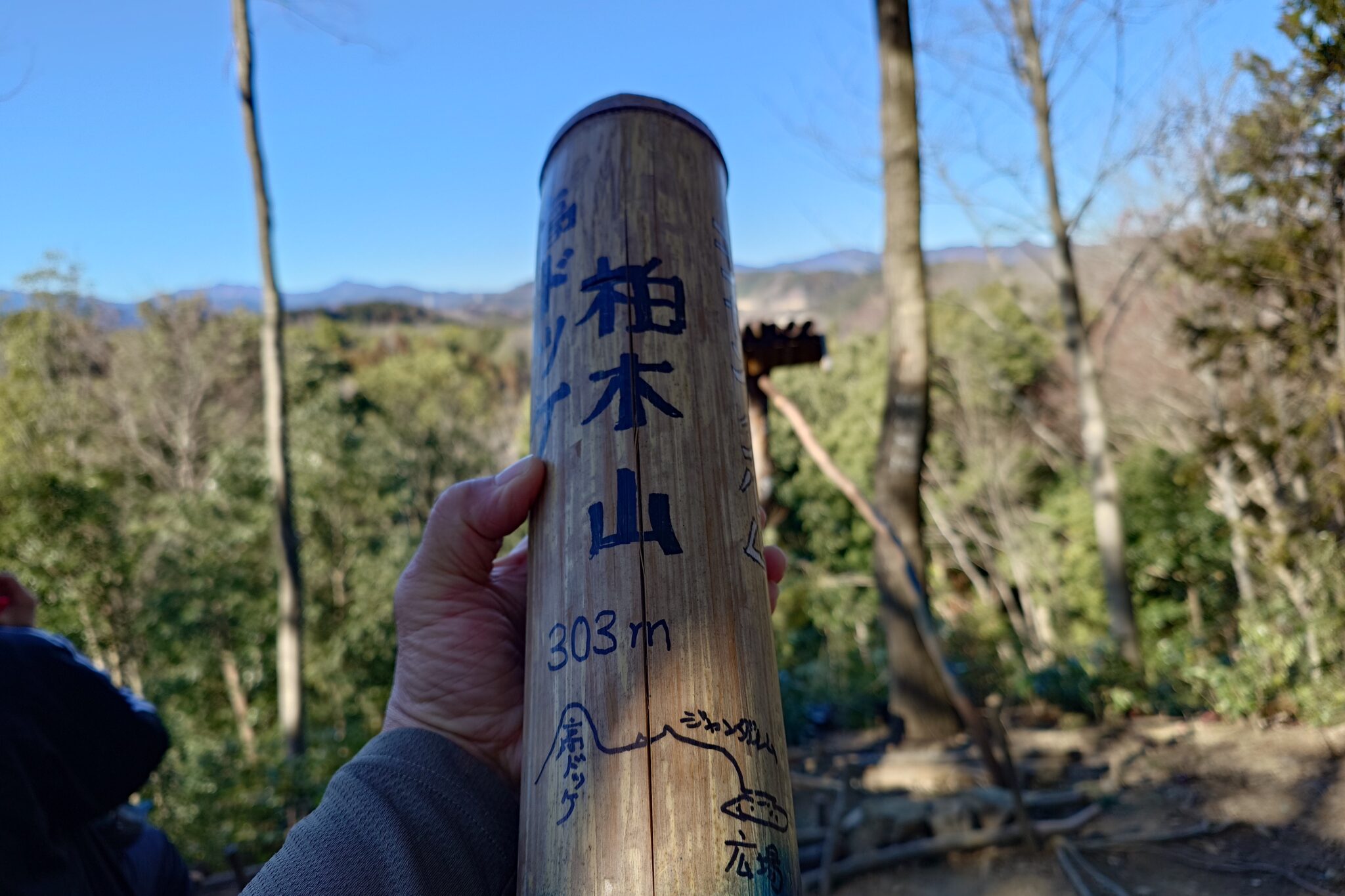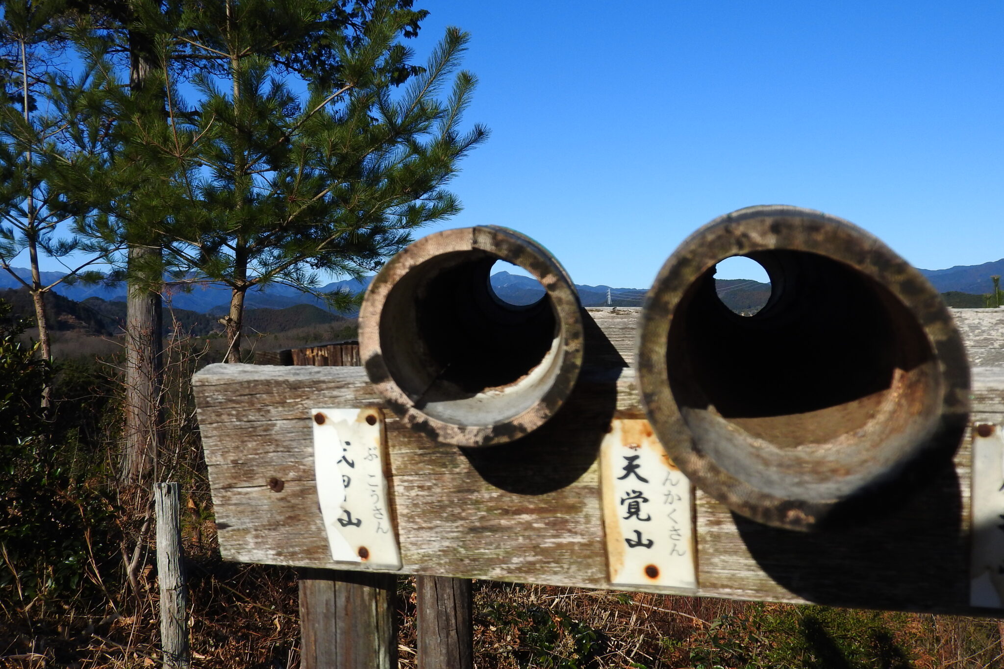 山頂には竹筒が設置されていてそこを覗くと