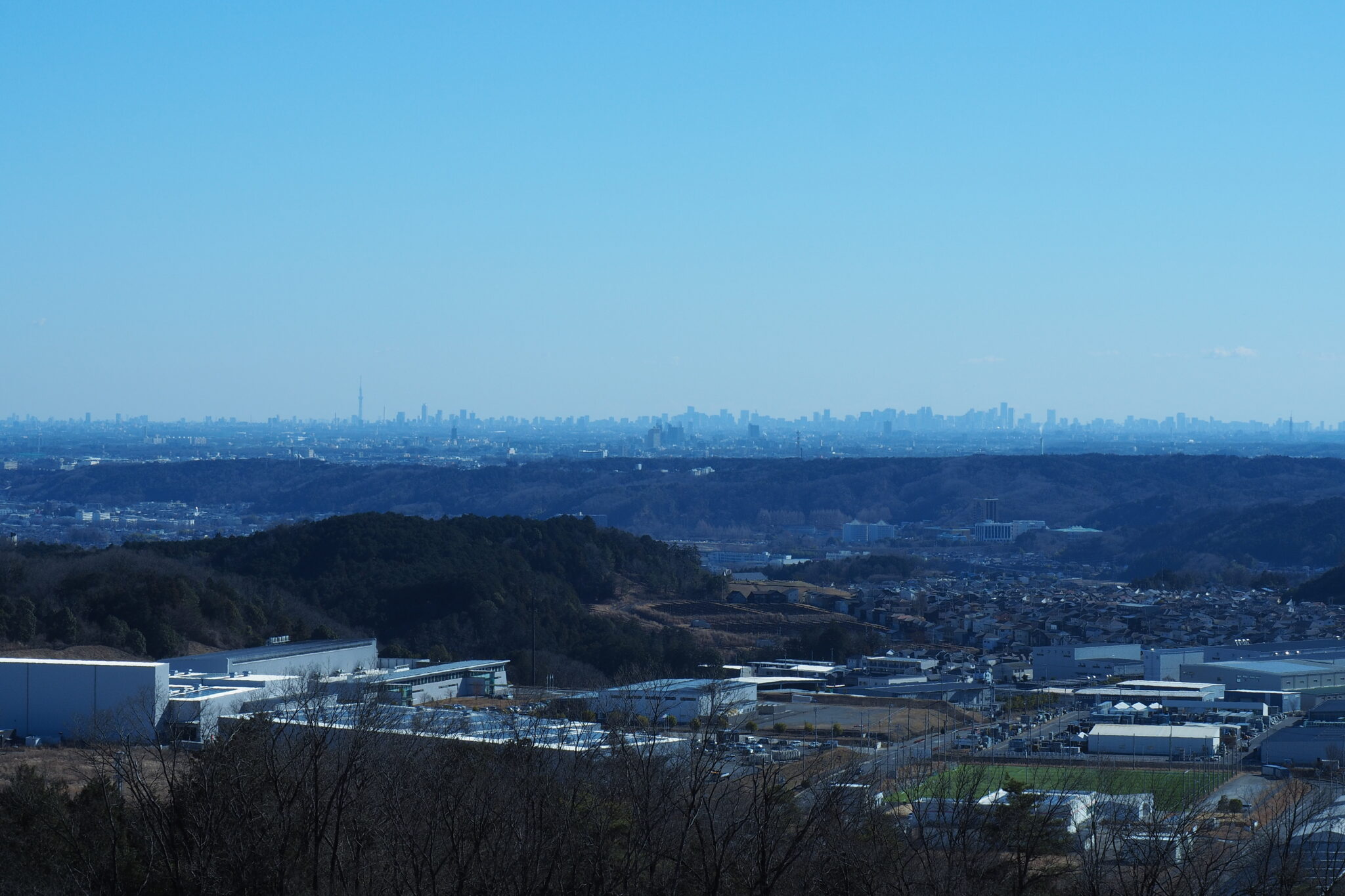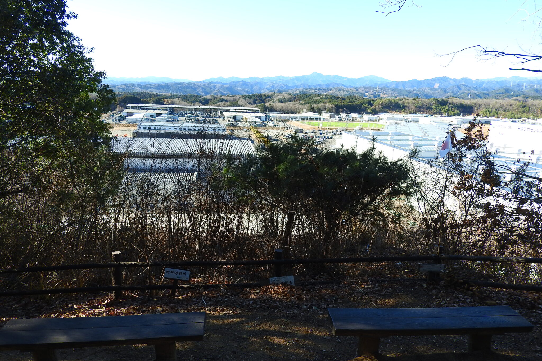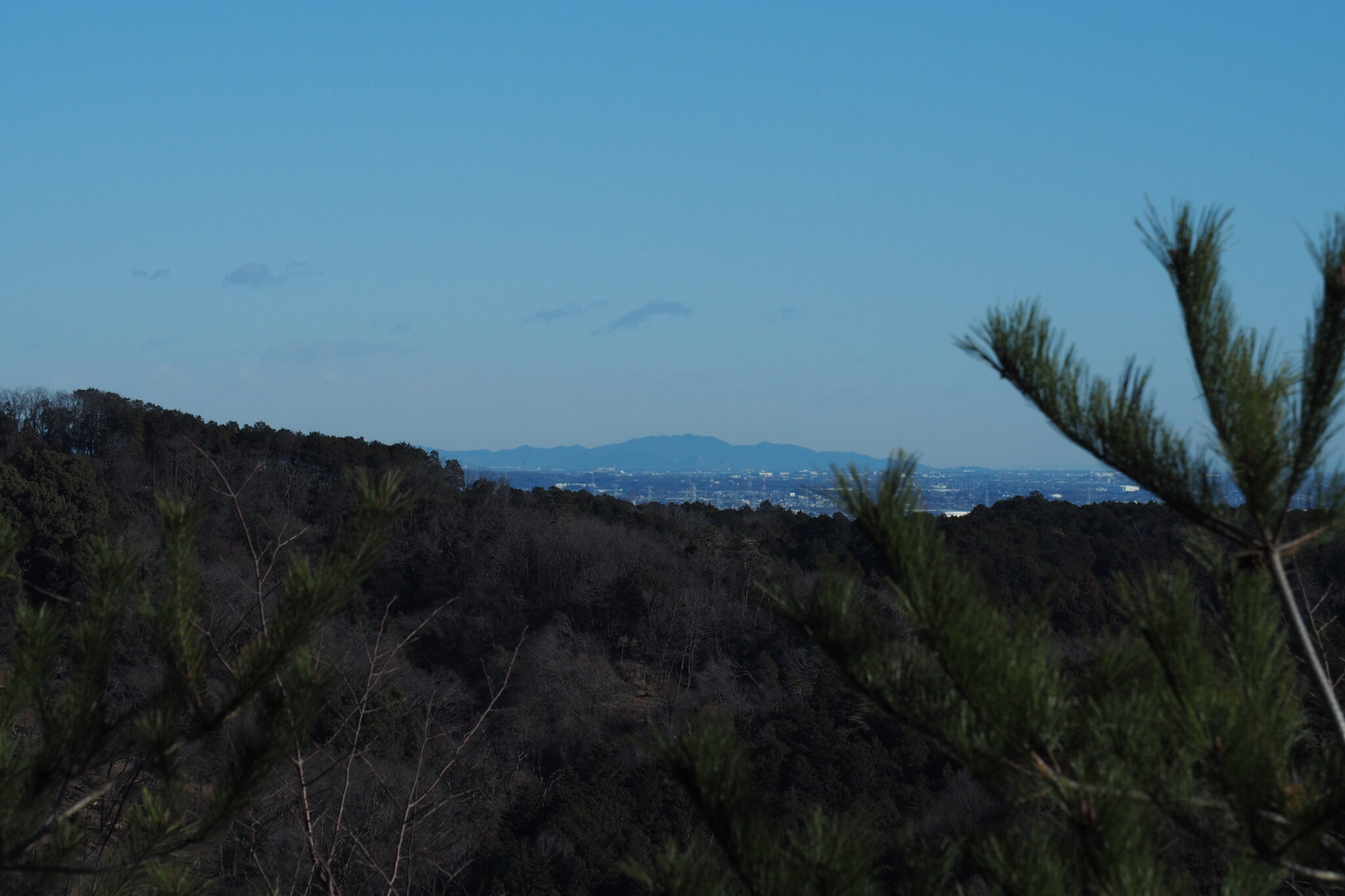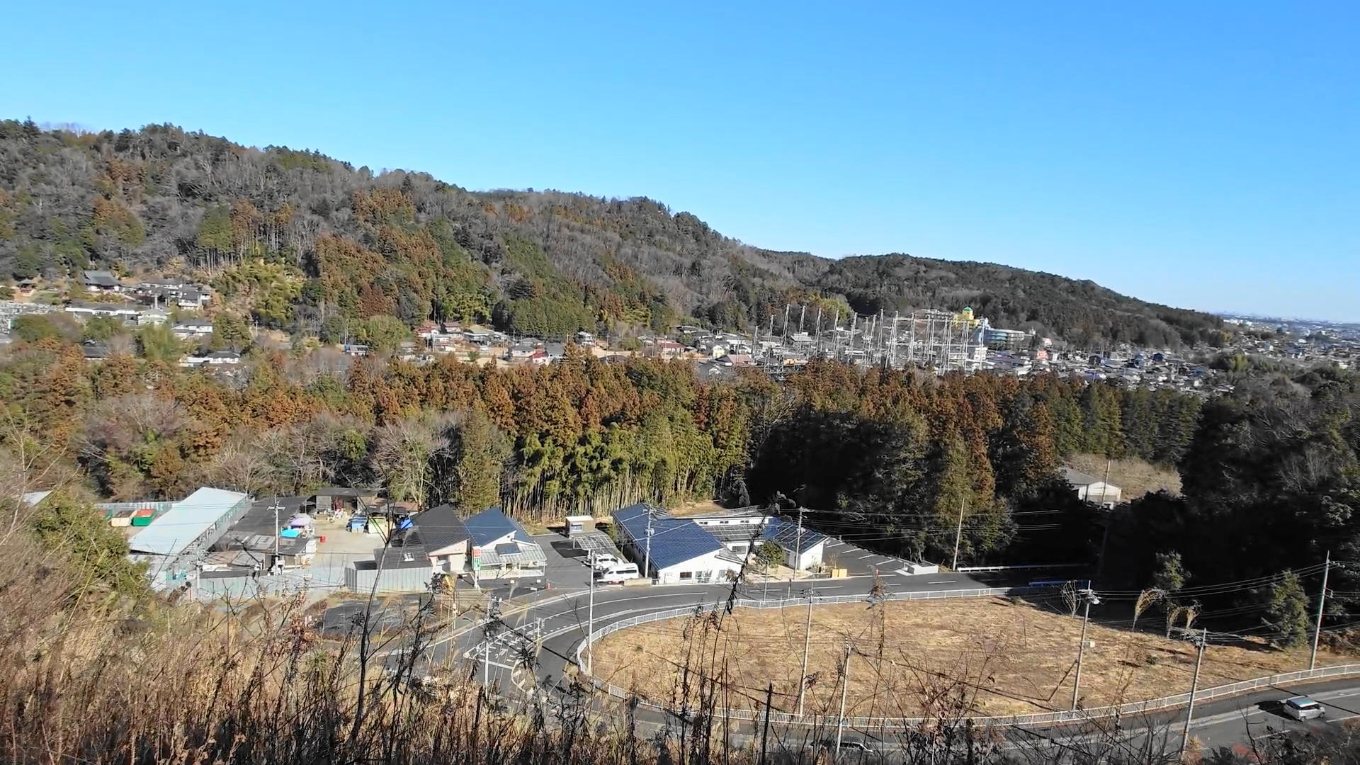 見えるのは先ほどと同じ感じで大河原工業団地と大岳山や御前山などの山並み