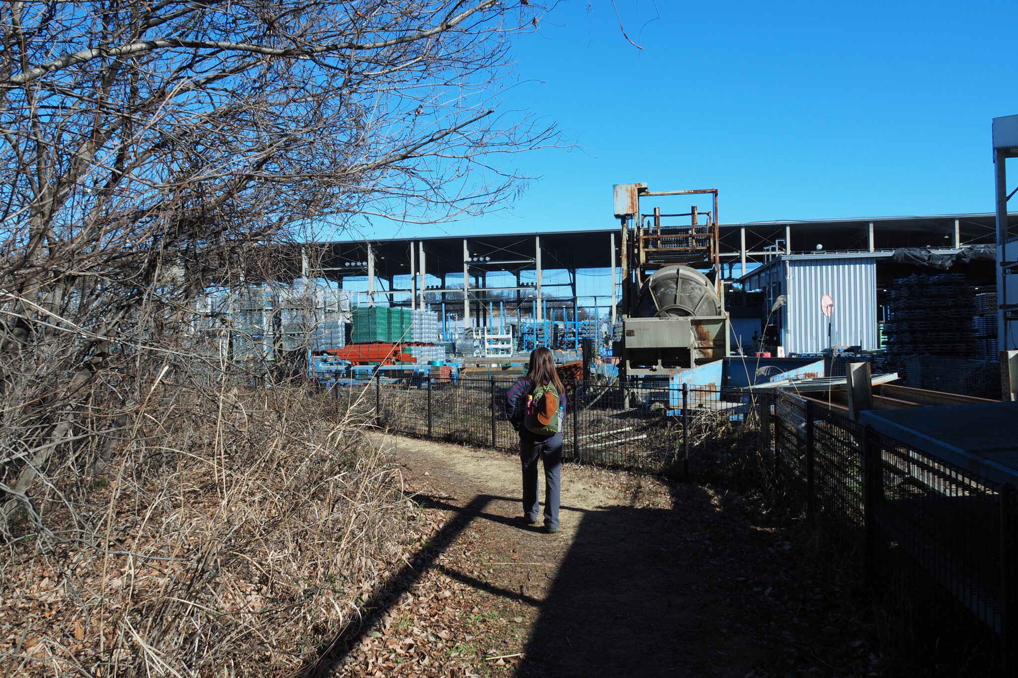 確かこの後フェンス沿いを歩くので工場の向こう側を歩くのでしょう