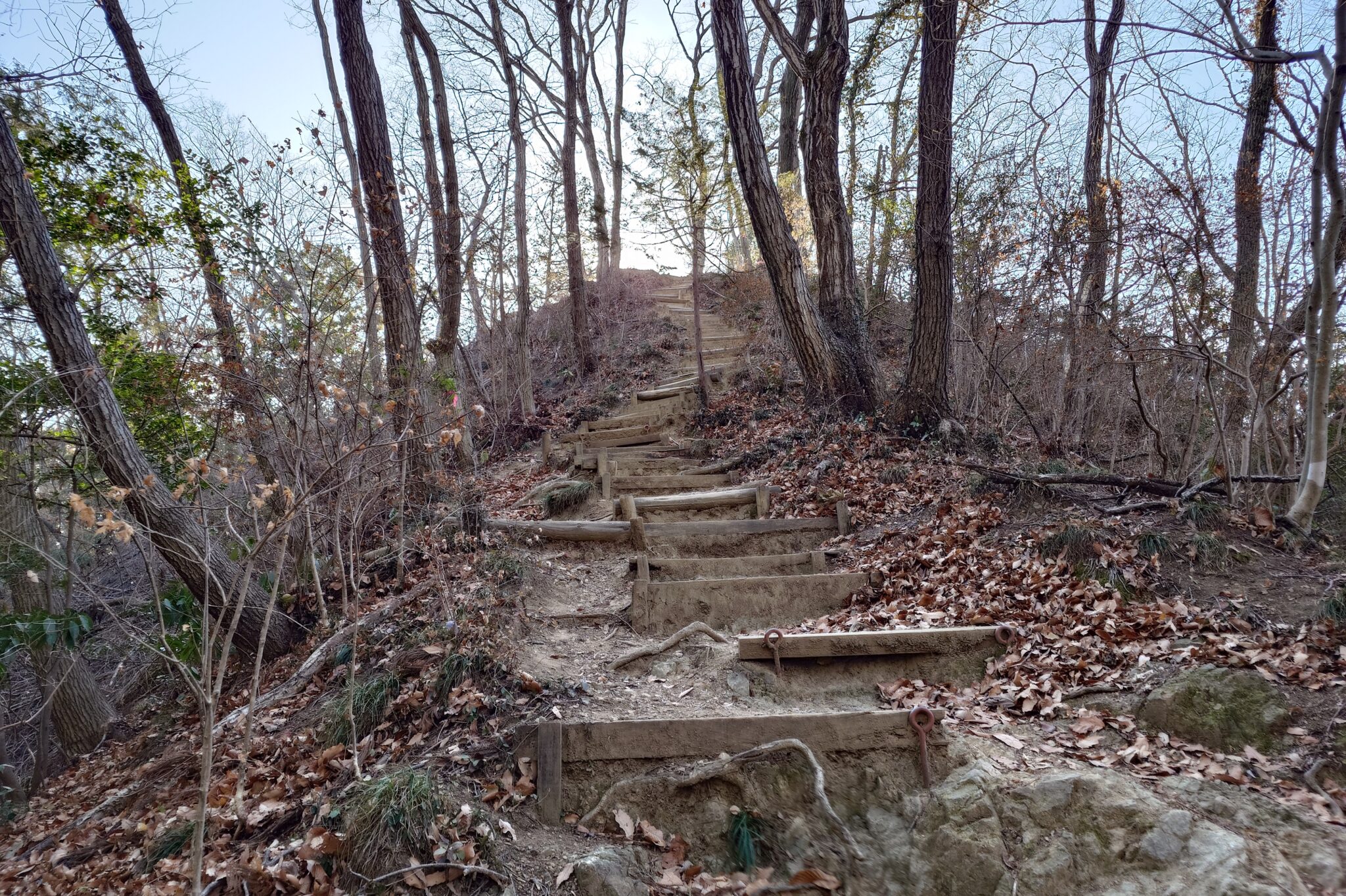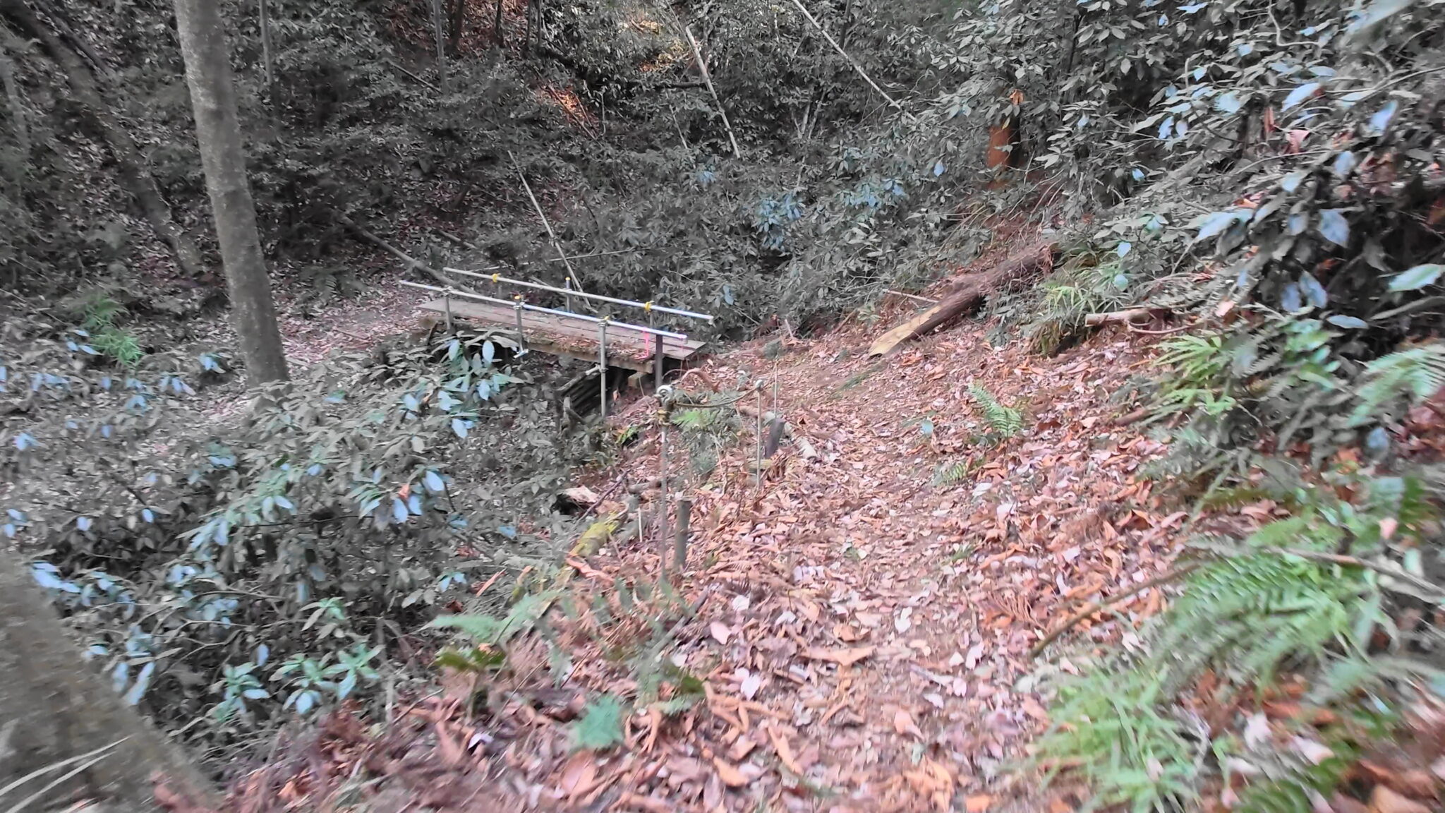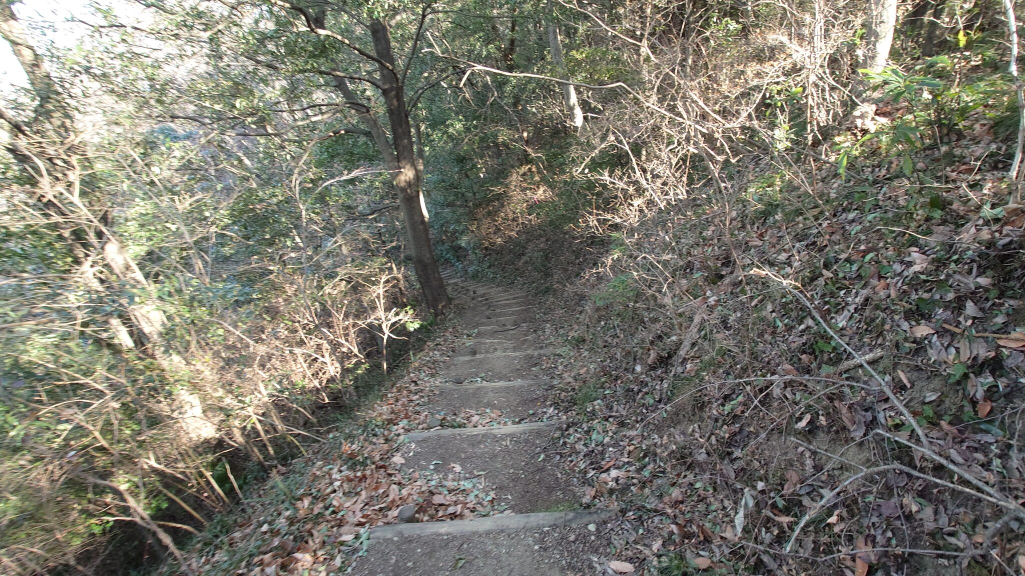 橋が見えてくると左の斜面に階段が見えてくるので