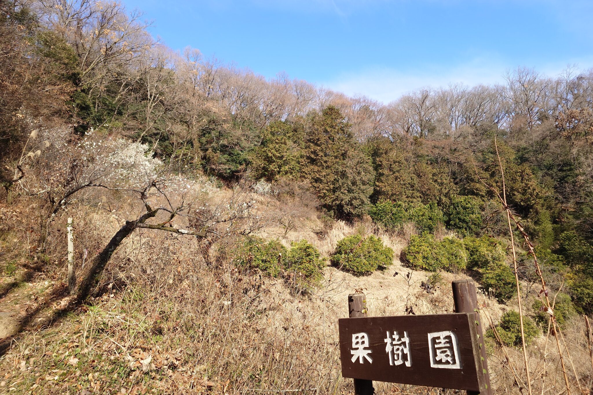 少し道から入って果樹園を眺めると