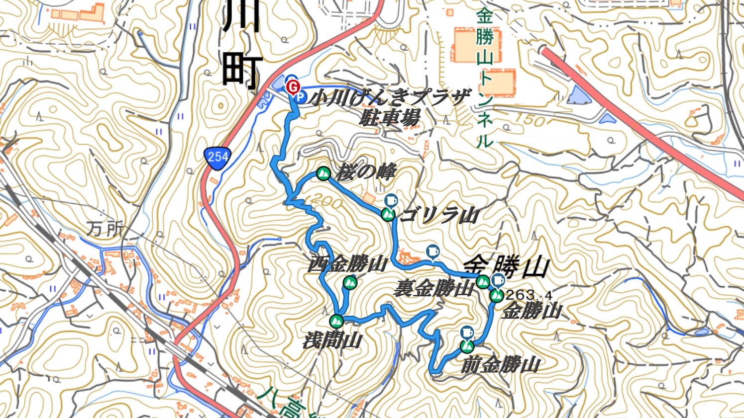 (9:50)西金勝山(9:55)…(10:07)樹木広場…(10:11)小川げんきプラザ 第1駐車場