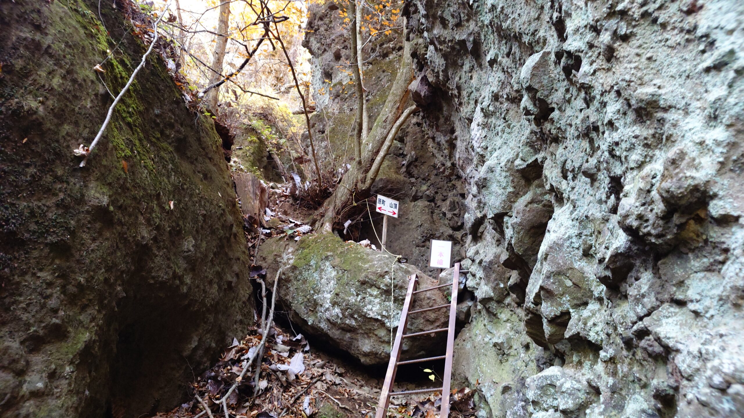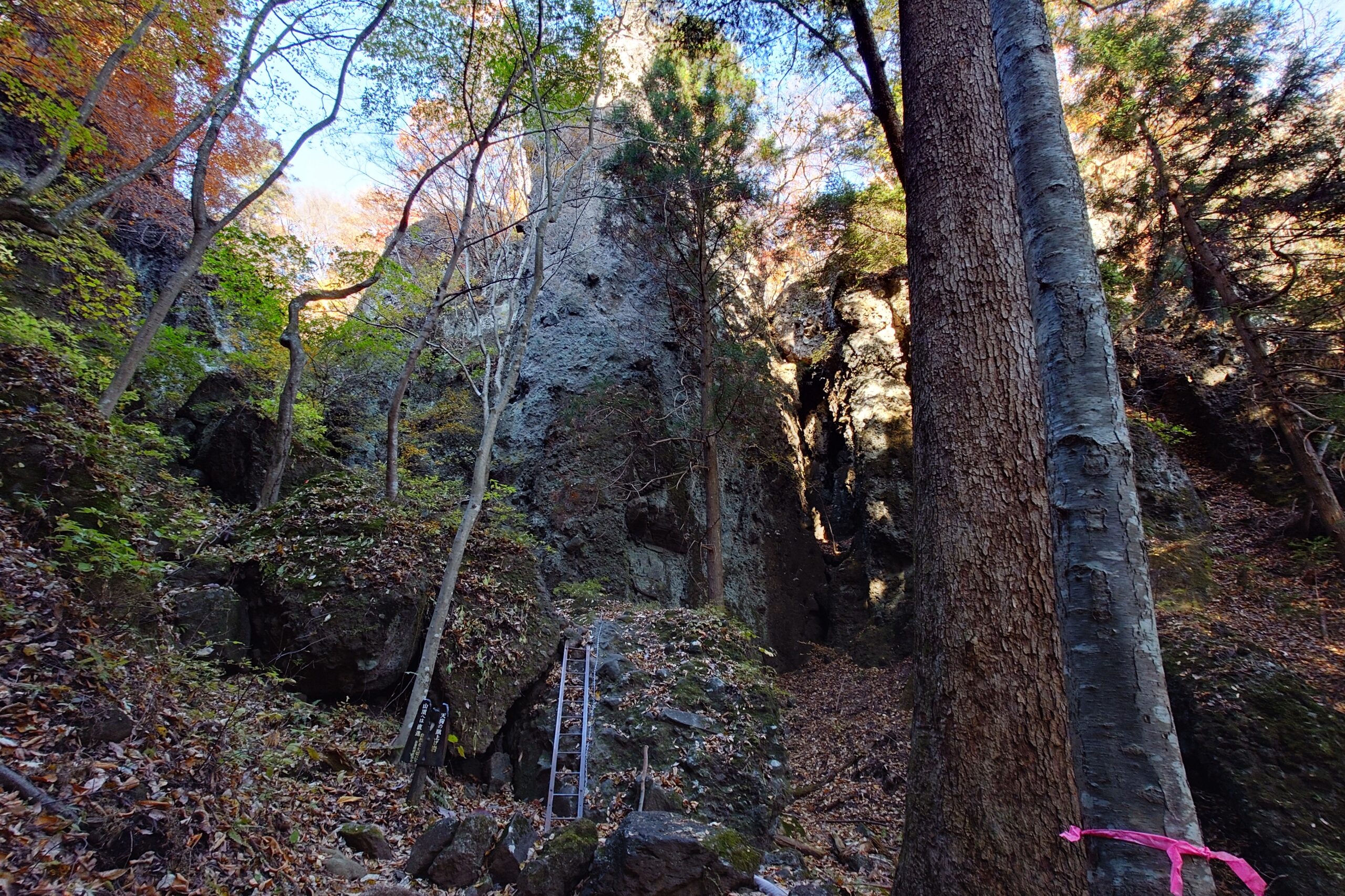 天狗の蹴上げ岩のはしごが見えてくると