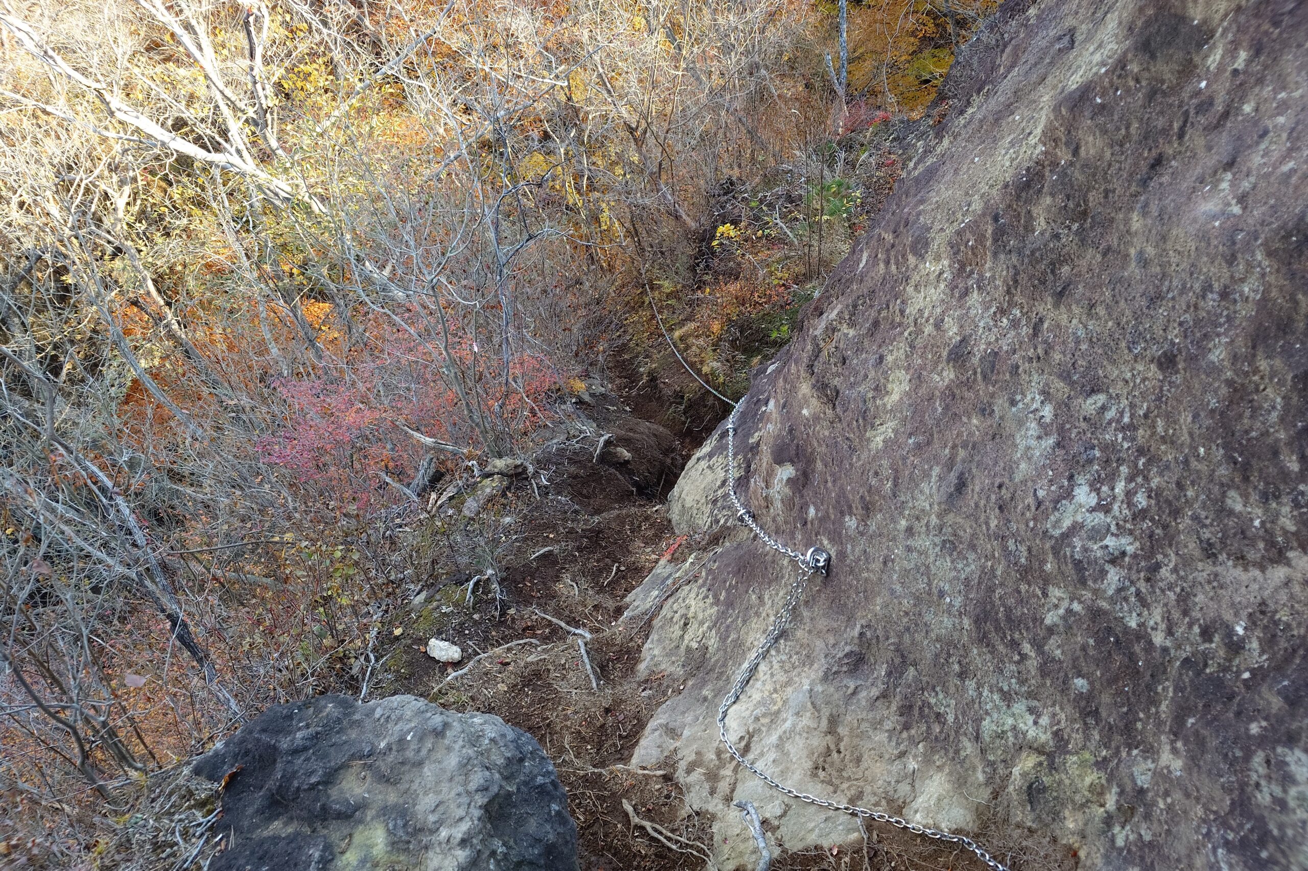 山頂から南側に回り込んだところの鎖場