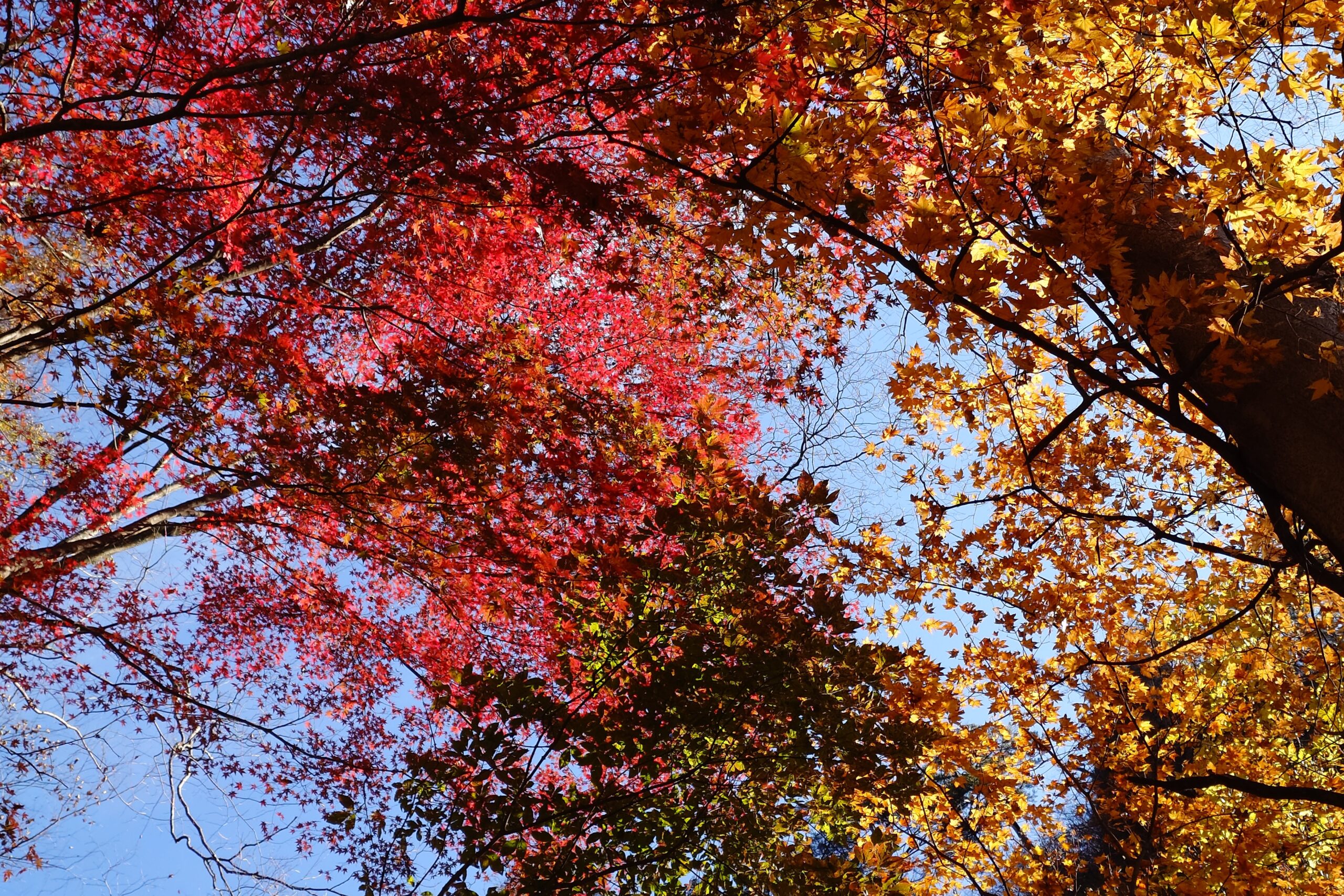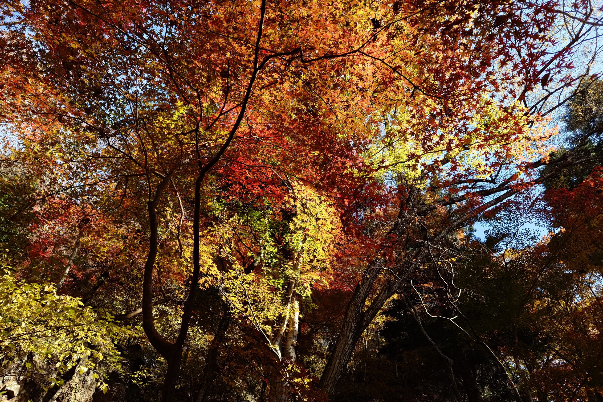 沢通りから見上げた紅葉が少し気になるがどうでしょう