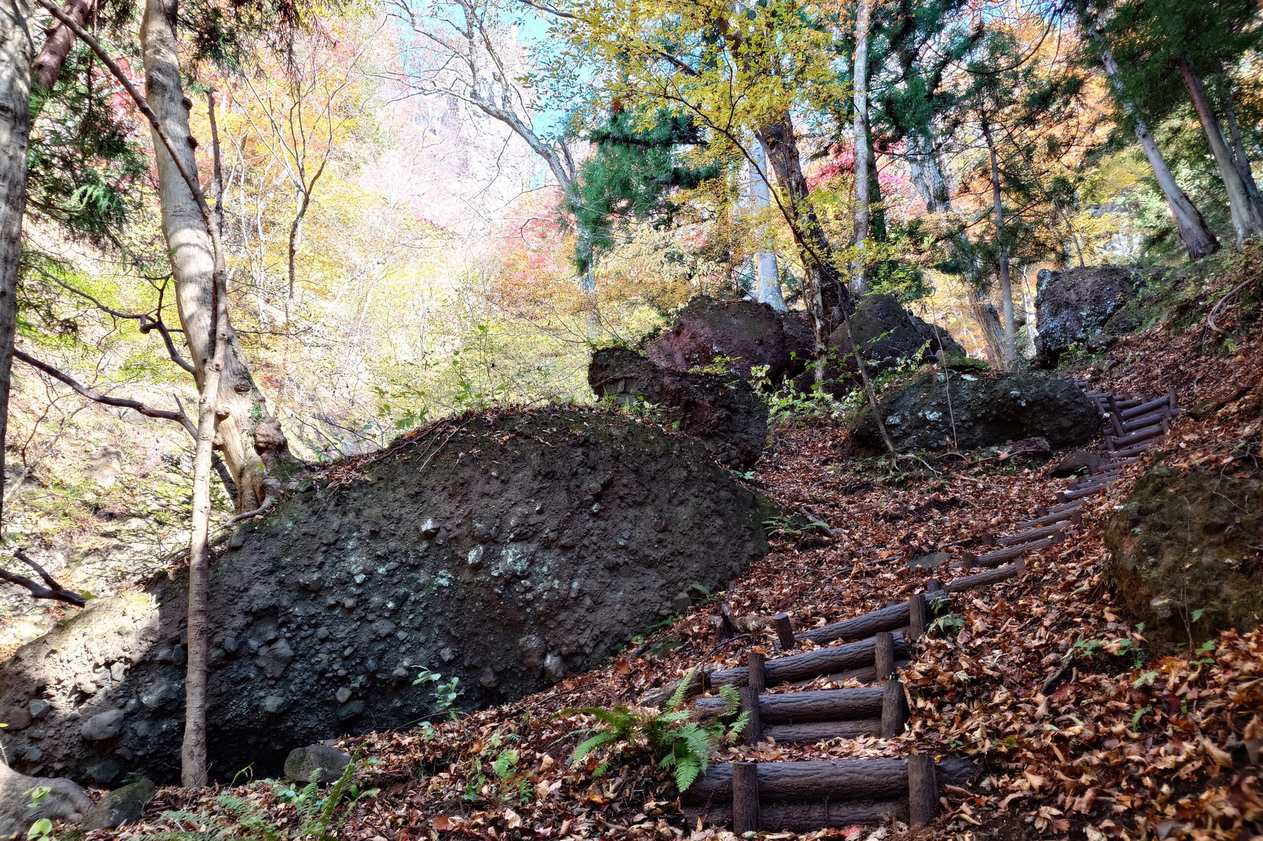 沢通りの巨岩と紅葉のマッチングがいい雰囲気