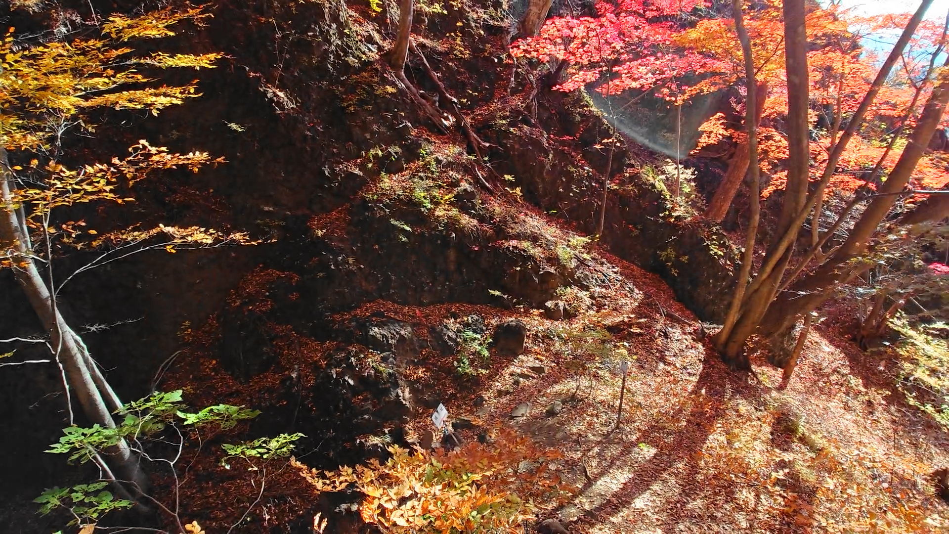 半分ほど下ってきてようやく日が当たり始めました