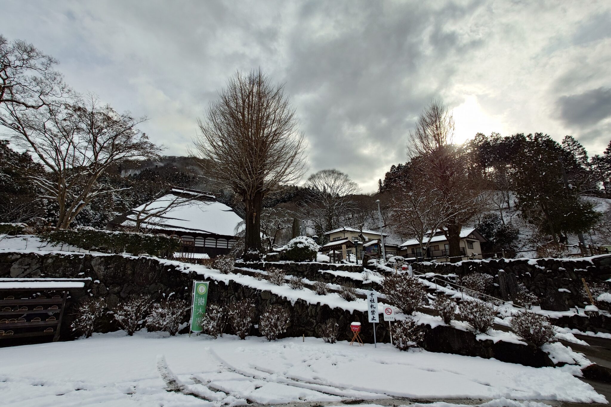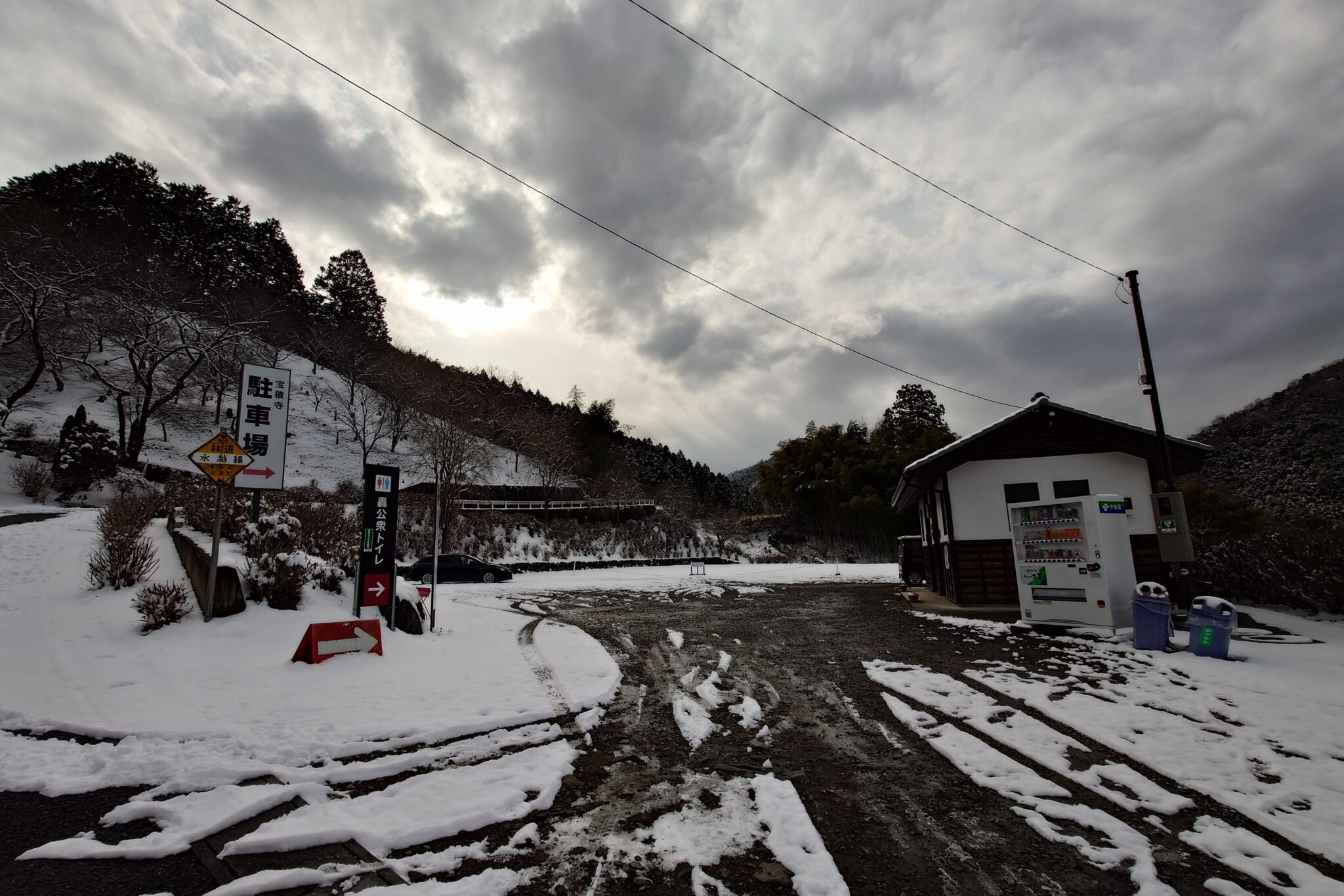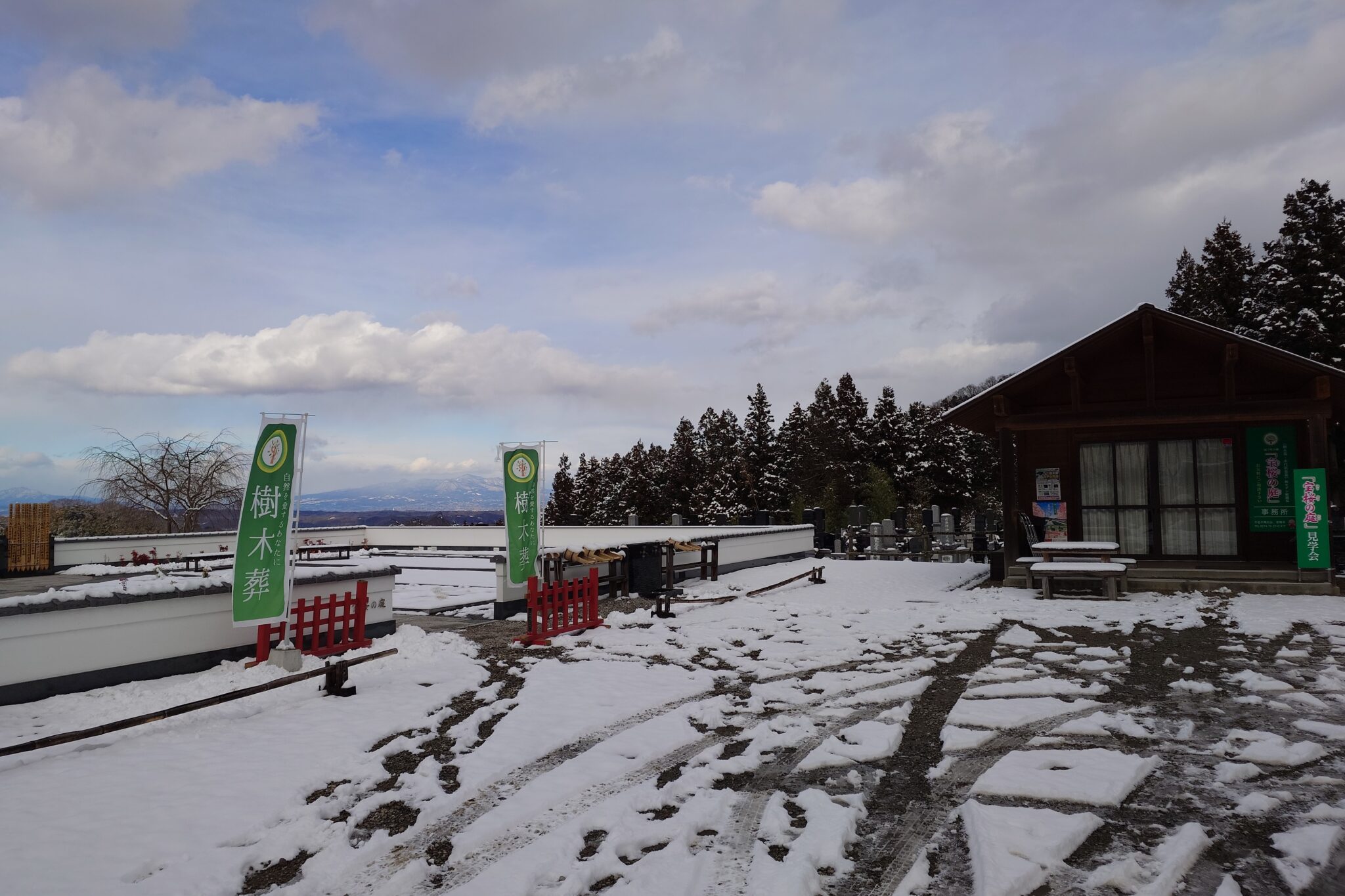 駐車場からの綺麗な雪景色