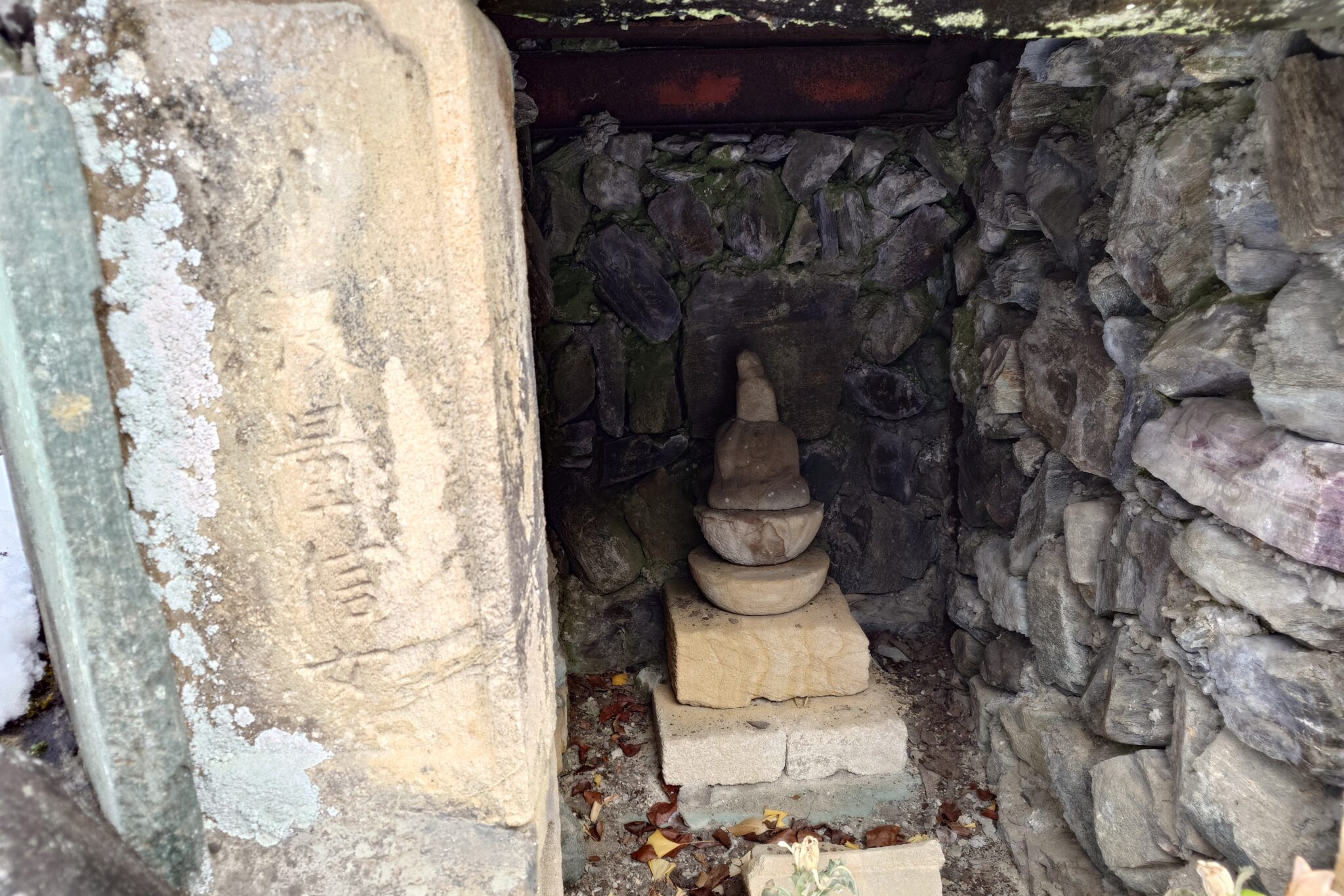 階段の登り口は子供の守り仏が祀られている