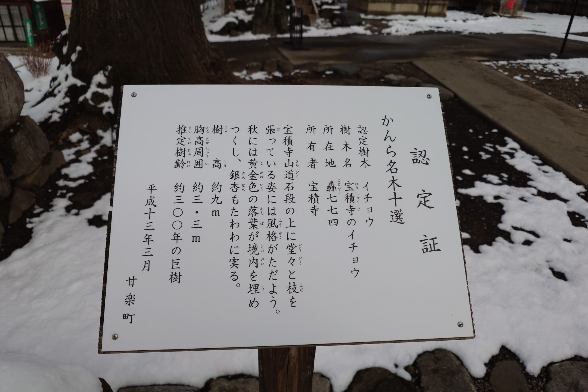 かんら名木十選認定証 |