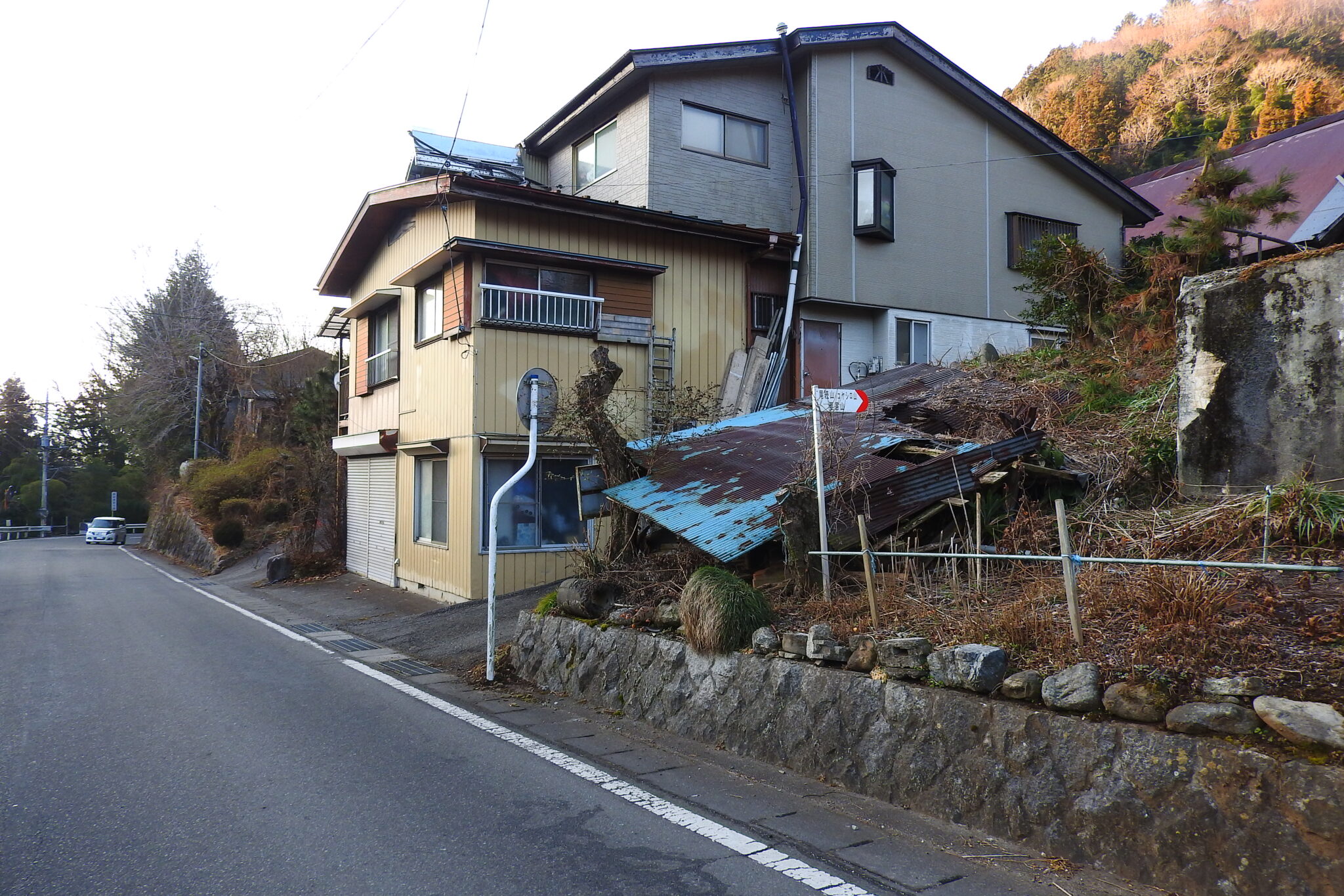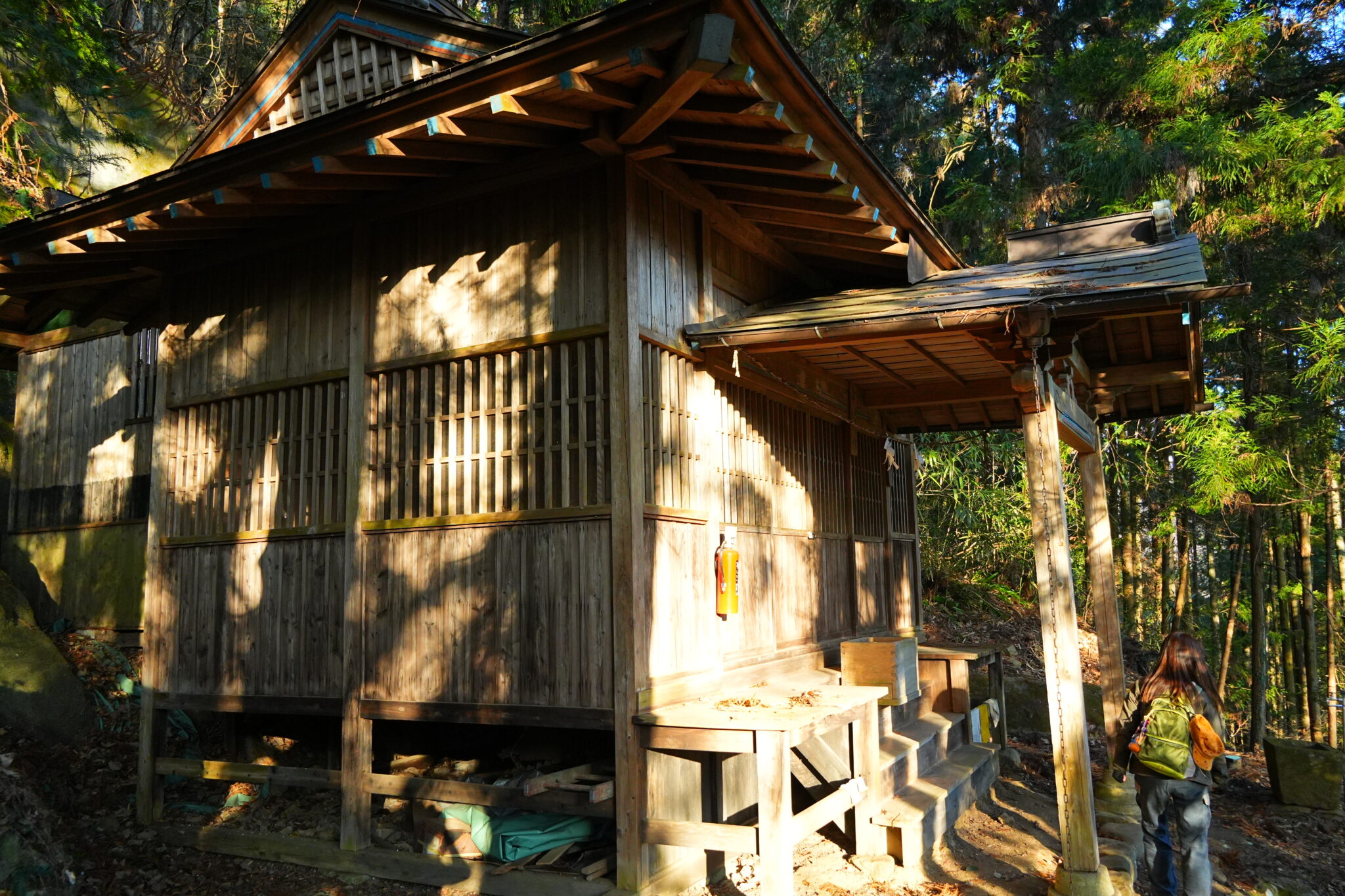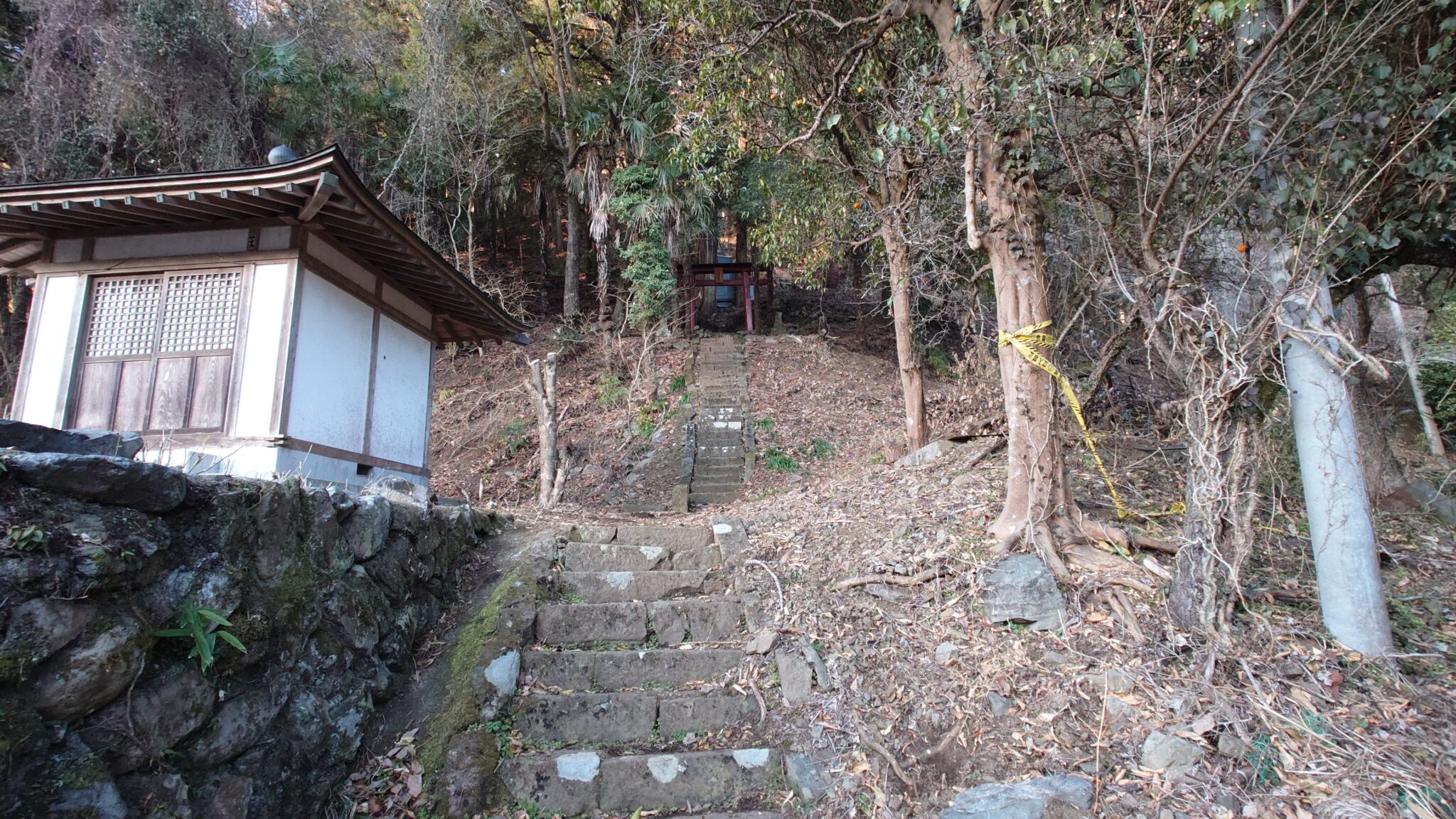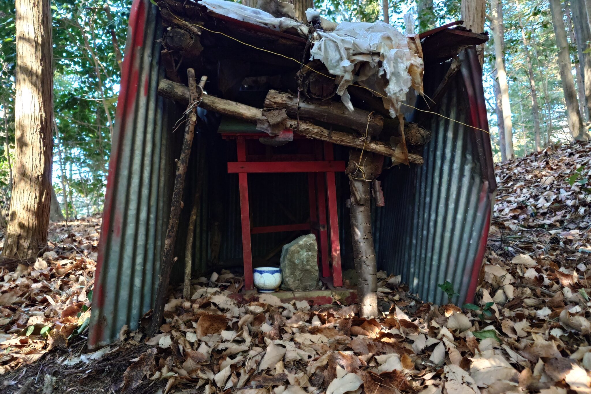 トタンに囲まれた社から直ぐに急斜面