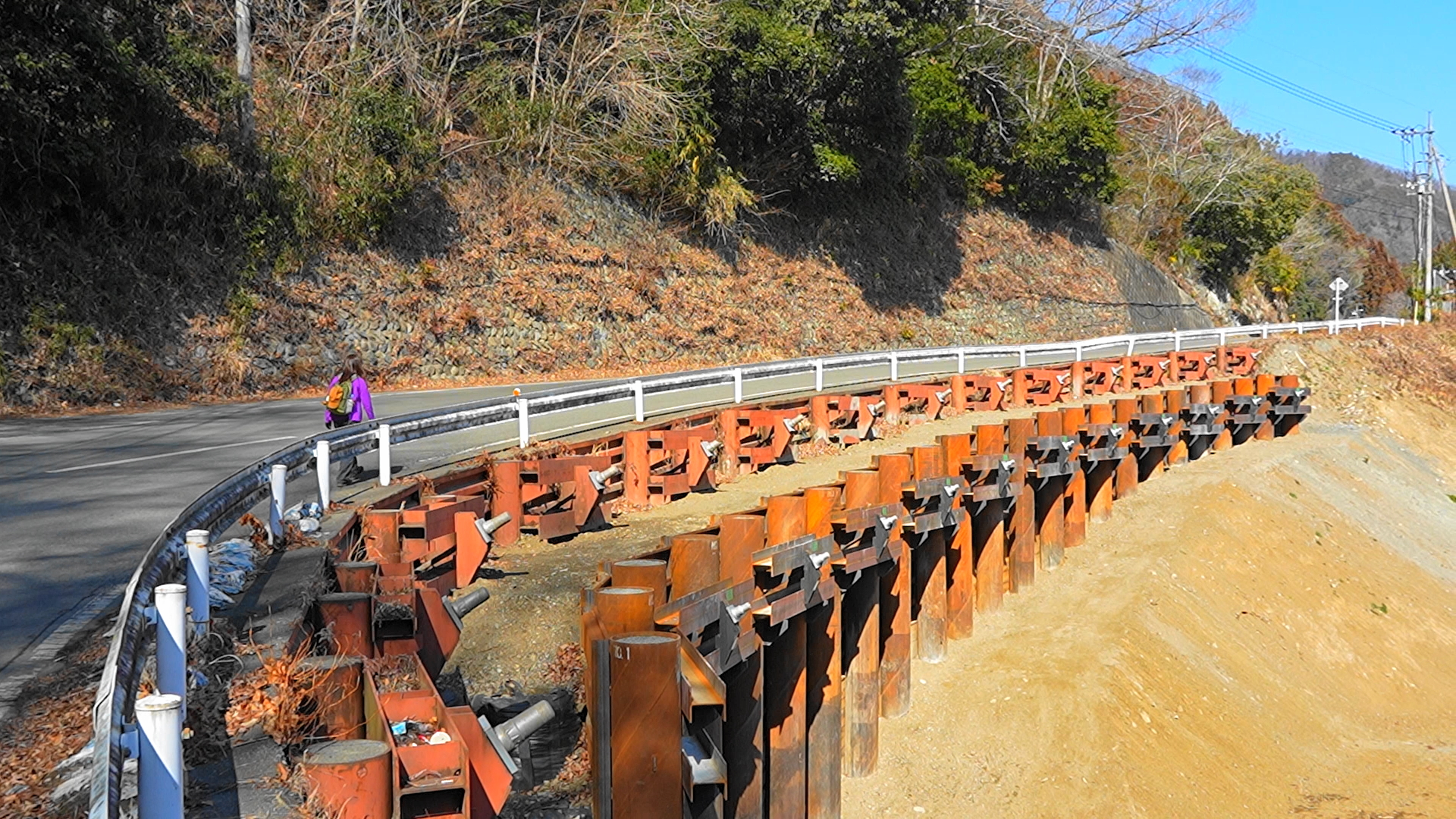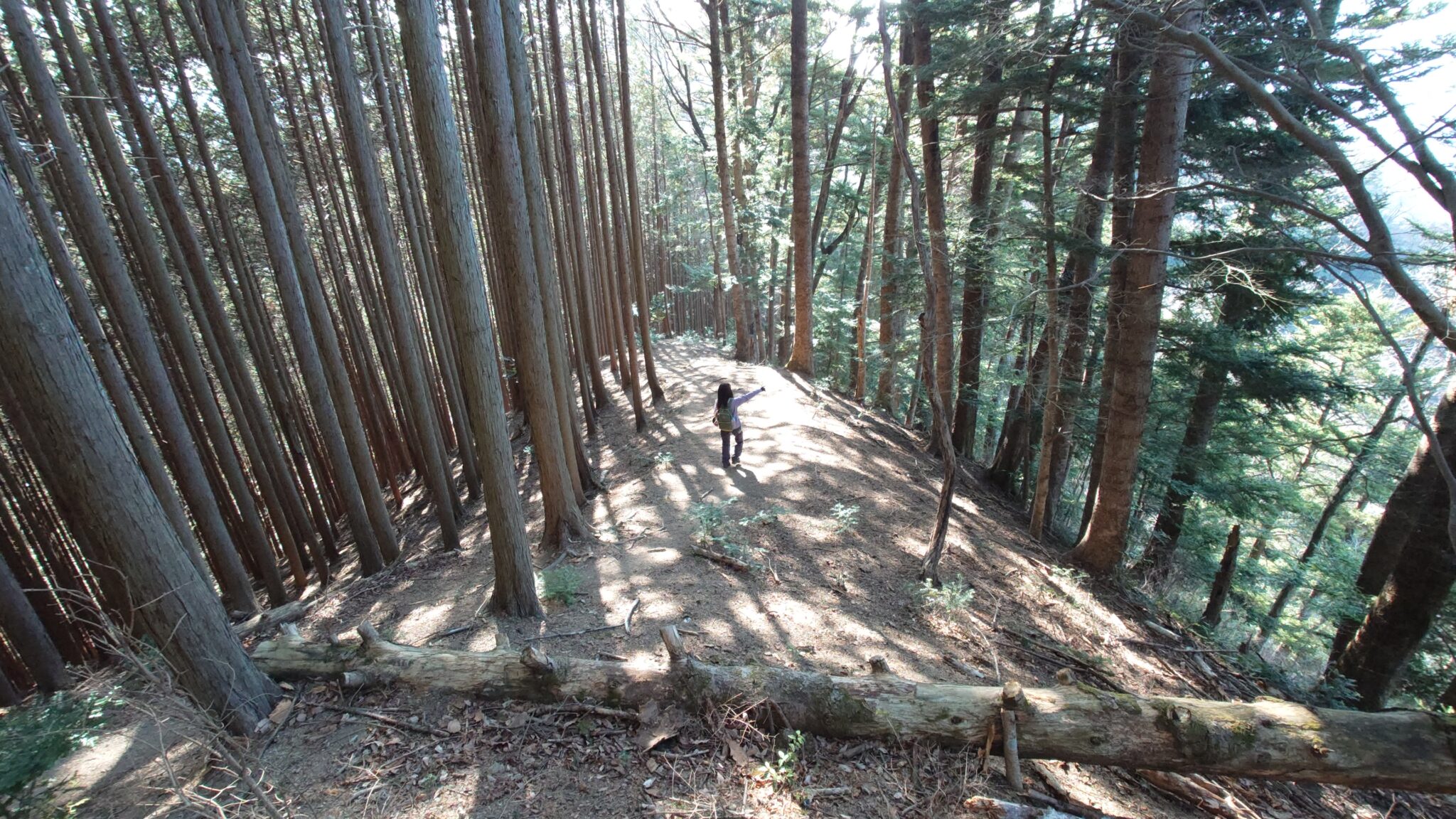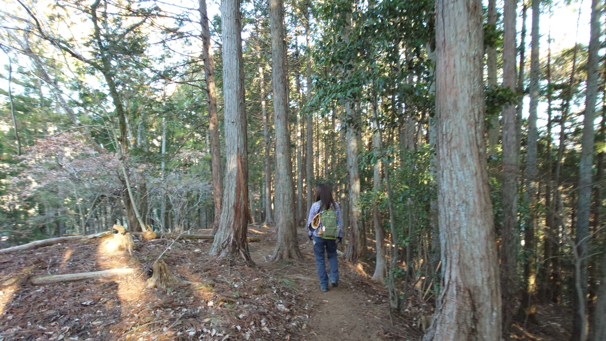 途中で植林地がを左に下って