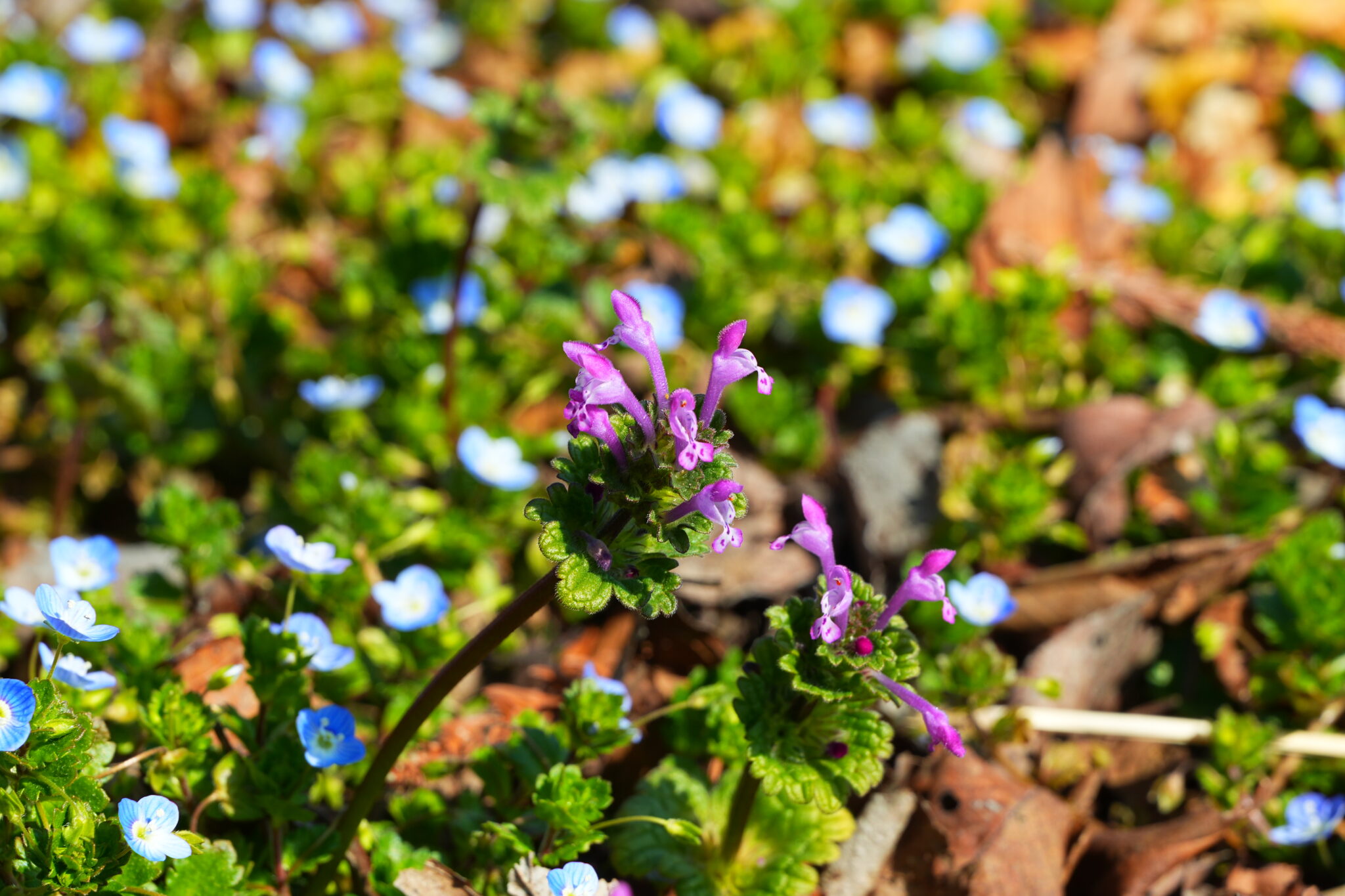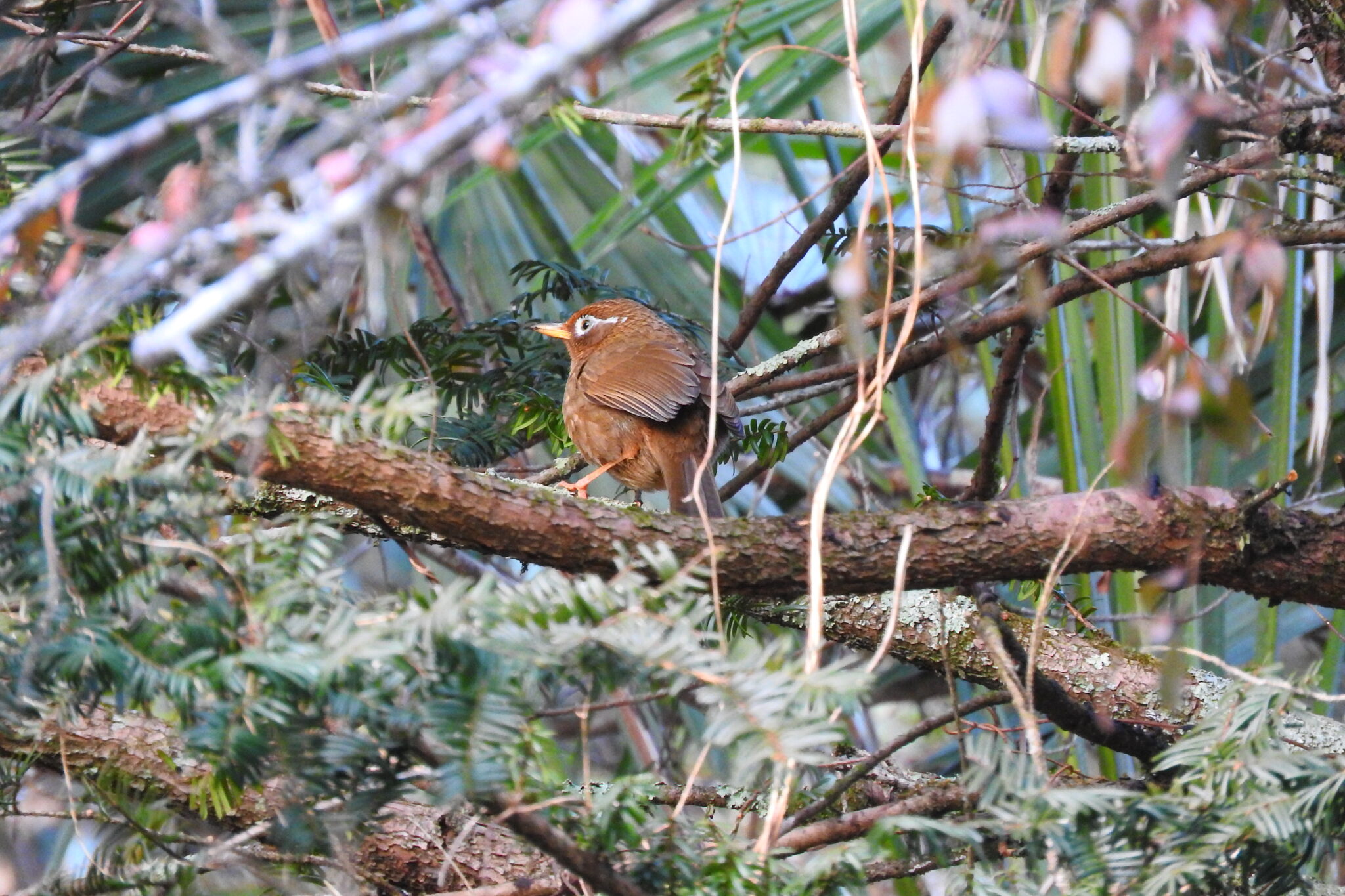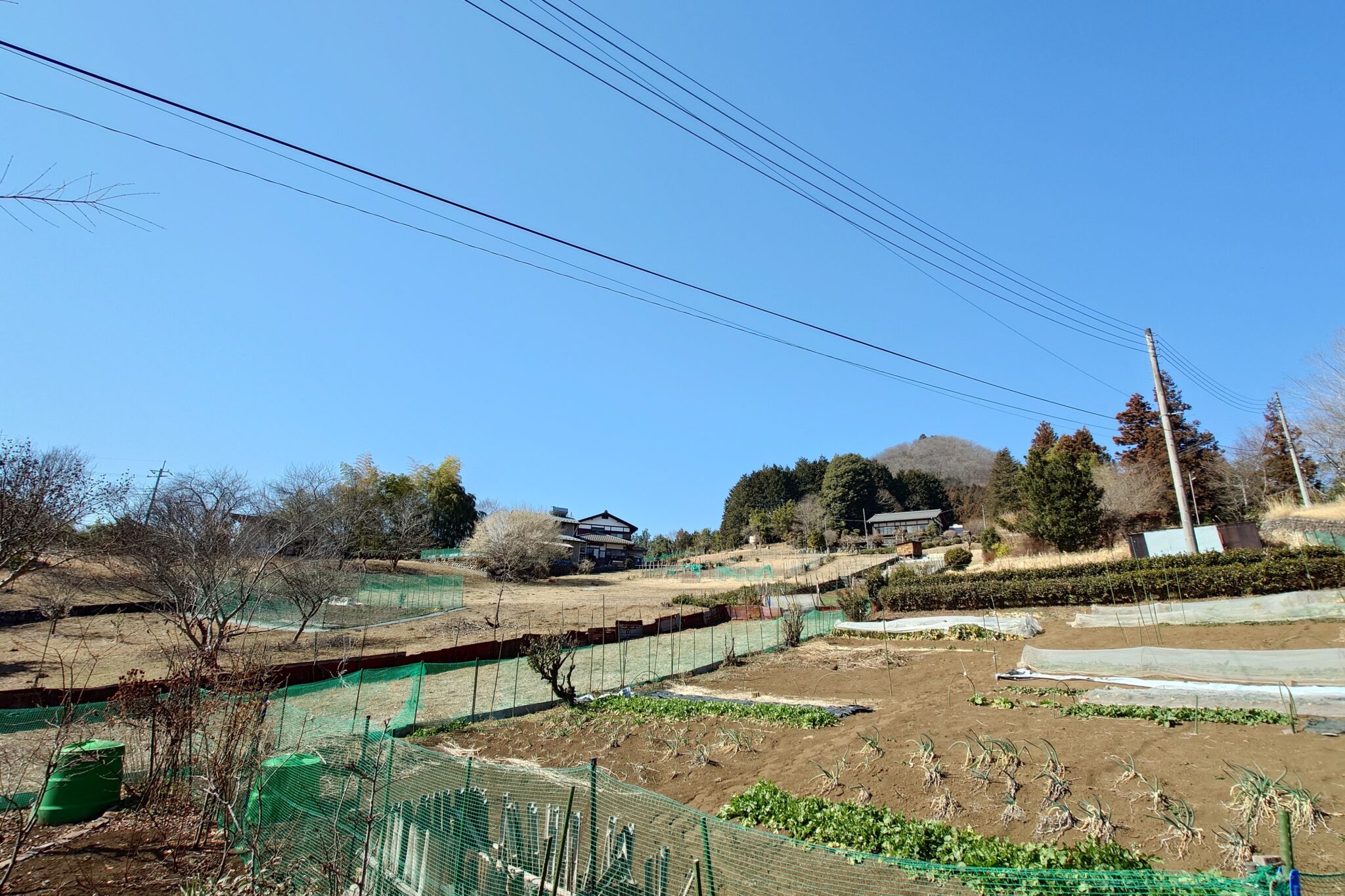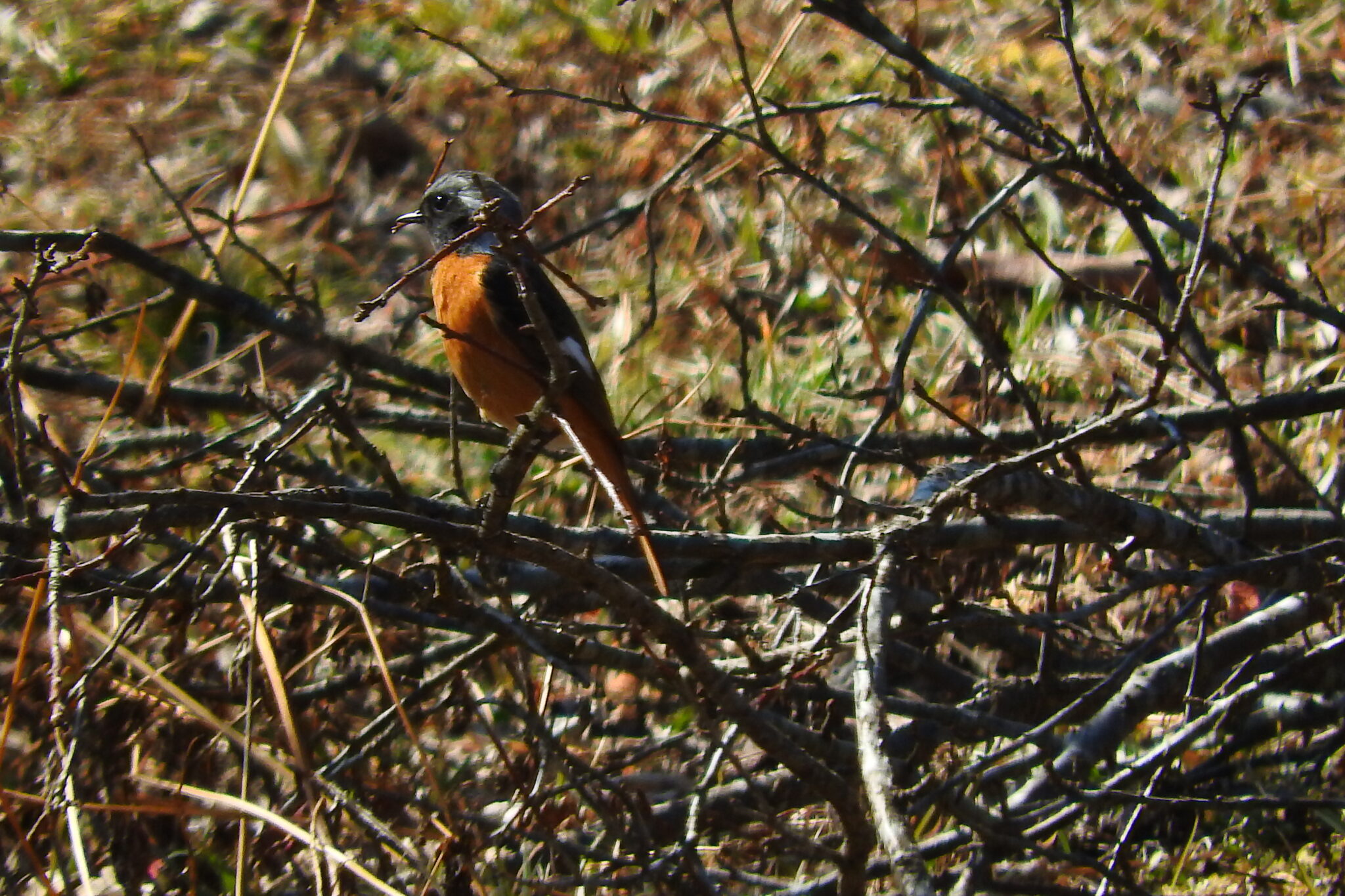暖かな斜面の先の木には野鳥も見られましたが