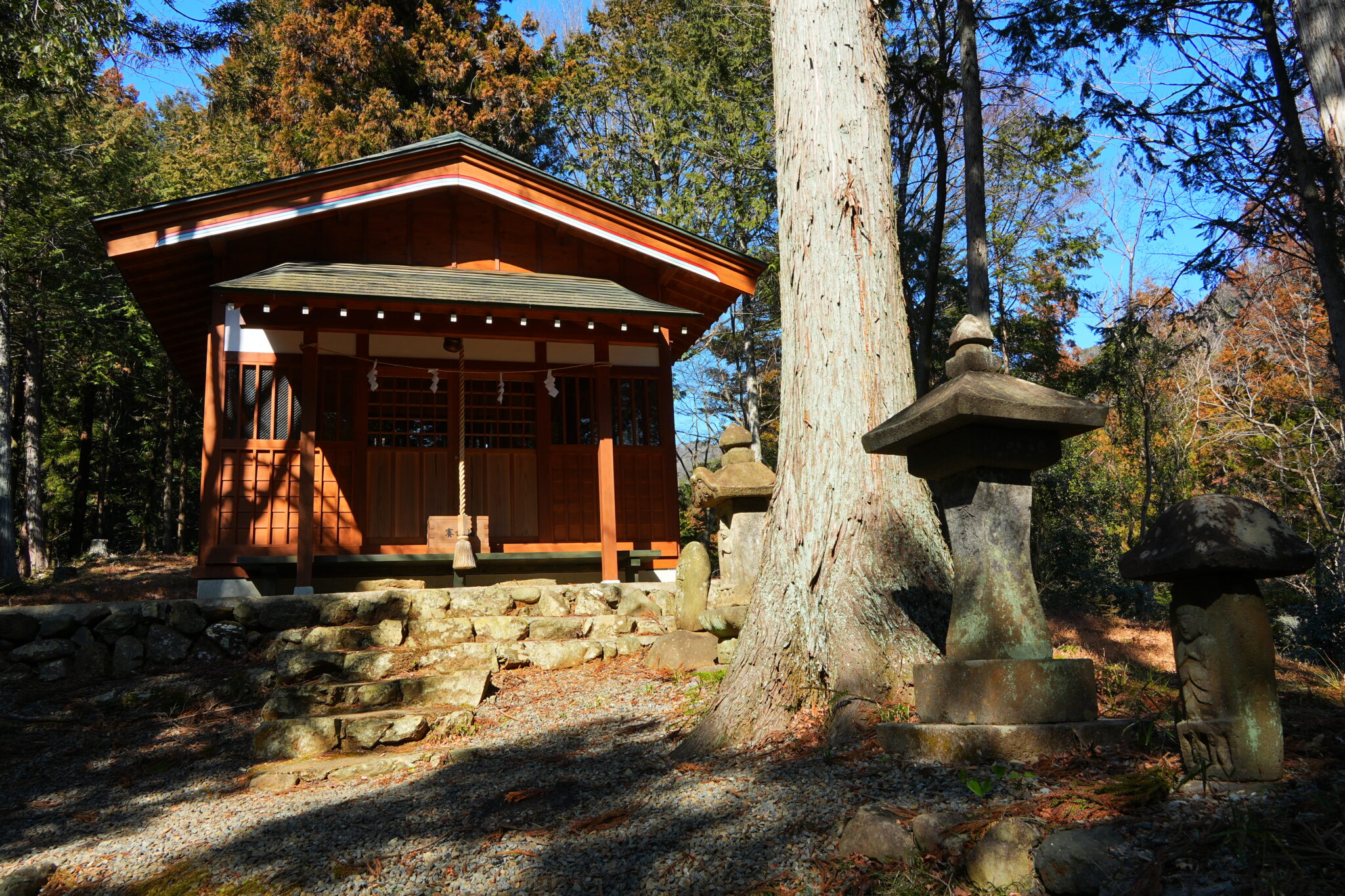 しめ縄と灯篭にて祀られています