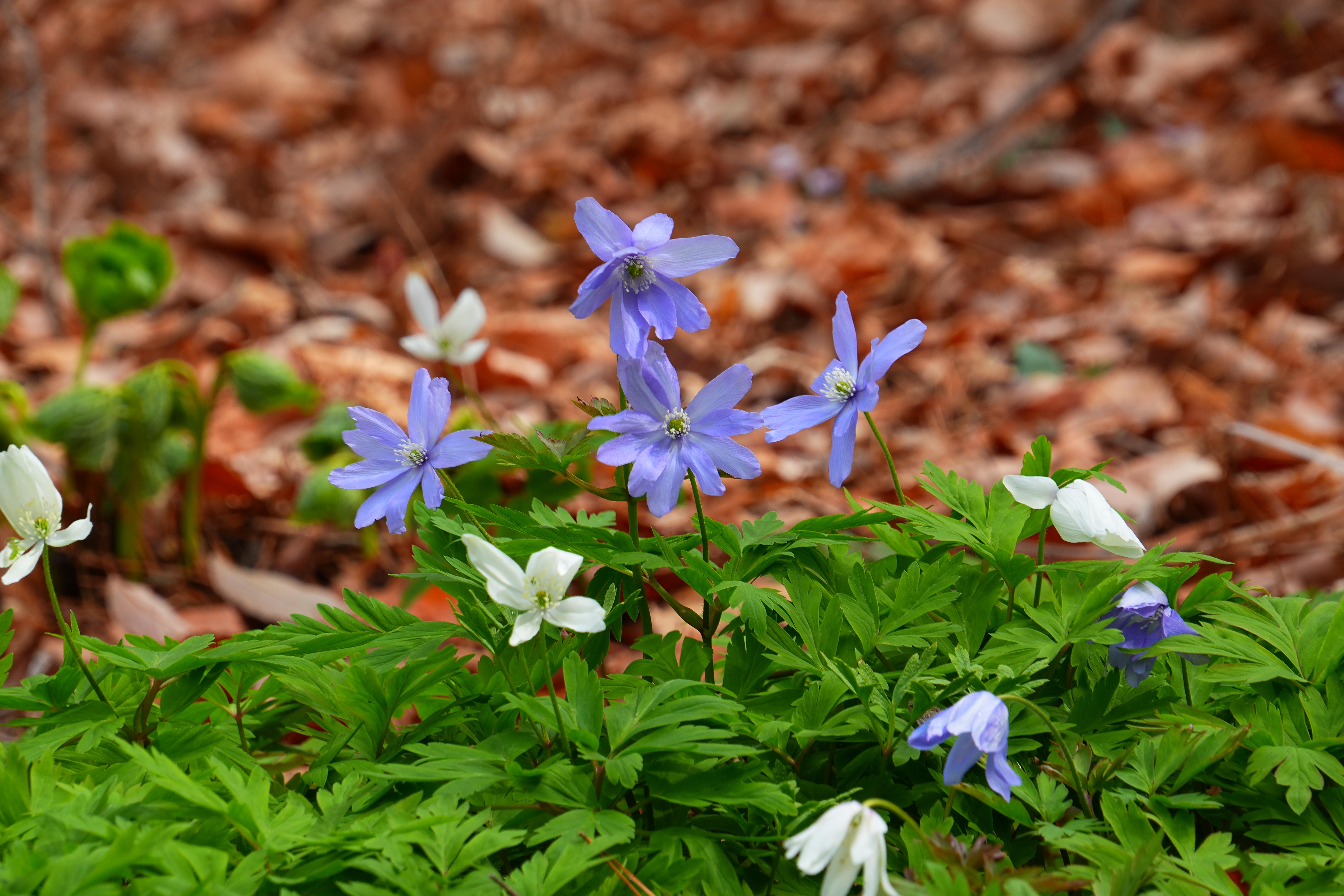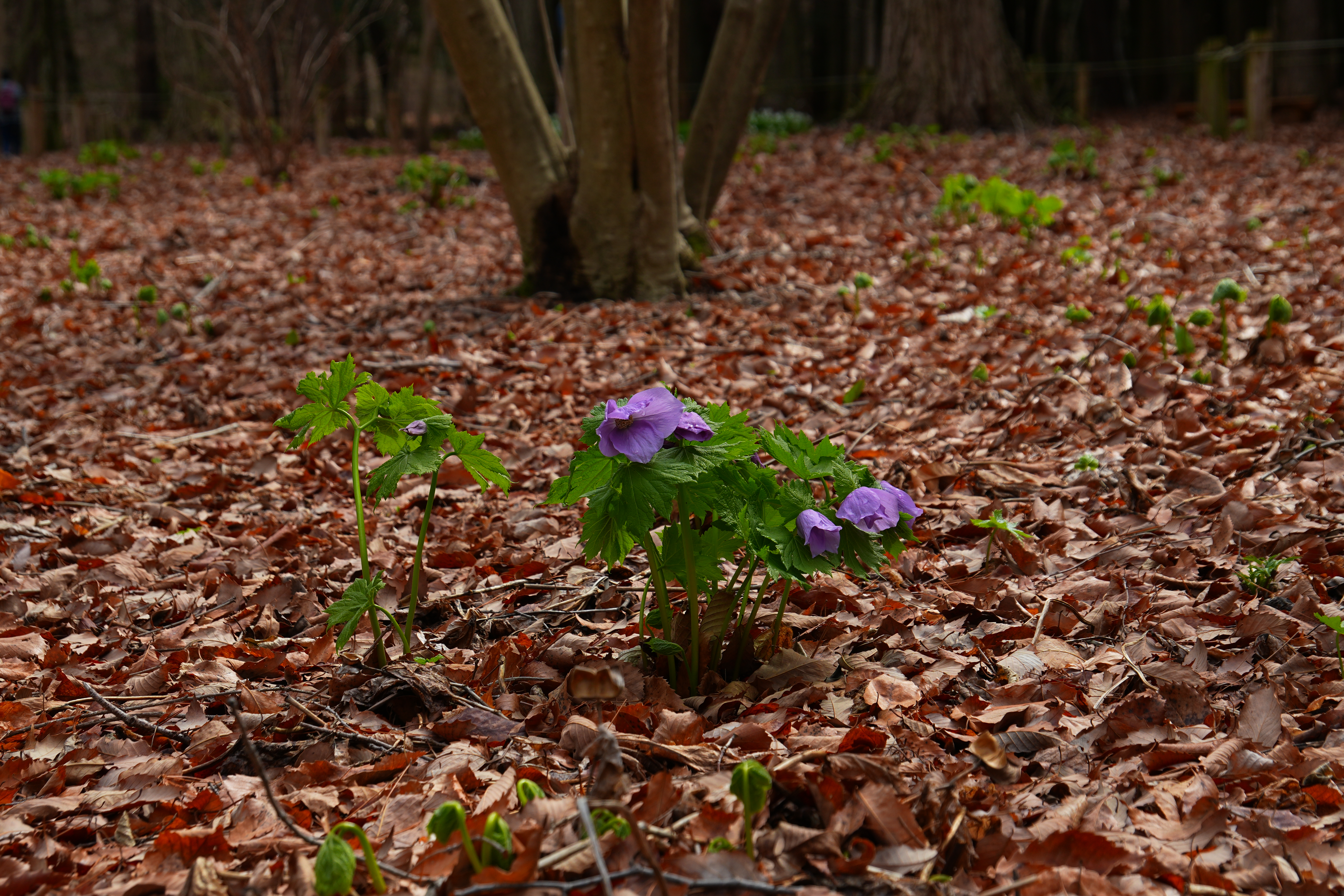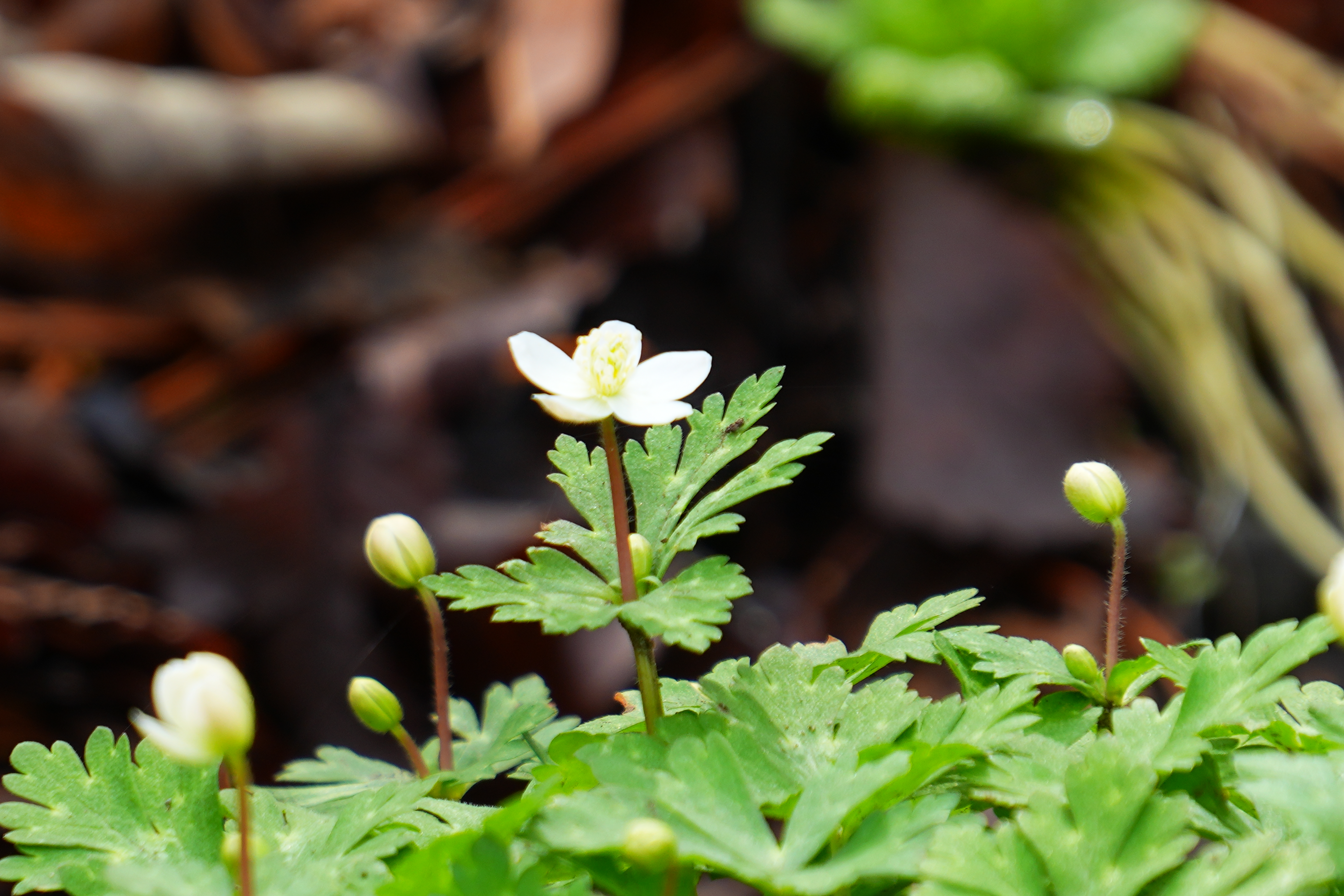 同じくシラネアオイの苑で咲くキクザキイチゲ