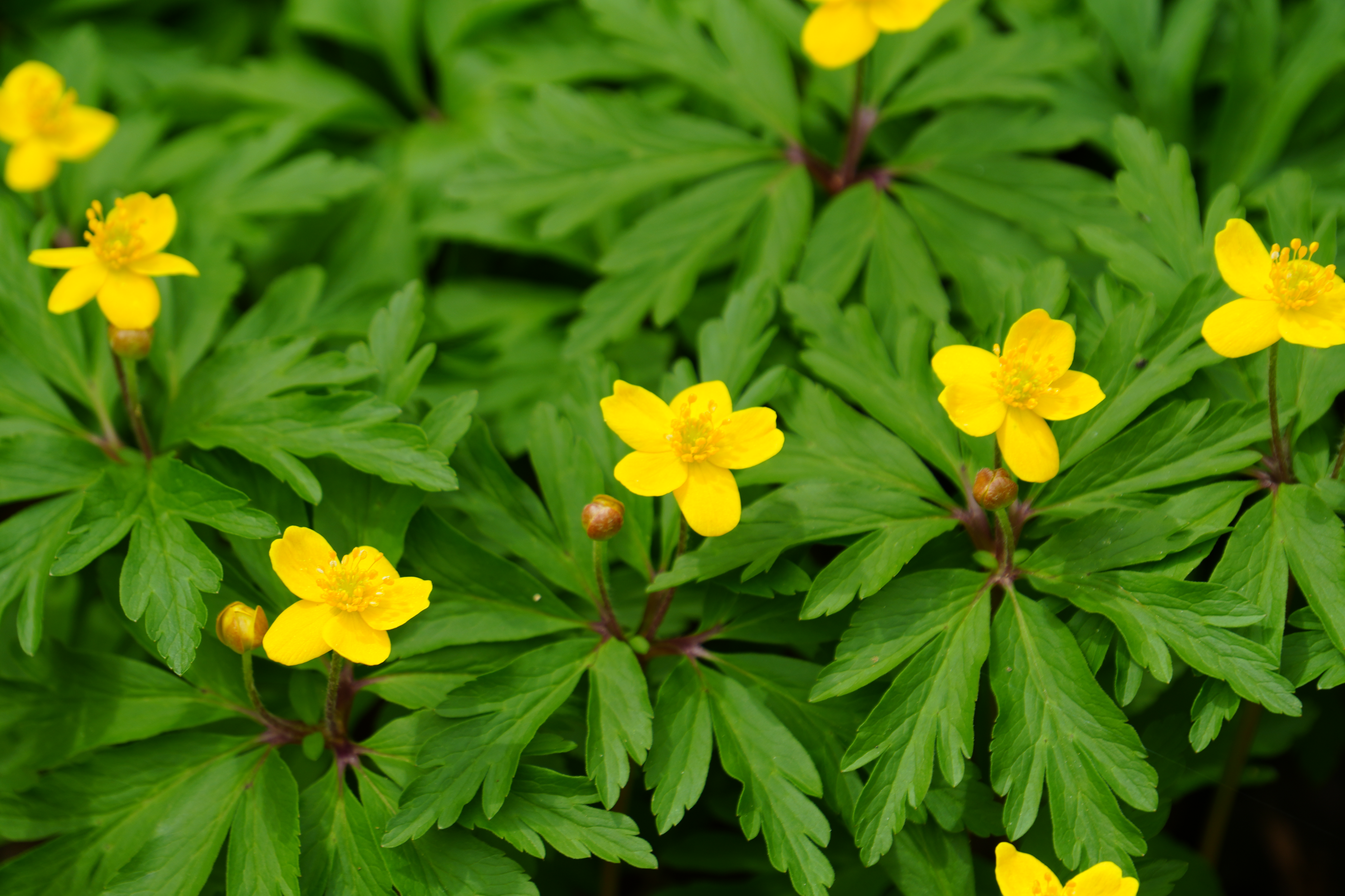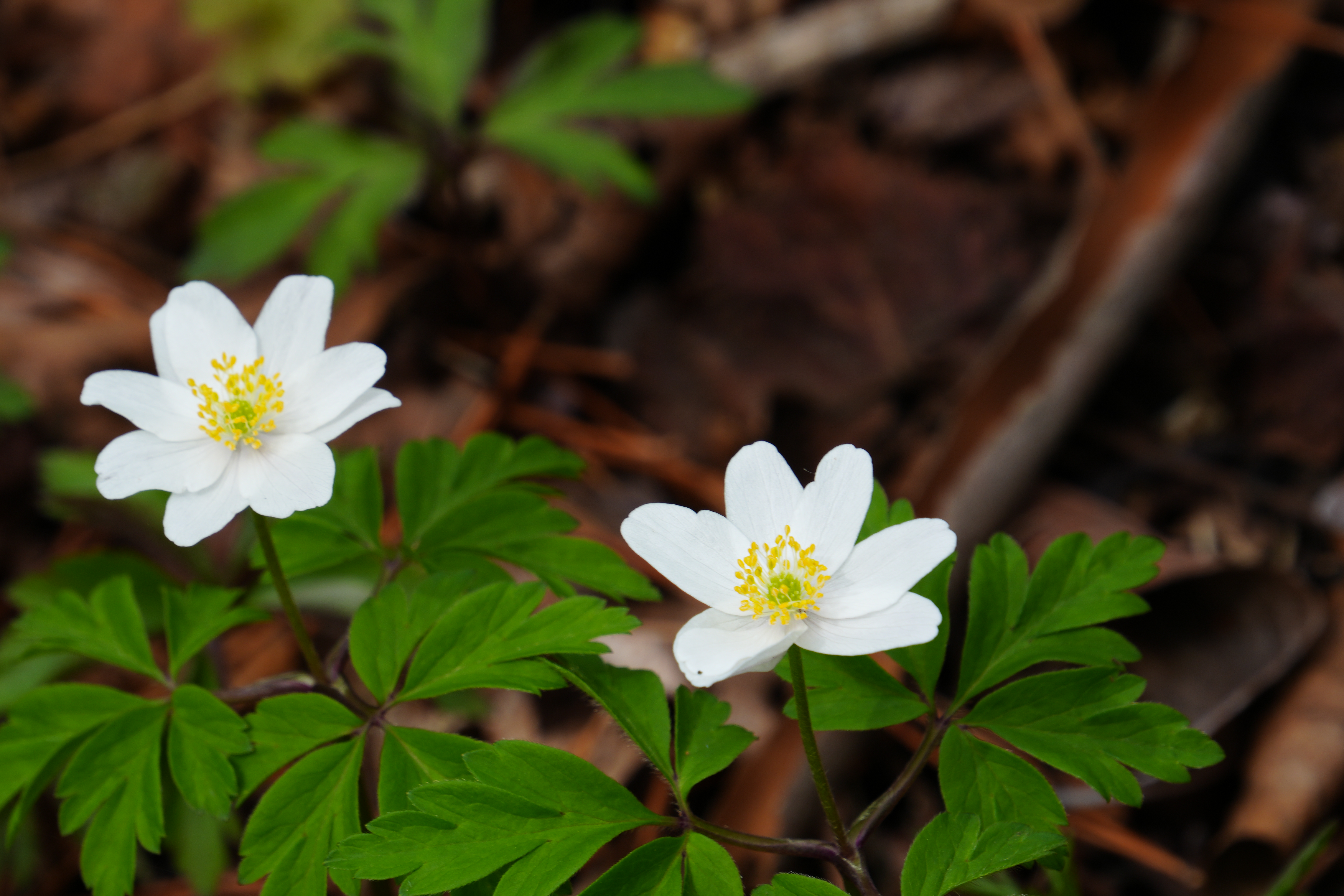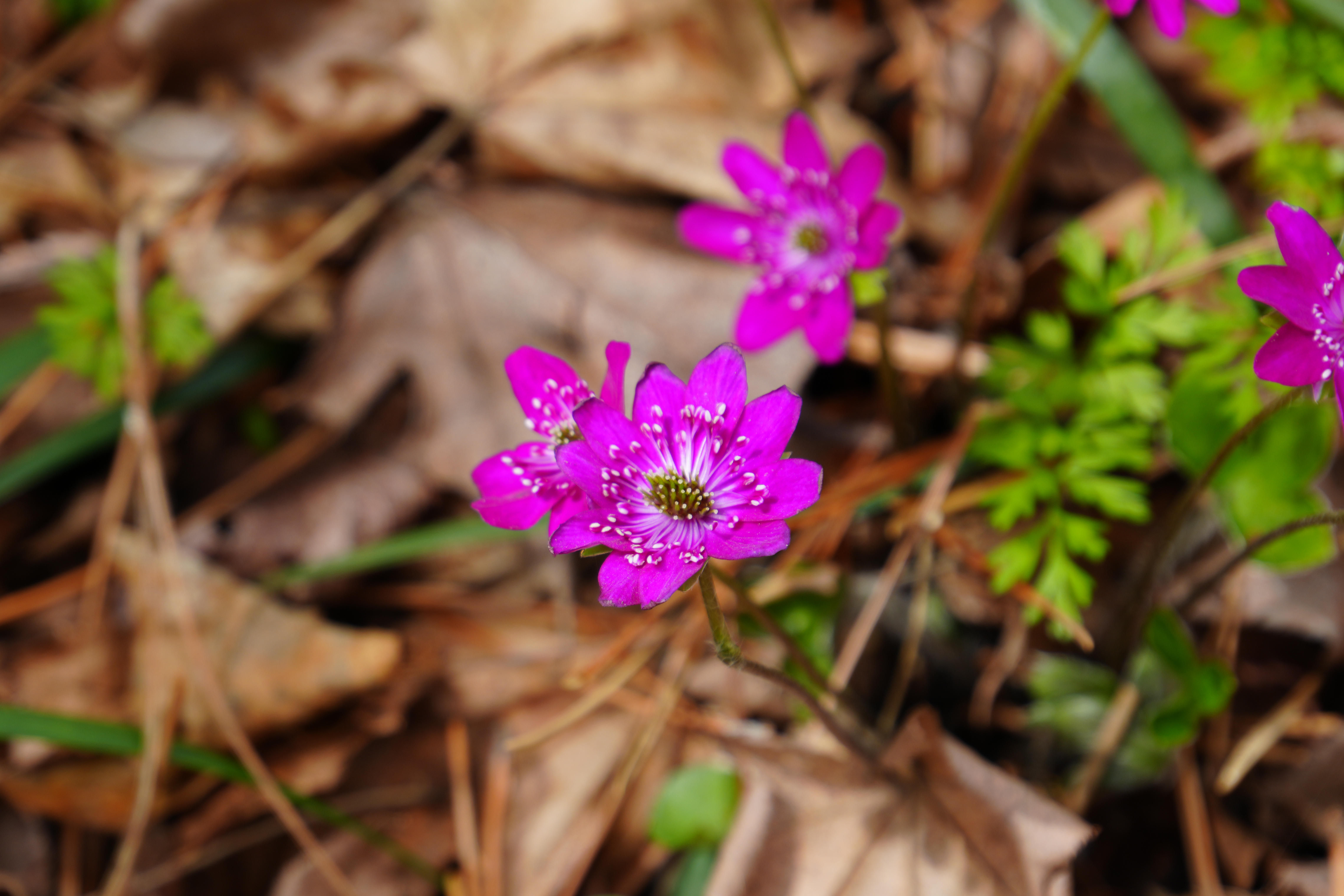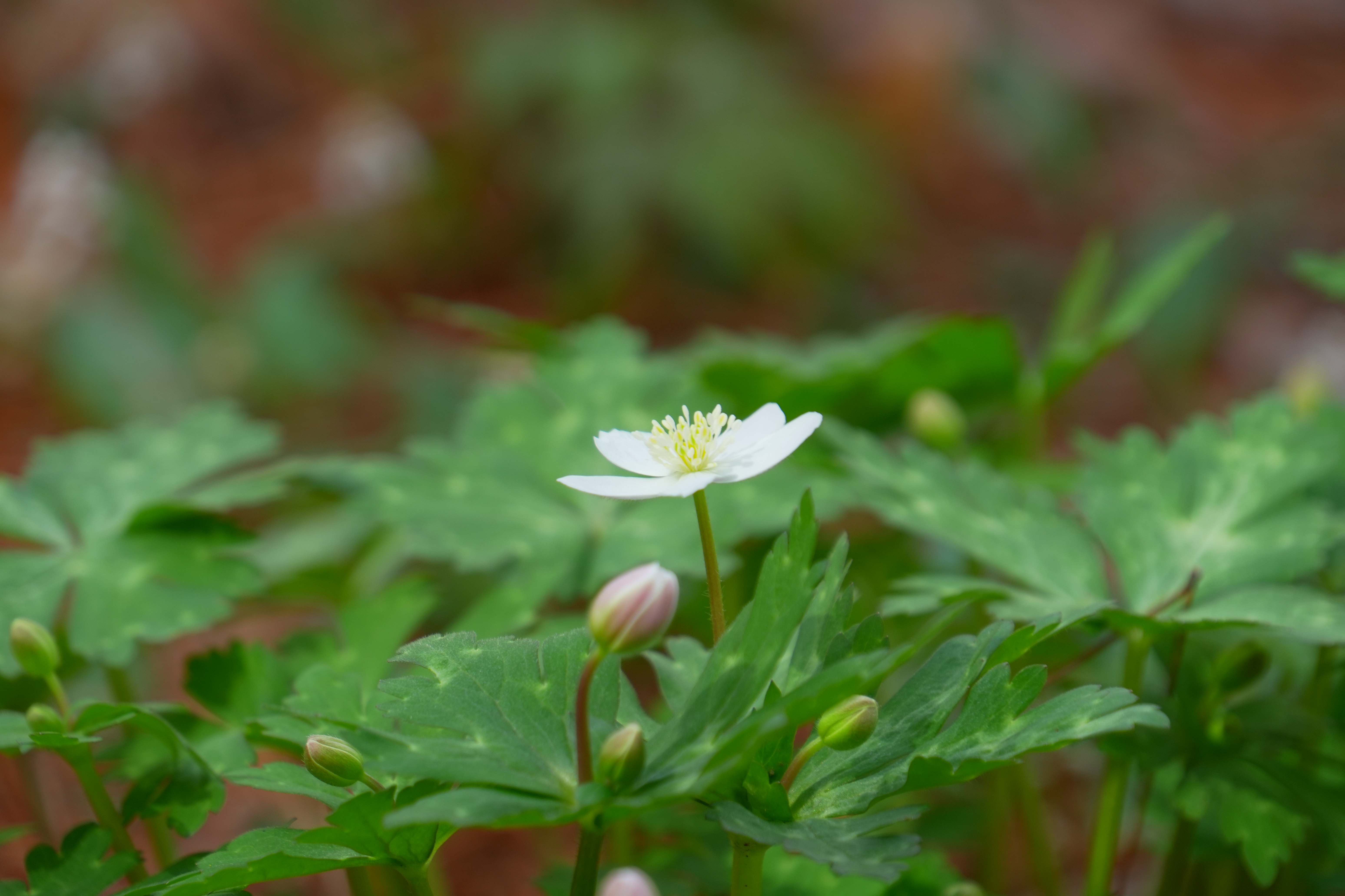 同じくシラネアオイの苑で咲くキクザキイチゲ