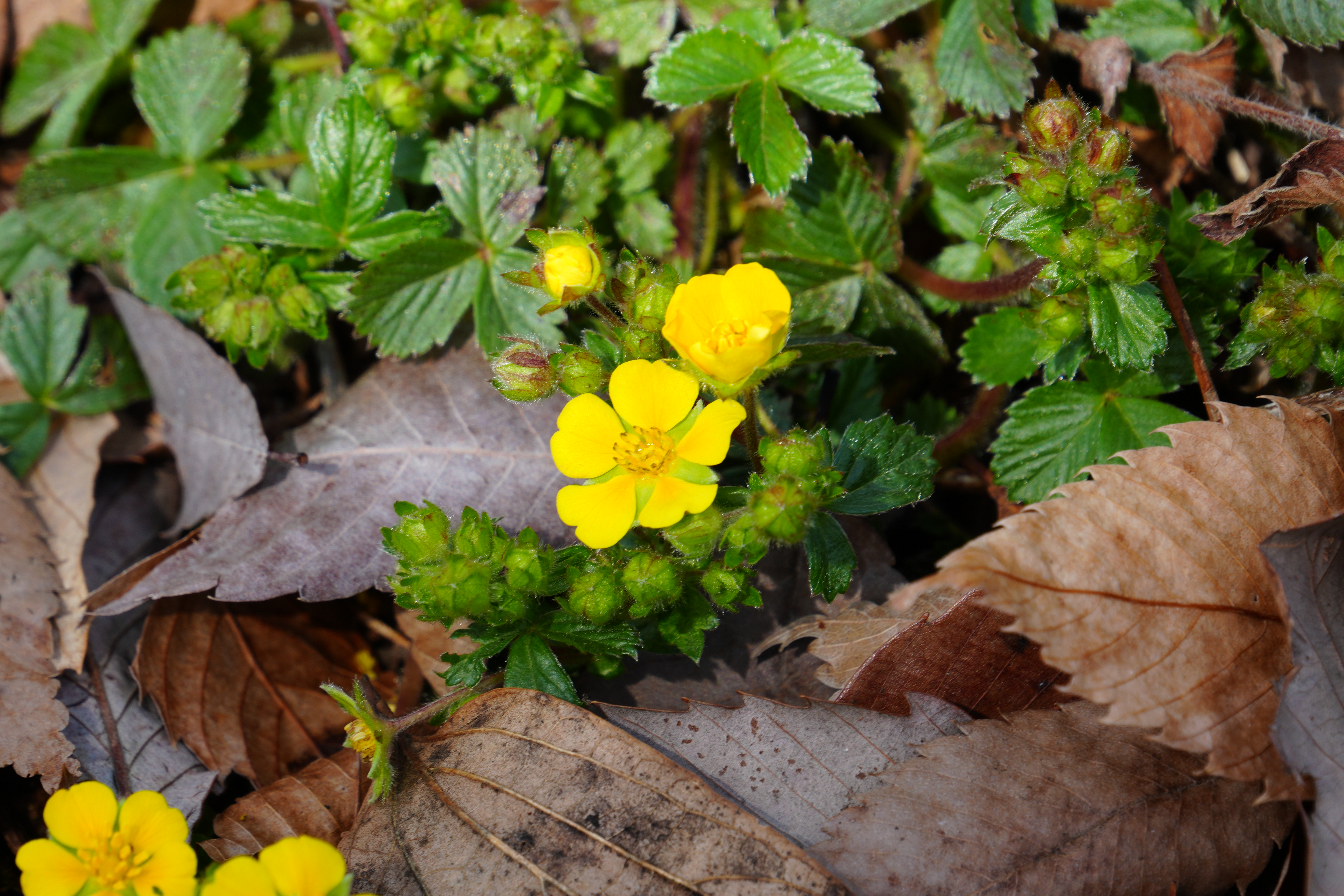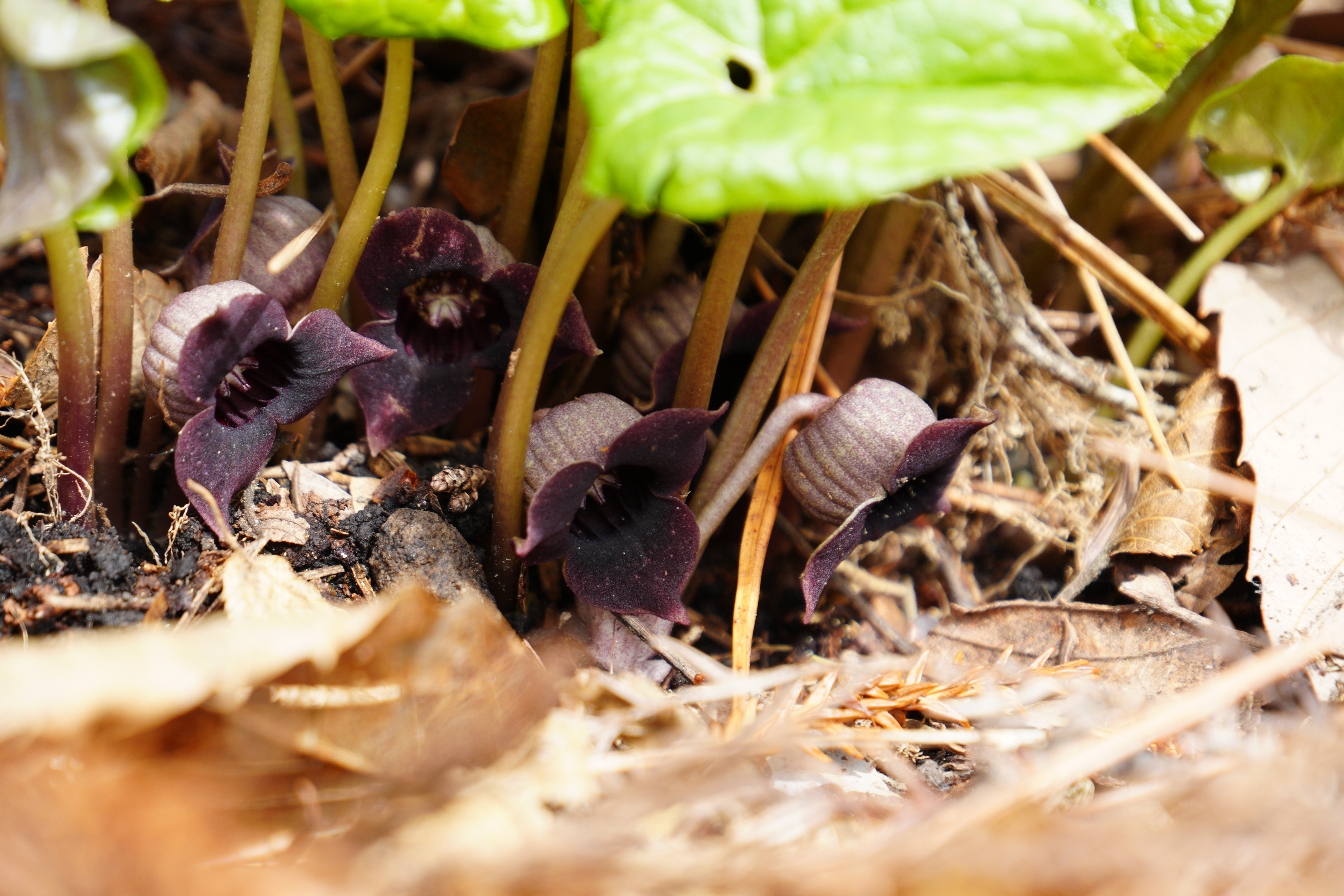 囲炉裏が無くなった休憩舎の近くでフッキソウ