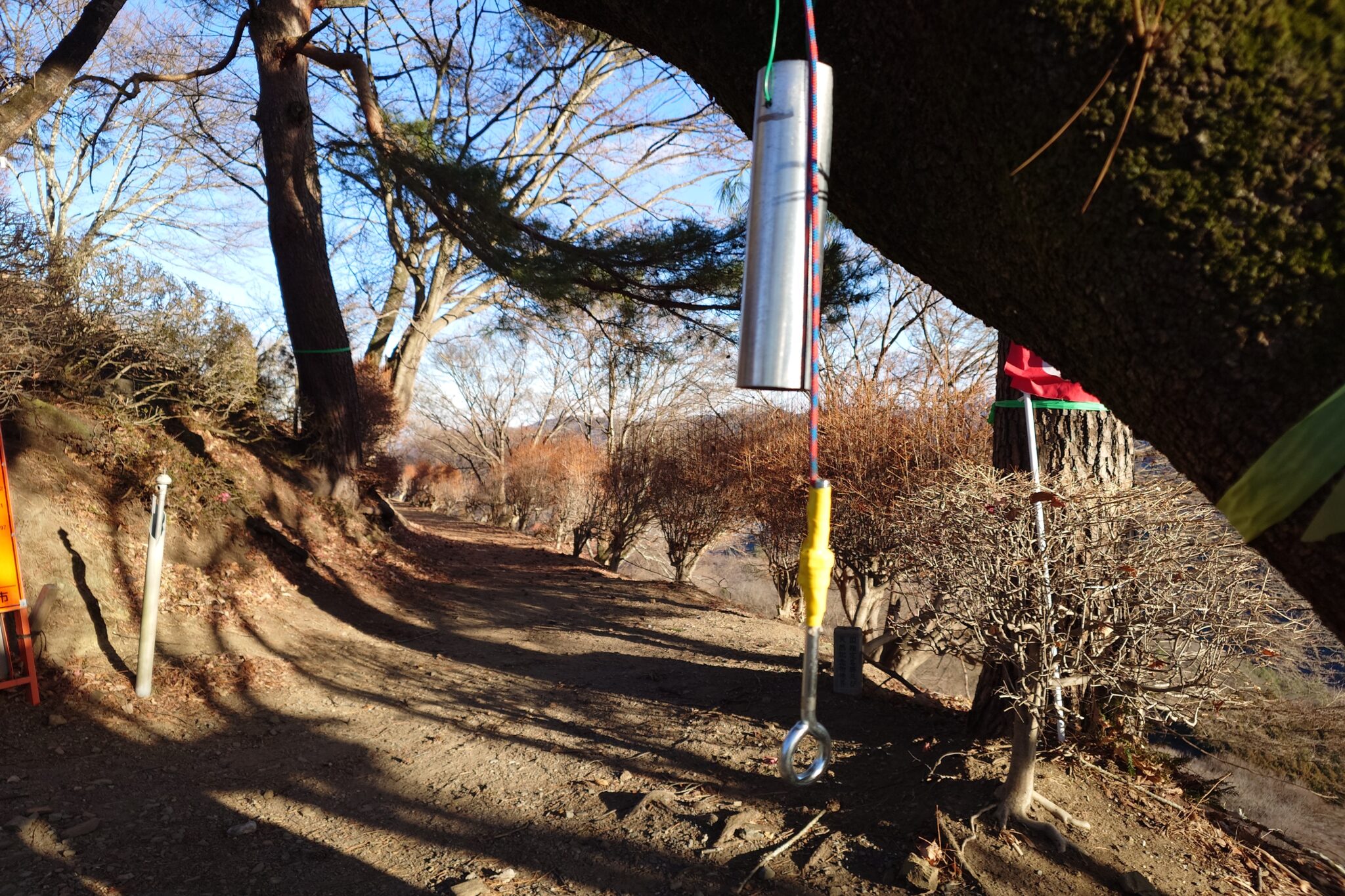 手作り感満載のクマよけの鐘は