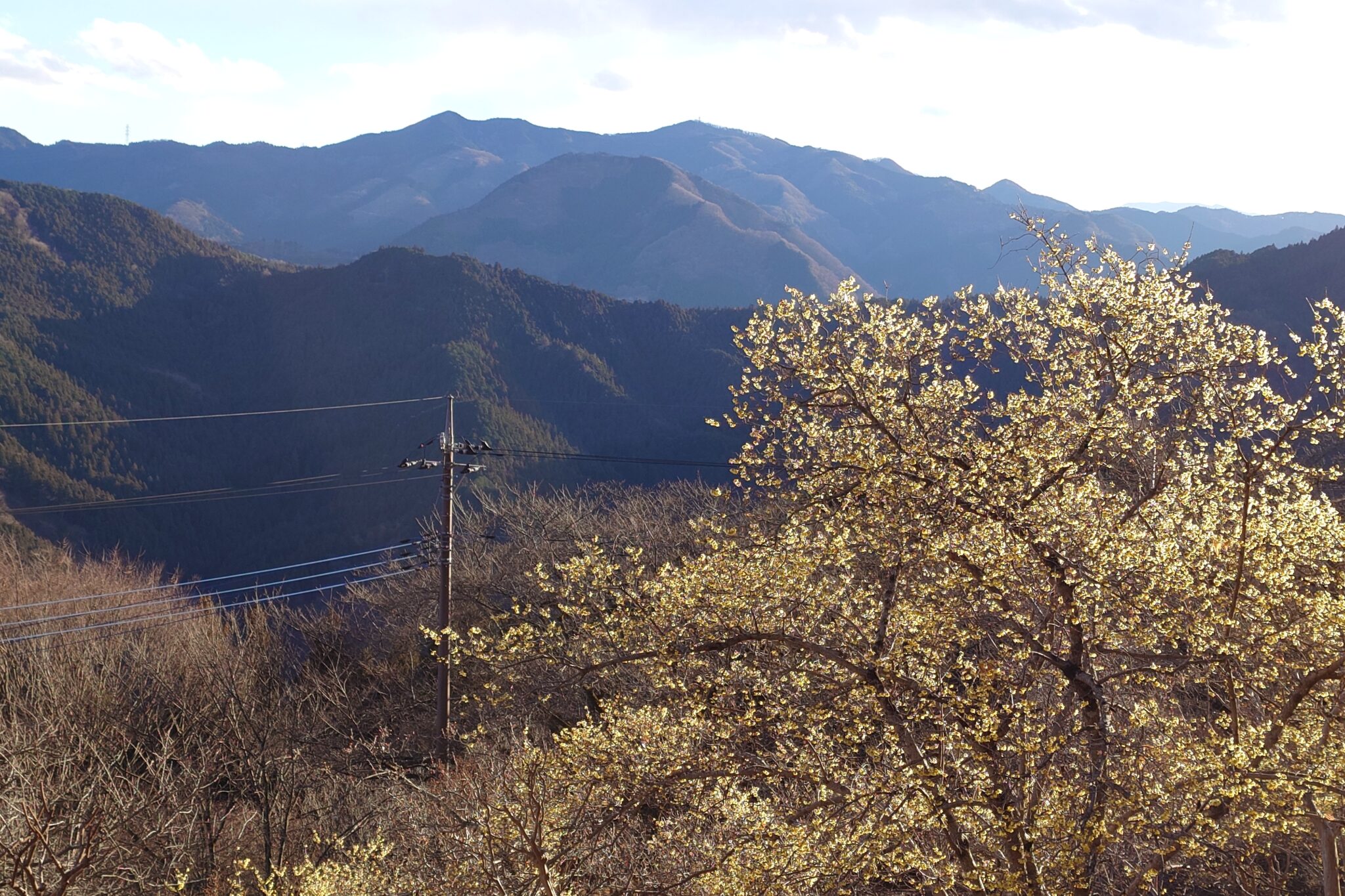 尾根に出てロウバイ園を覗き込むと