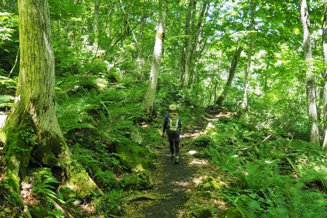 雄子沢駐車場4:42~5:56雄国沼休憩舎6:09~6:33雄国沼湿原7:25