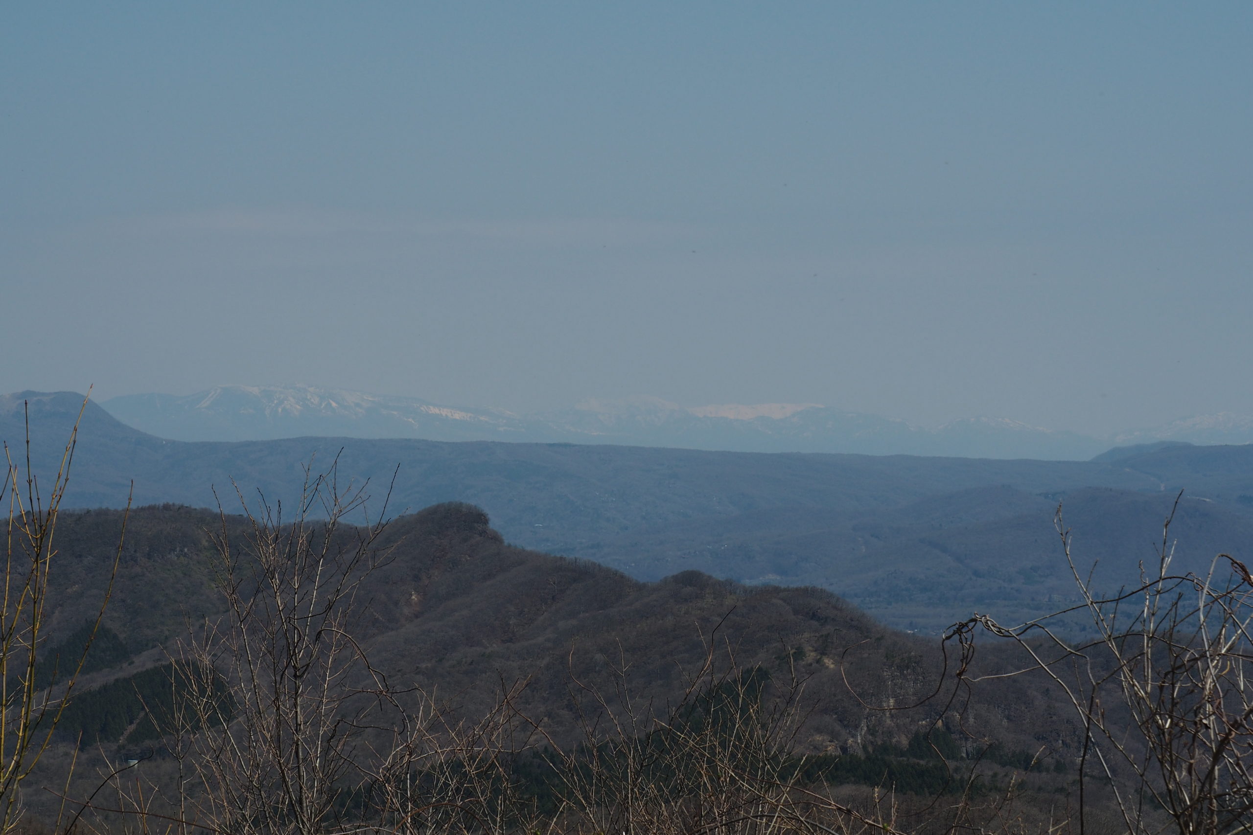 その間には草津白根山、岩菅山、白砂山など霞んで見える