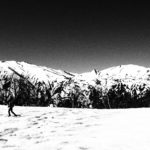 残雪上を歩く先行者が見えますが私達はそこは歩かずに